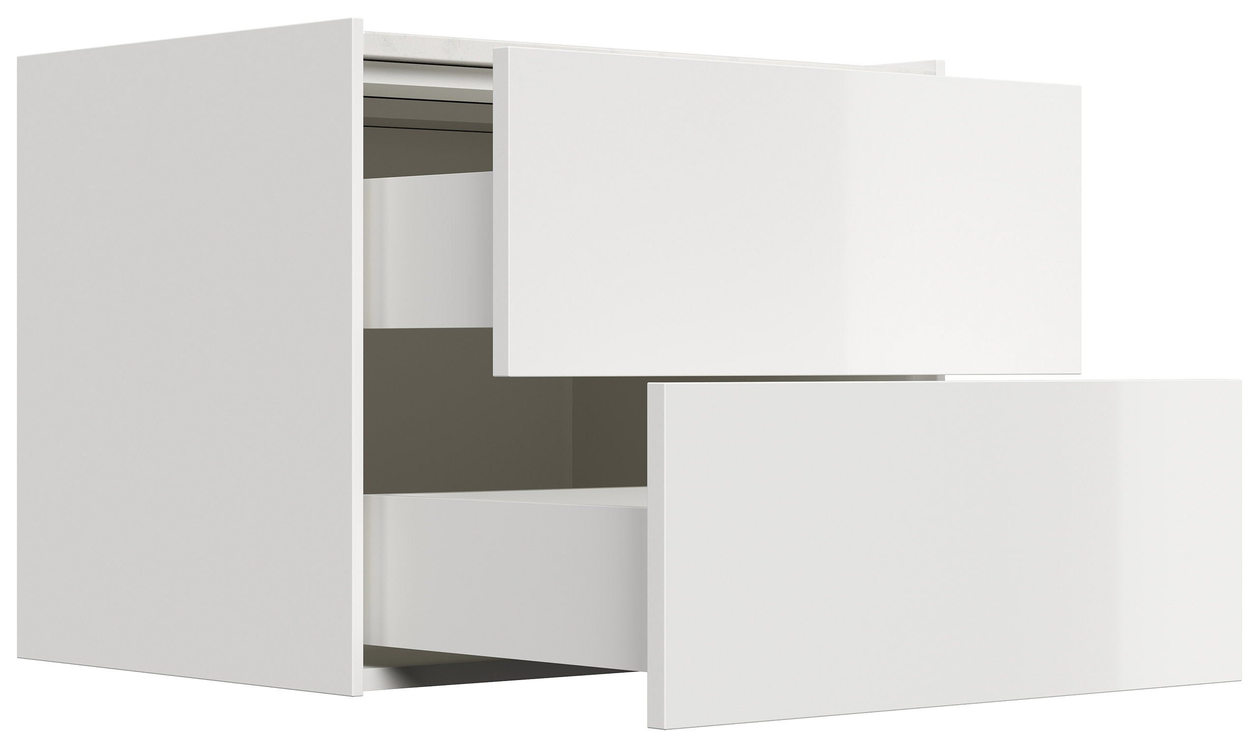 Nachttisch Kommode Somnia L 60cm, Quarztop, 2 Pushauszüge lackiert Weiß Hgl