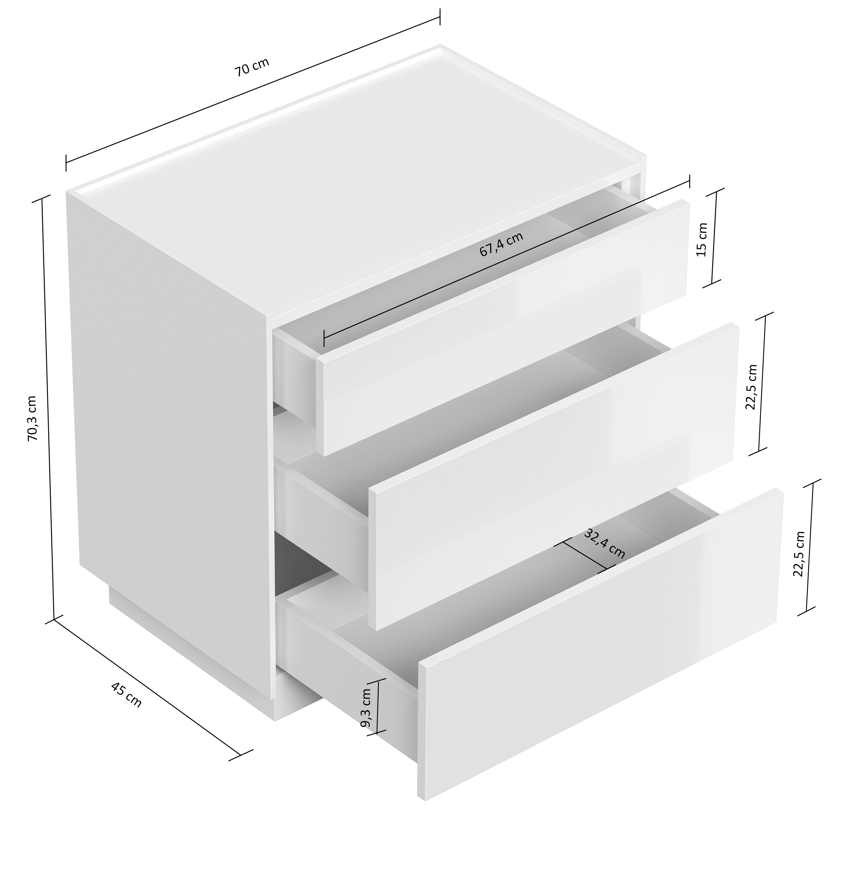 Nachttisch Lux XL mit 3 Push to Open Schubladen (B/H/T): 70/70,3/45 cm