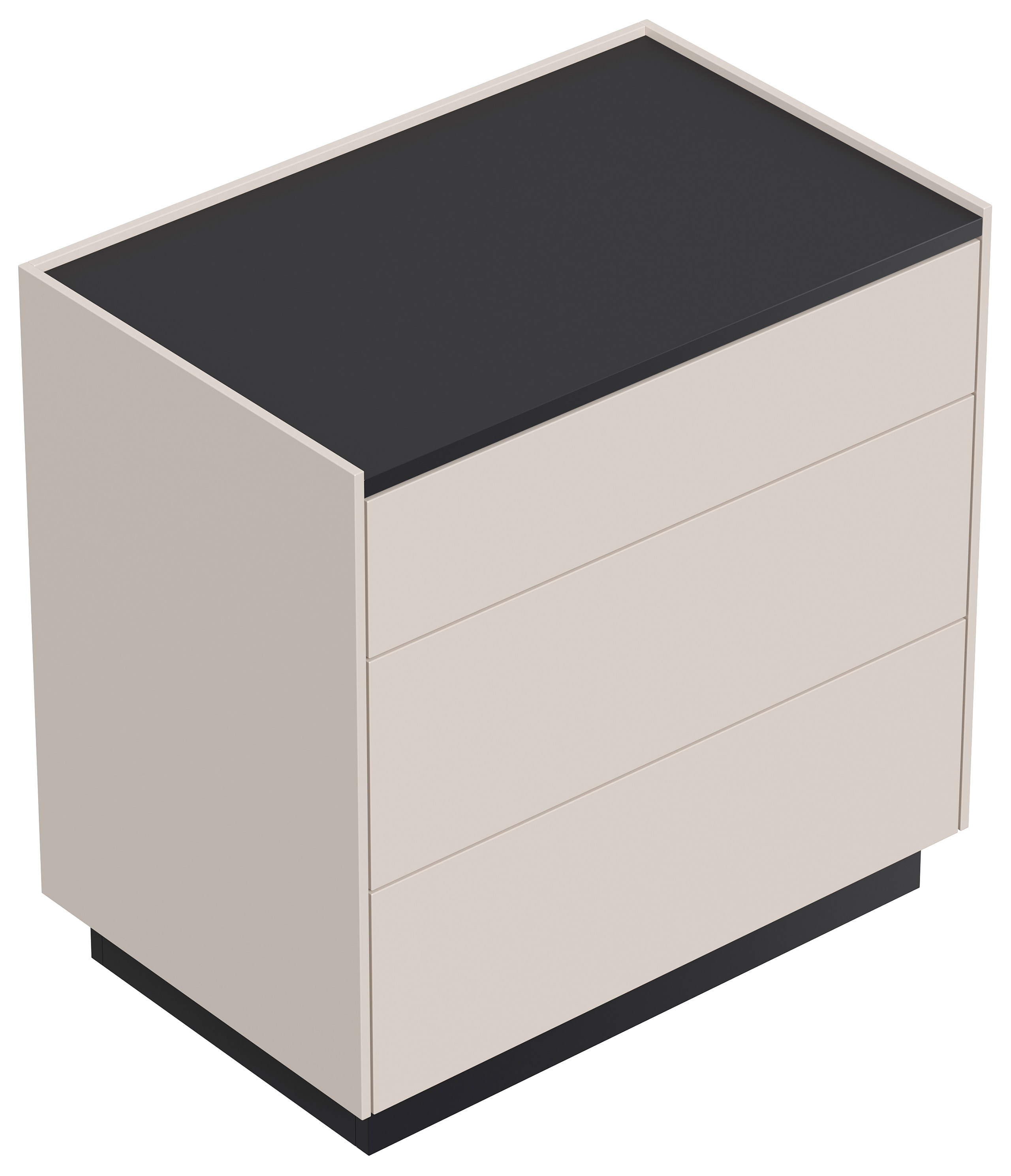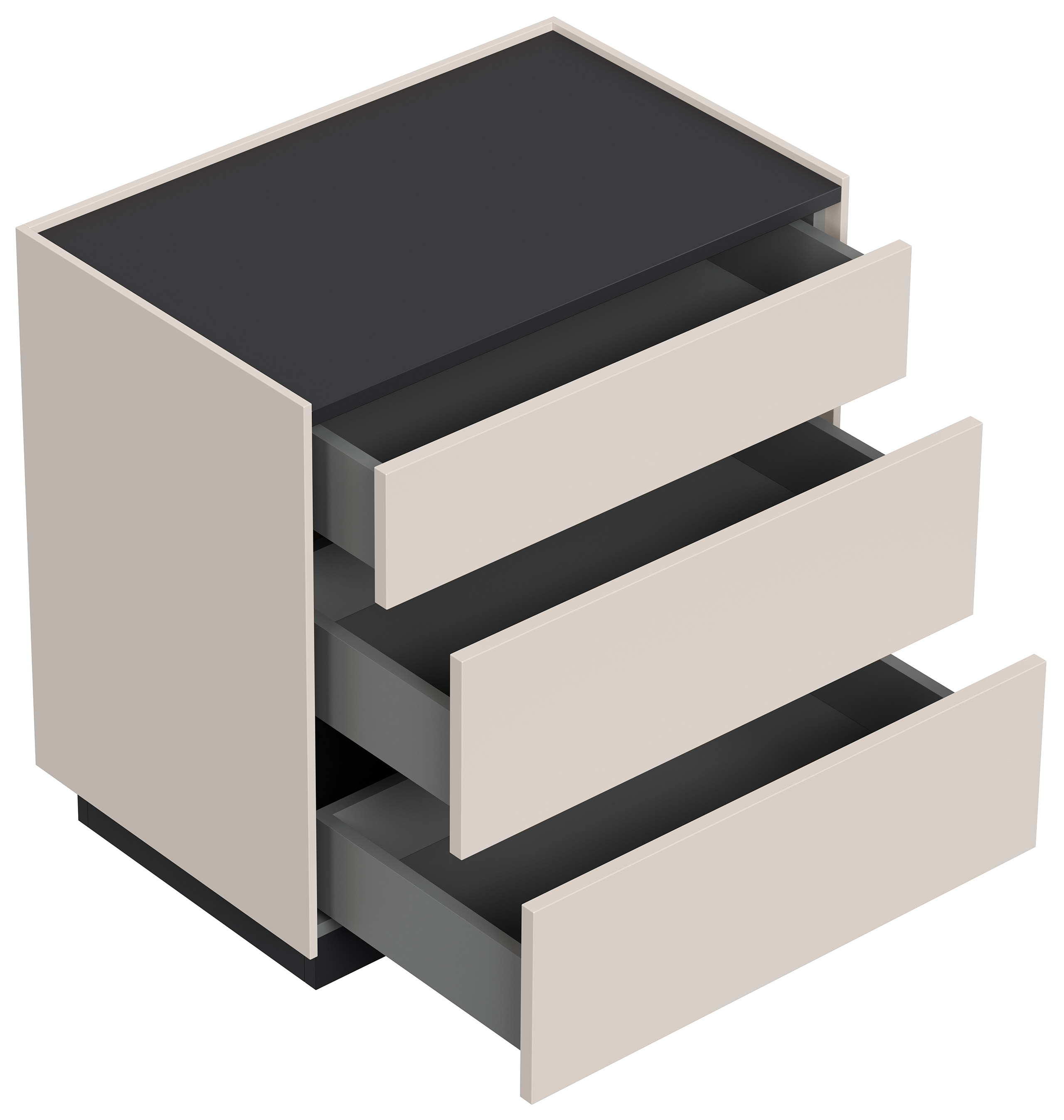 Nachttisch Lux XL 70cm, 3 Pushauszüge lackiert Creme Grafit für Boxspringbett