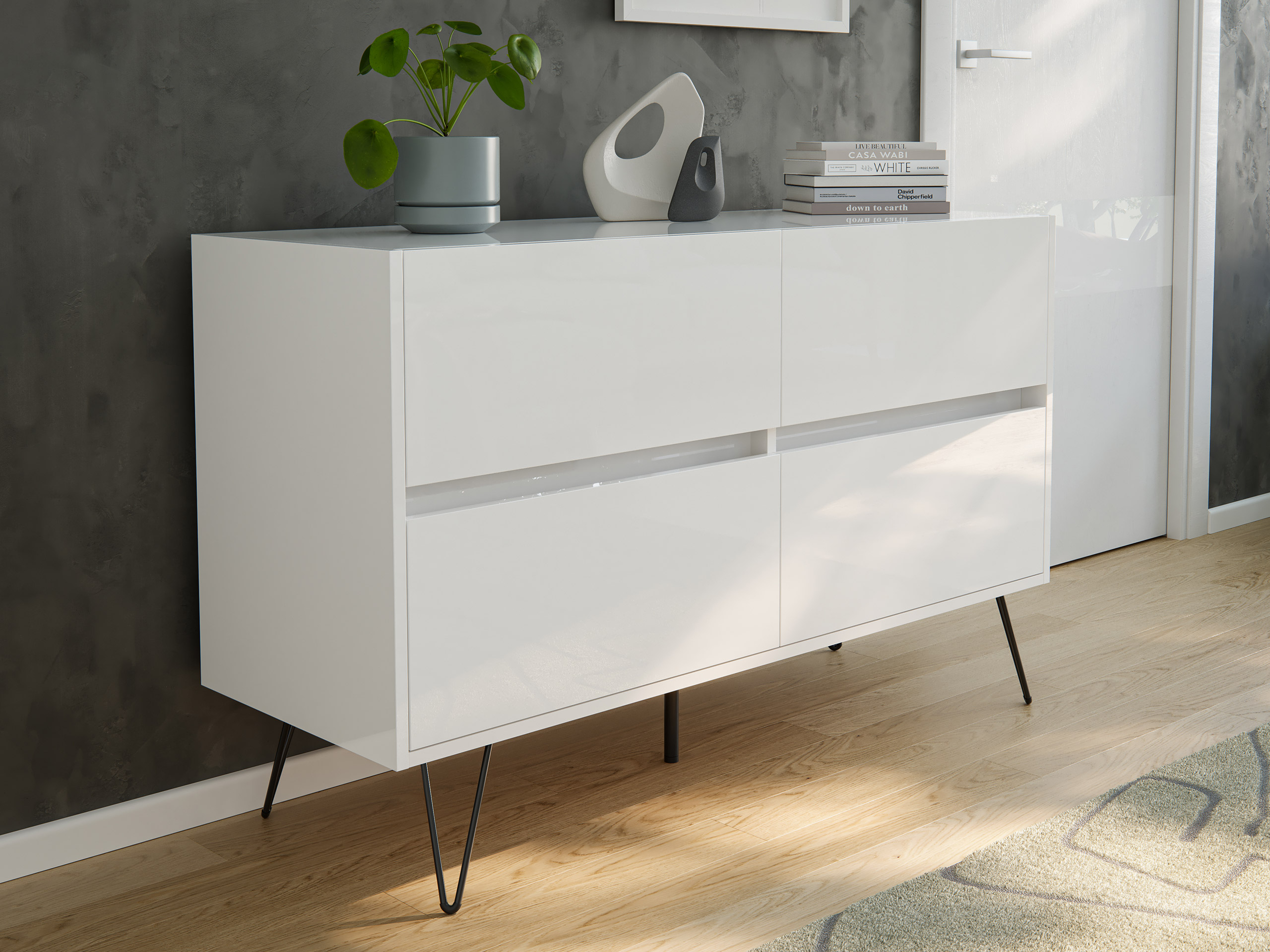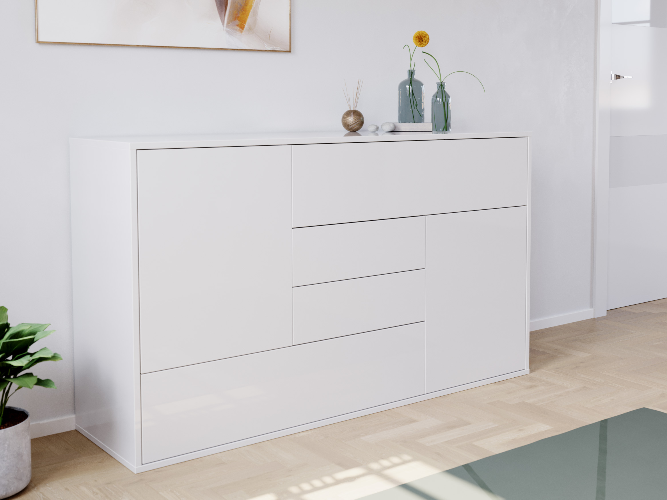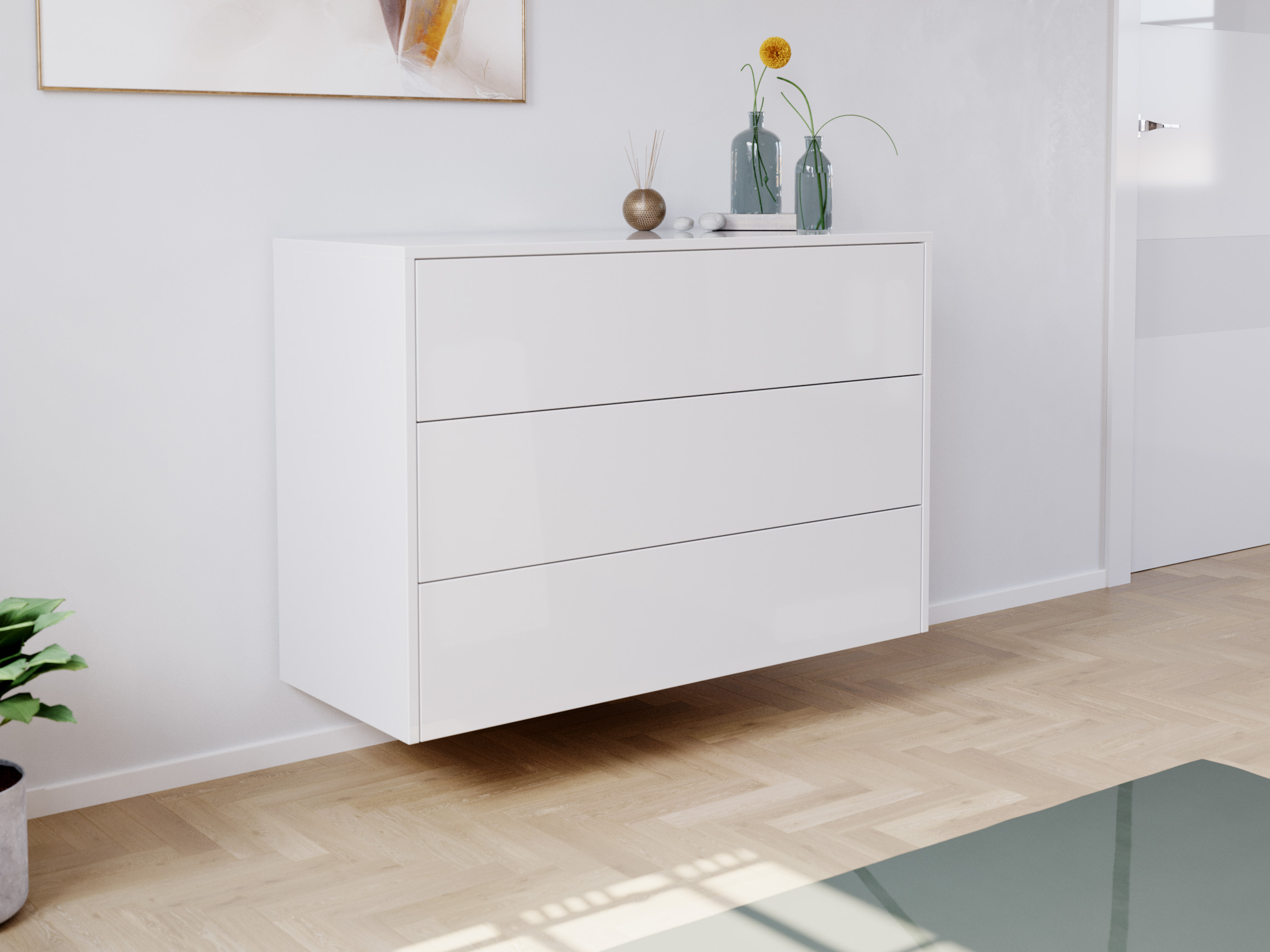 - Innenleben: Mit mattfarbenem Melamin sind die Schubladen beschichtet, in der Regel ebenso ggf. die Innenflächen der Rückwände und Türen.