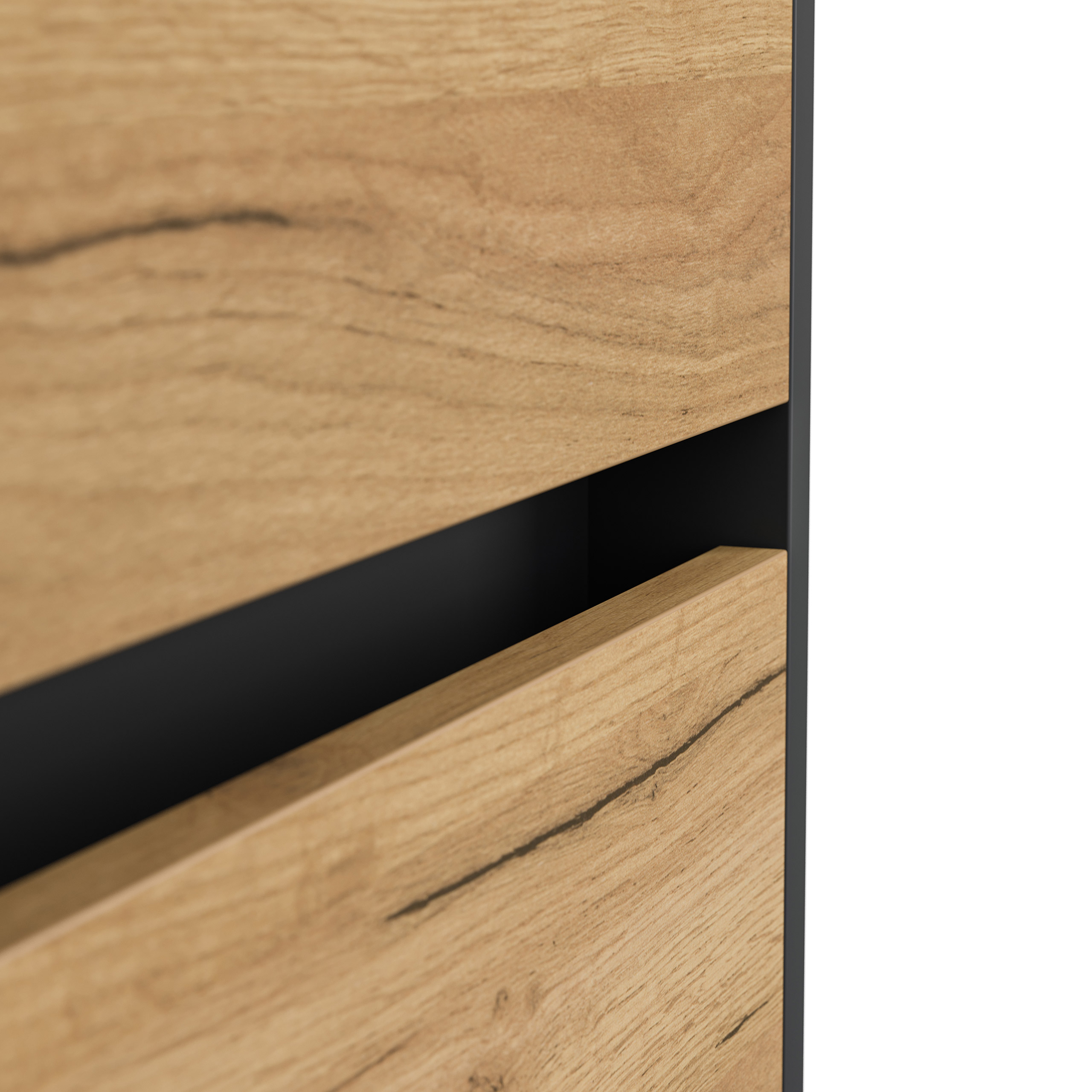Nachttisch Yako 50cm 2 SoftClose-Einzüge stehend Grafit & Eiche Front