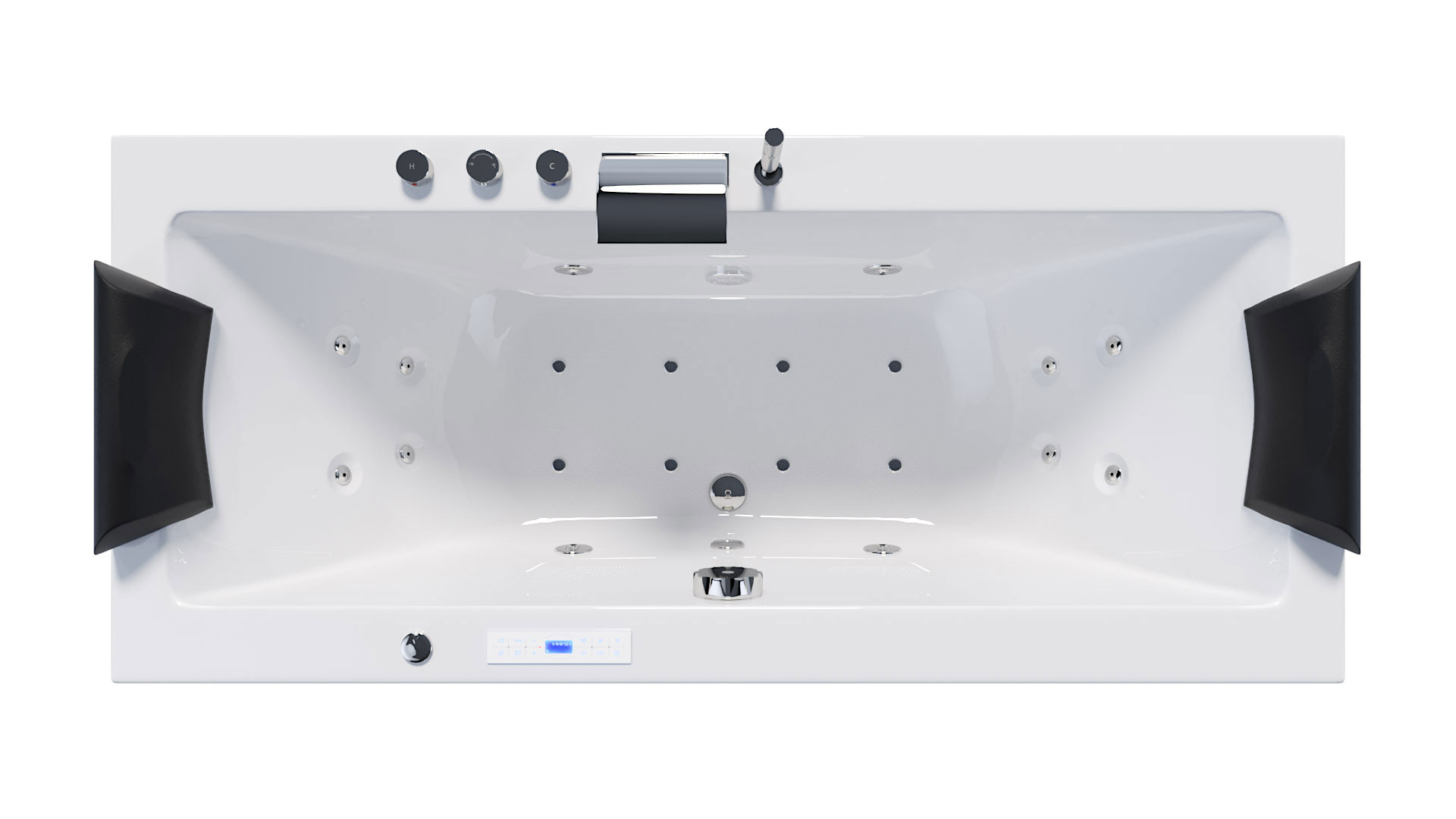 Vorteile: Flatjet-Düse liegt nahezu bündig auf der Whirlpoolinnenfläche (Flatline) Hochwertiger Düsenkörper des Flatjets: aus einem massiven Messingblock gefräst, dann verchromt.STANDARD-Ausstattung: Rückenmassagedüsen