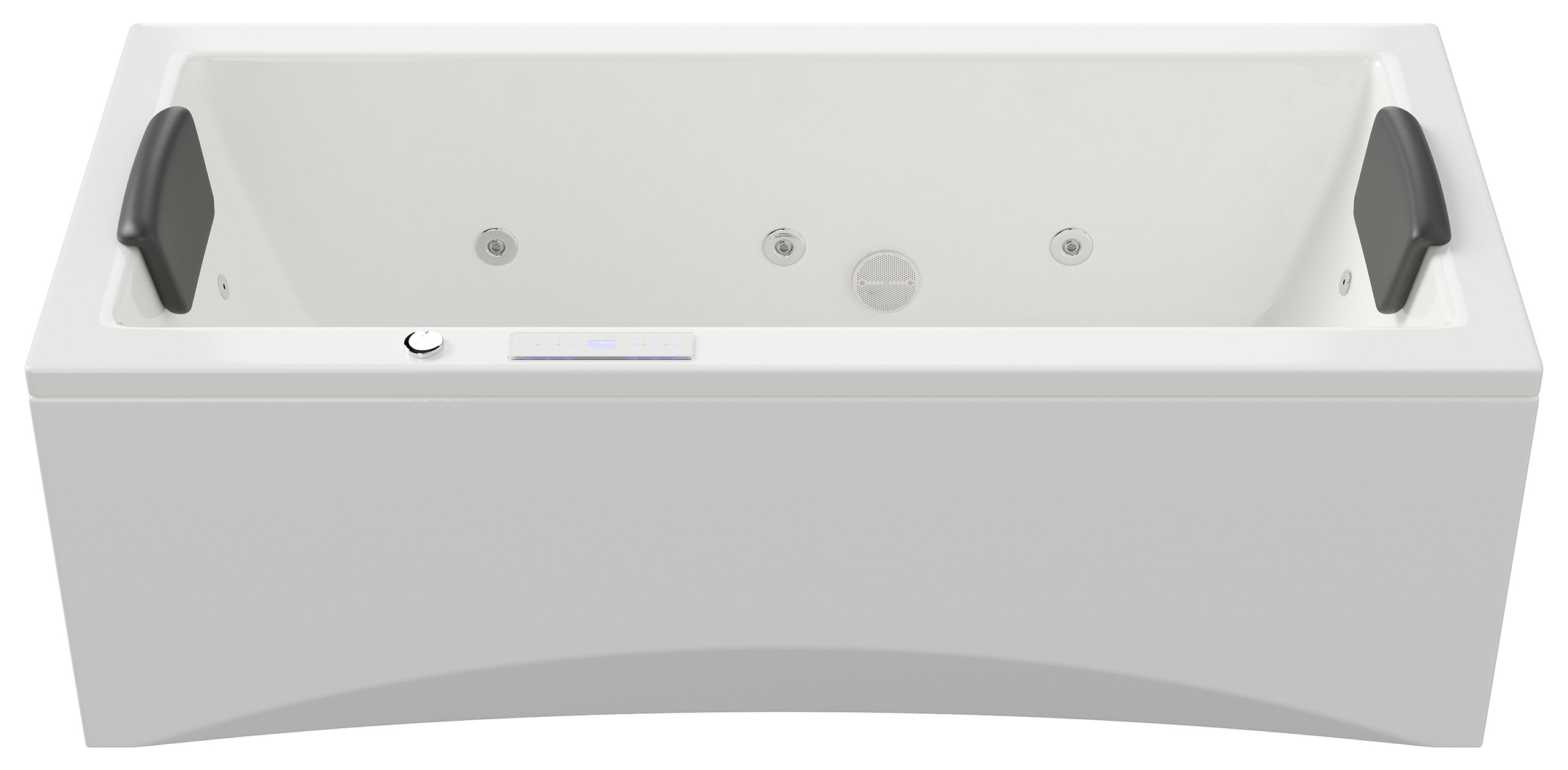 Vorteile: Dezente Strahler seitlich. Automatischer Farbwechsel mit gleichmäßiger Wasserbeleuchtung. Intensive Farben leuchten unter Wasser. Entspanntes Baden mit Chromotherapie.Massagefunktion: Düsen-Ausstattung