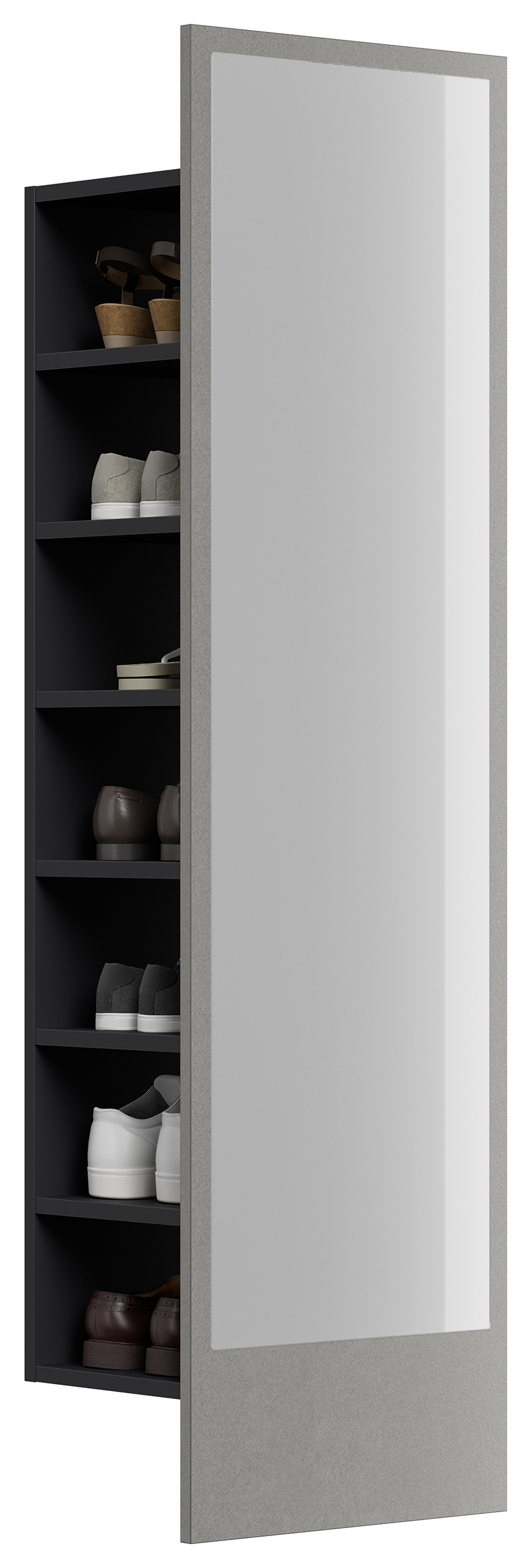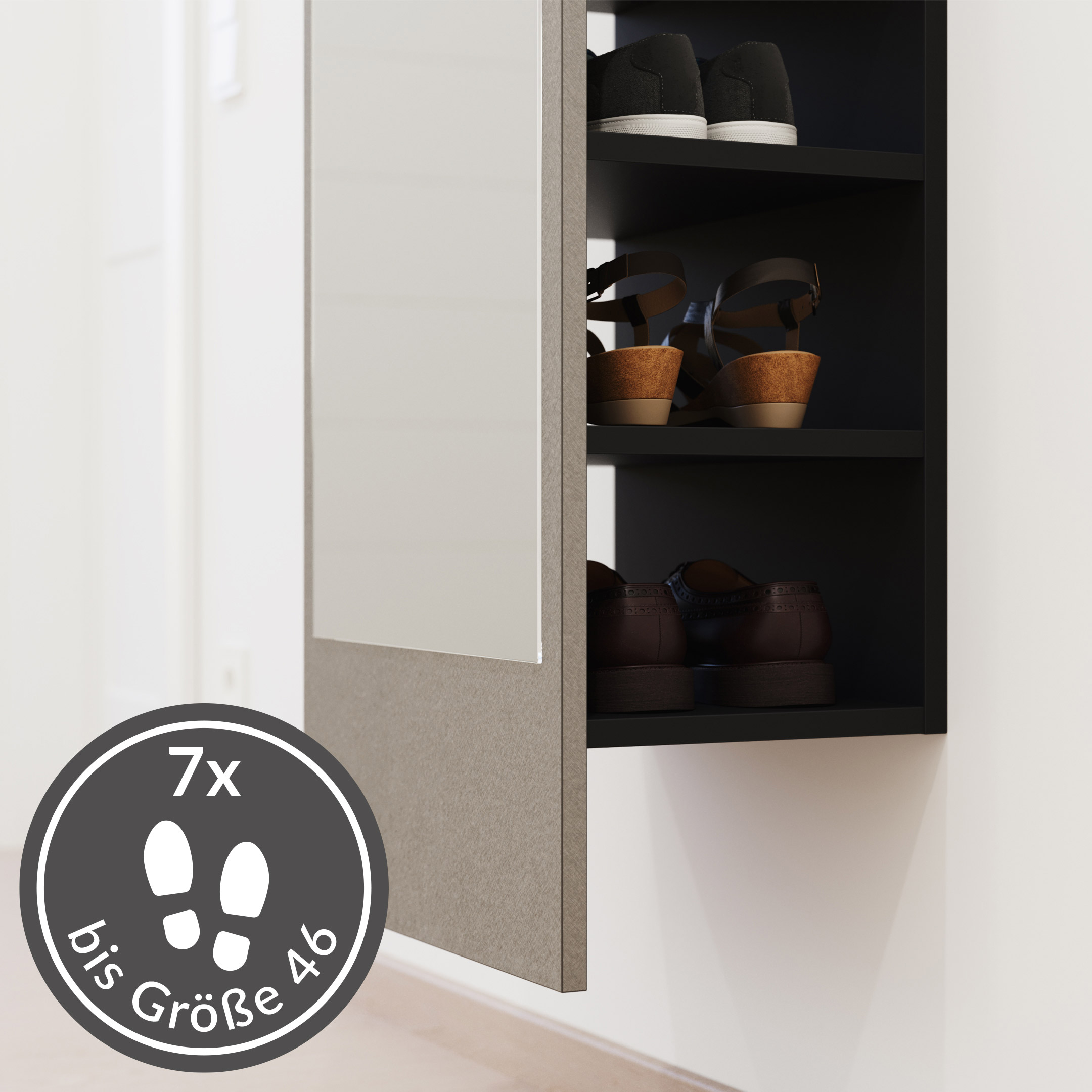 Elegantes Schuhregal Vestis Reflex in Asche für 7 Paar Schuhe inklusive Spiegelpaneel
