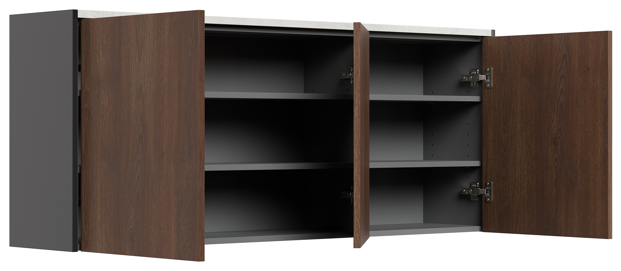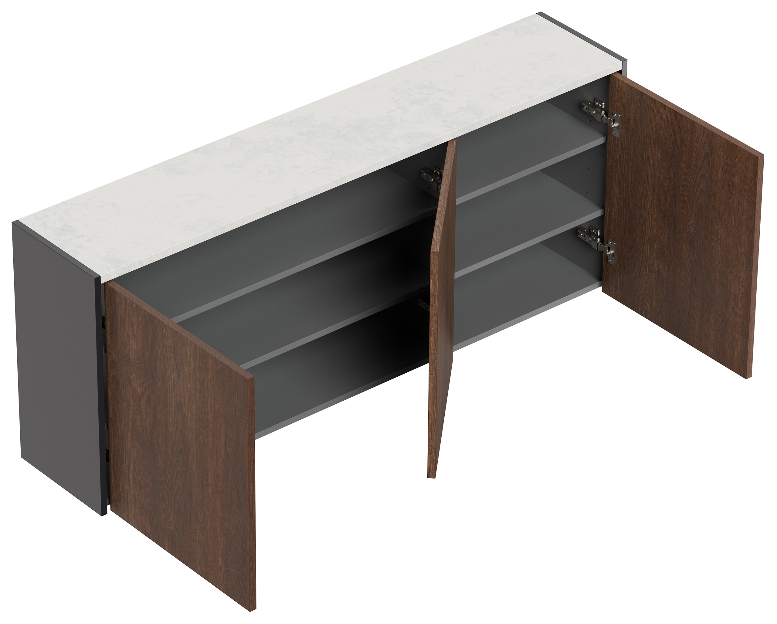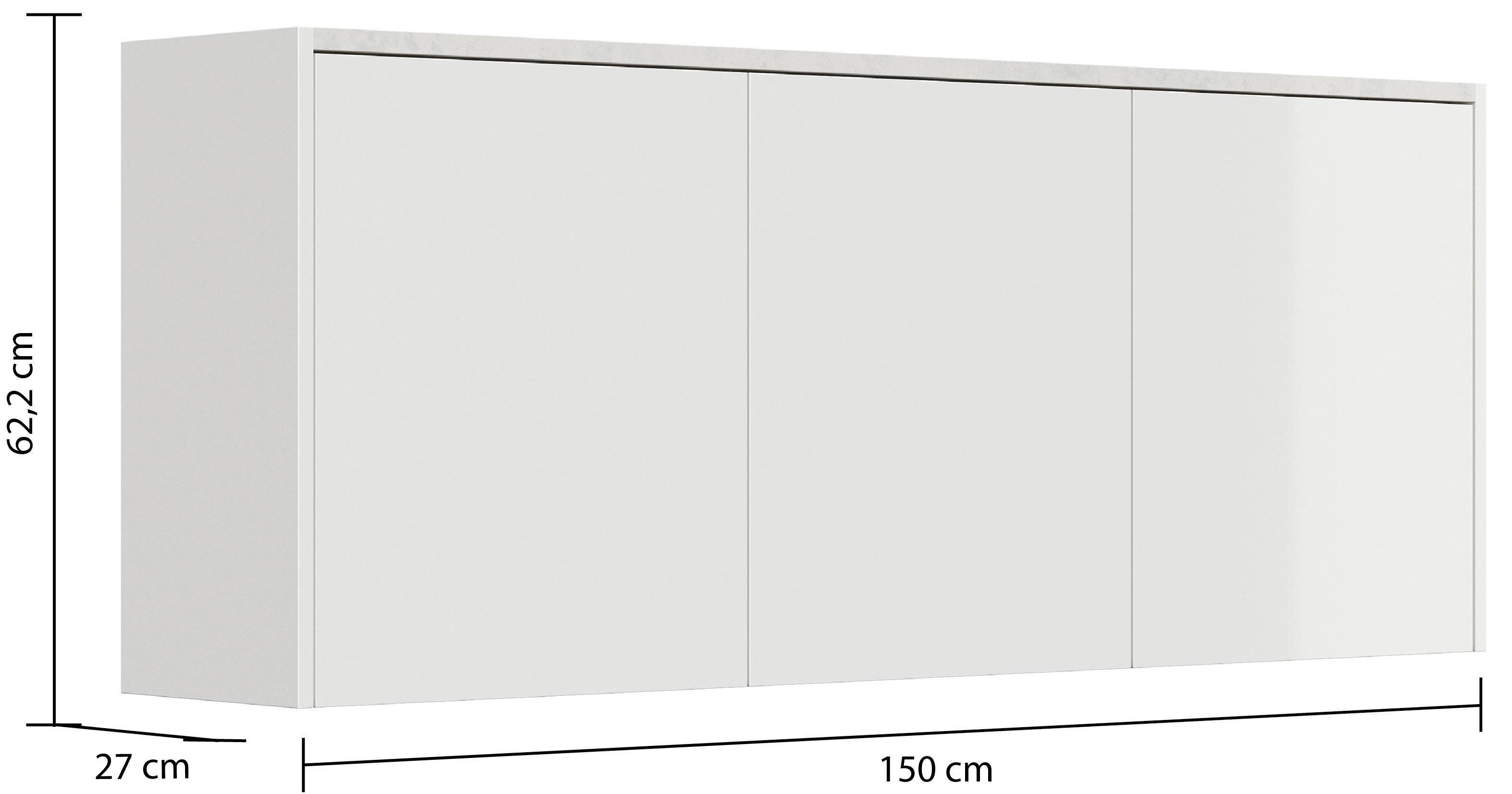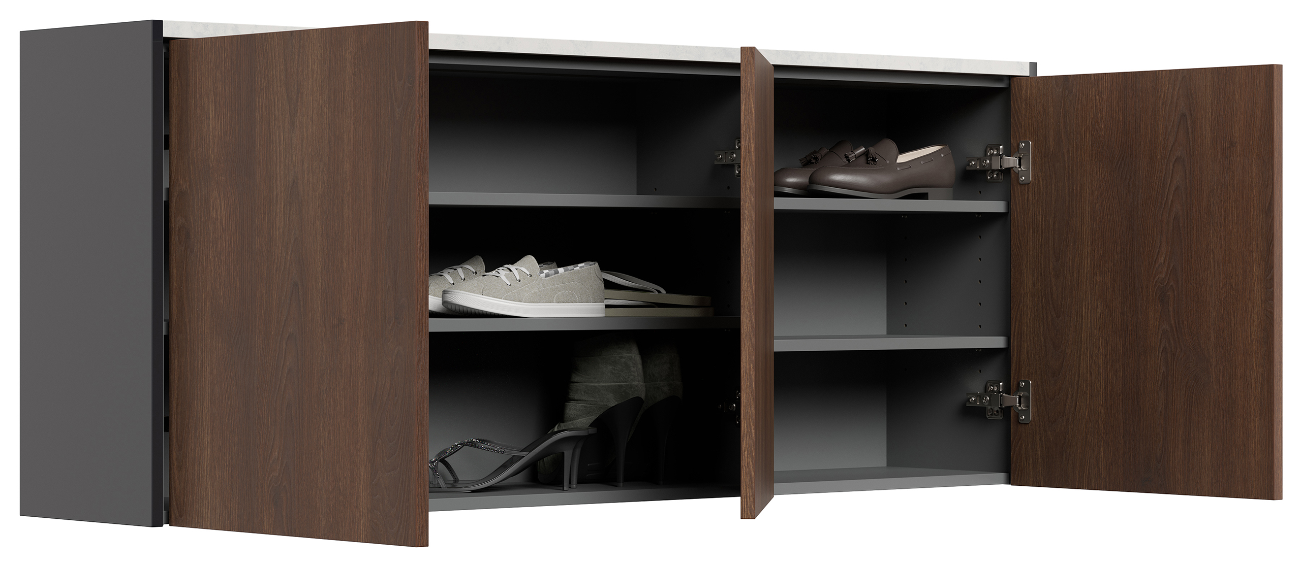 Schuhschrank Alba-XL Quarz hängend Quarzsteinplatte als Ablagefläche, 3 Türen, geeignet für 18 Paar Schuhe (B/H/T) 150/62,2/29,5 cm.