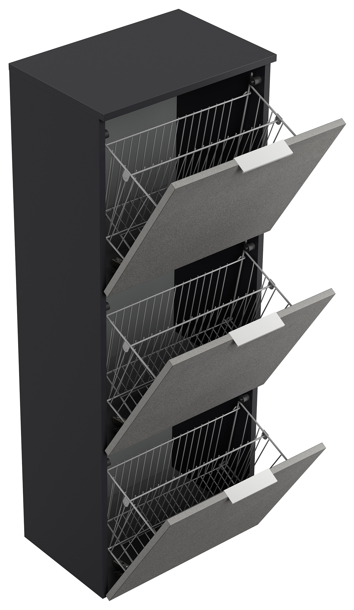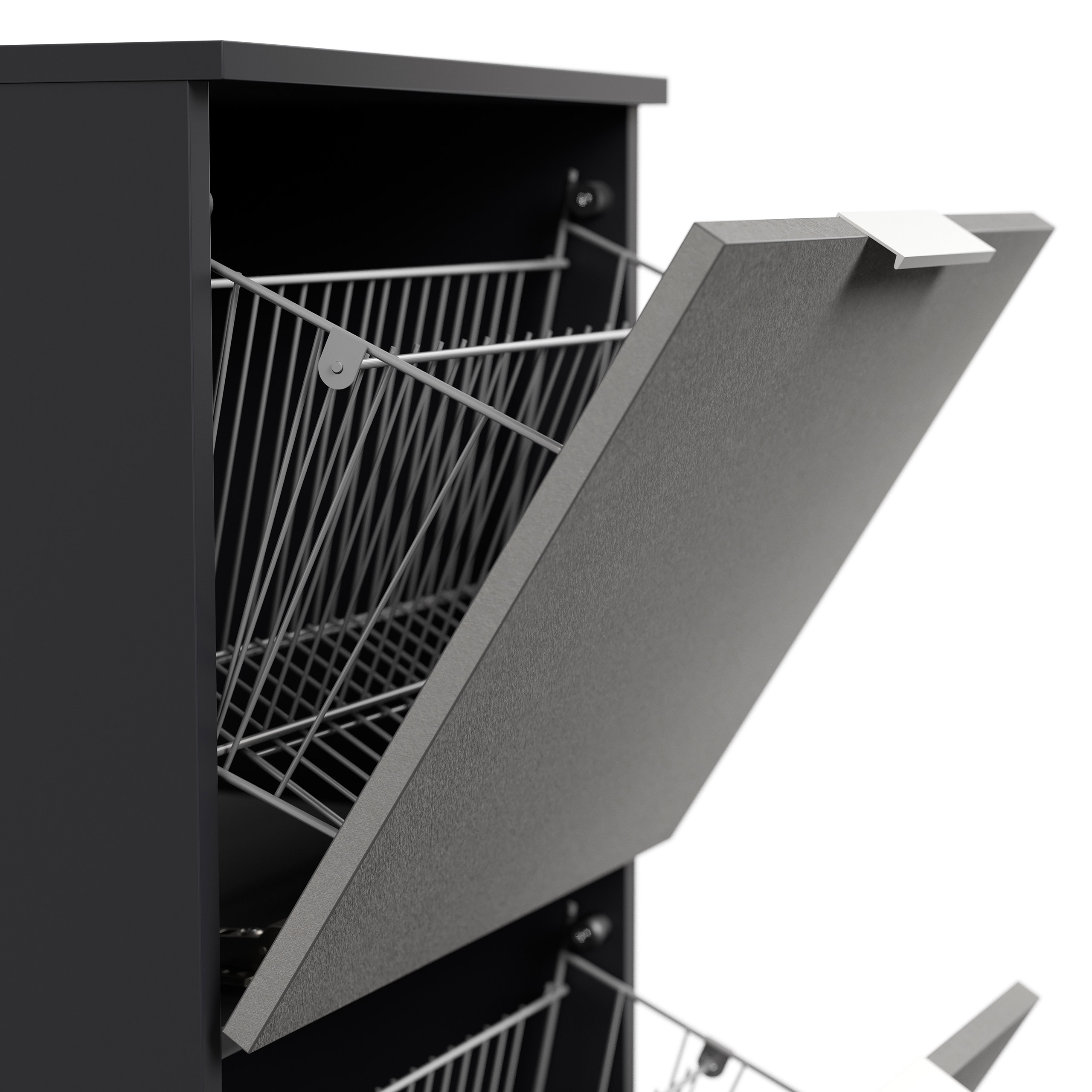 Schuhschrank-Klappen mit größzügigen Metallkörben: