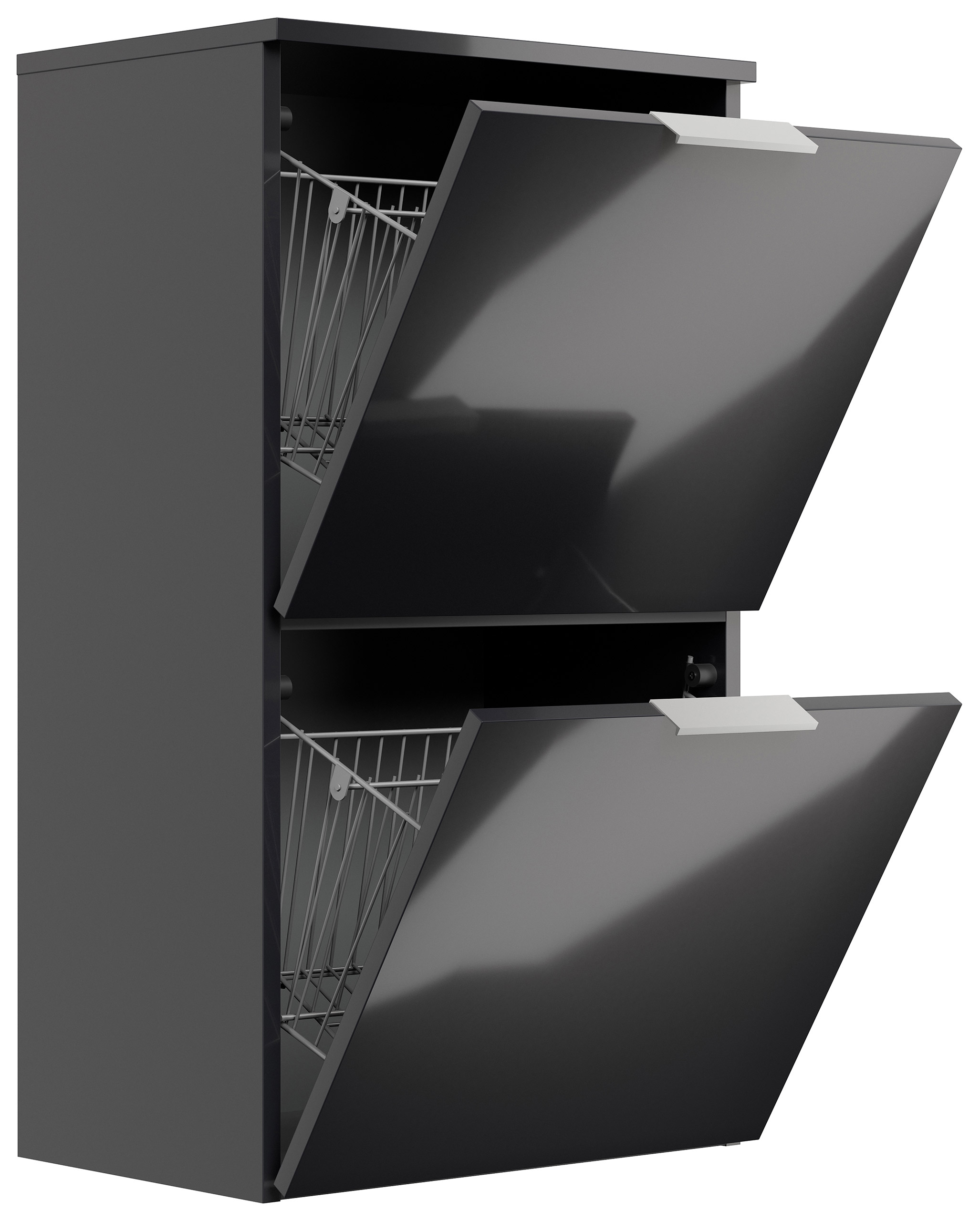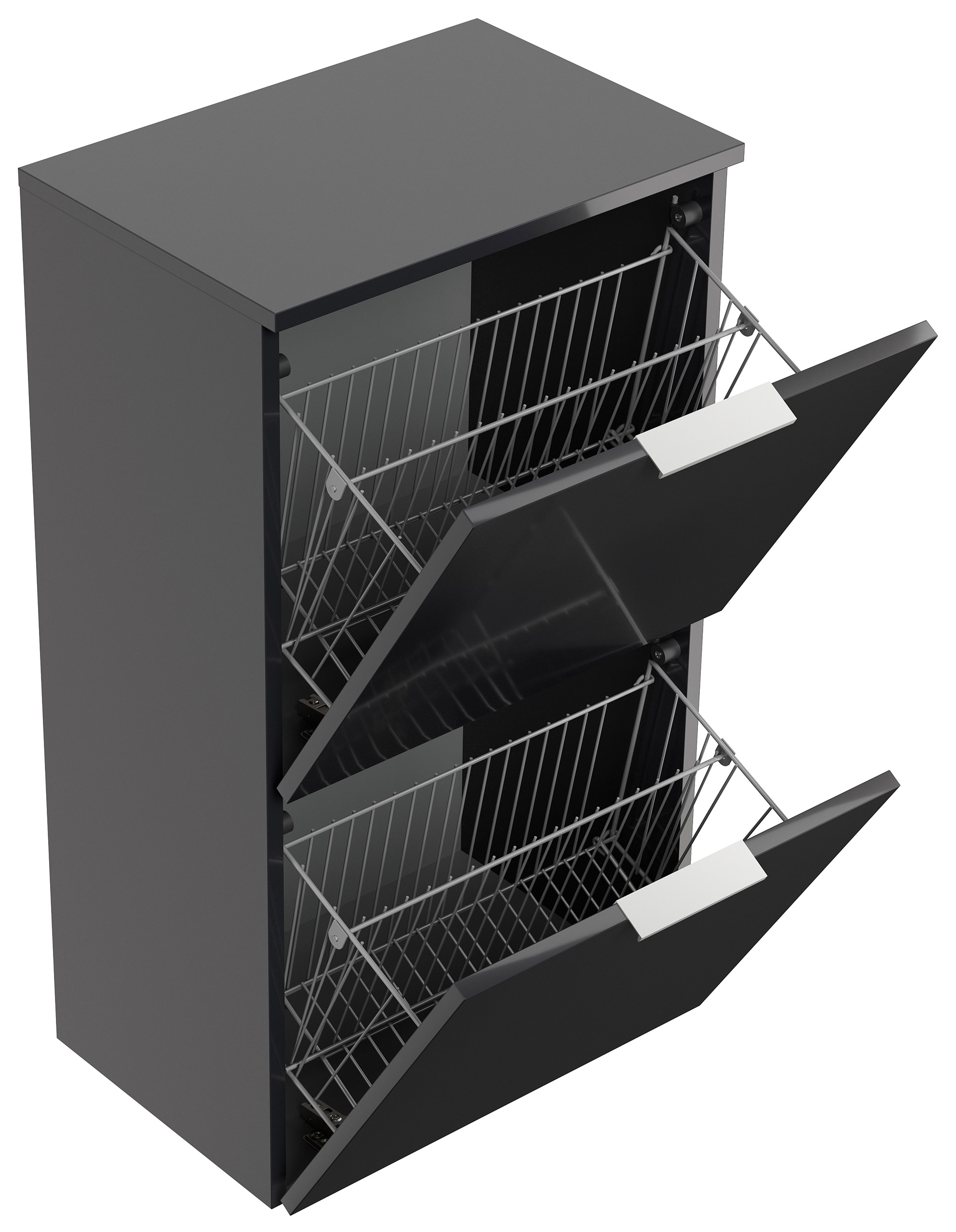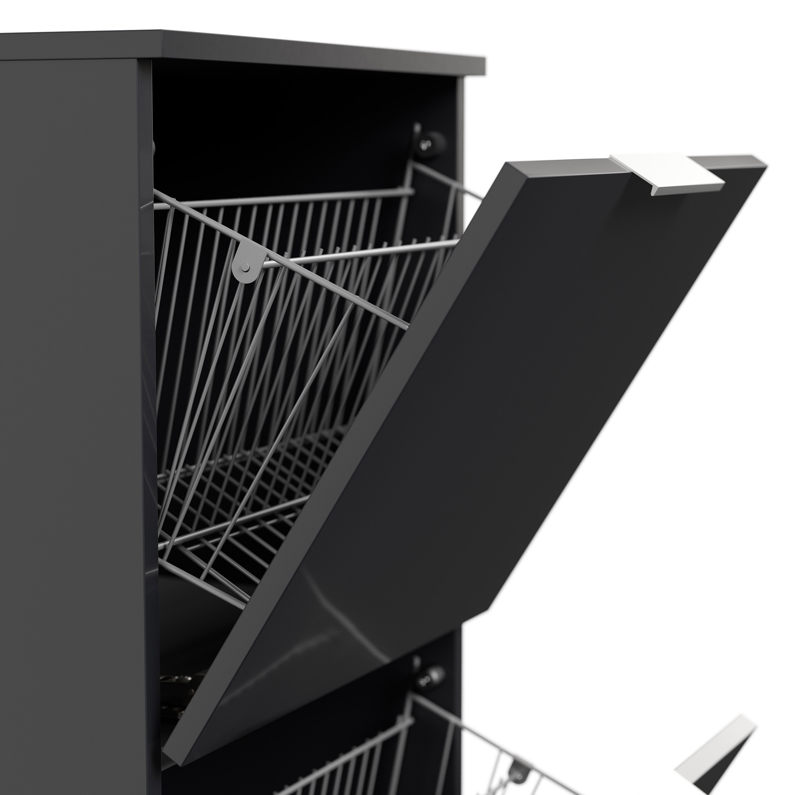 Schuhschrank-Klappen mit größzügigen Metallkörben: