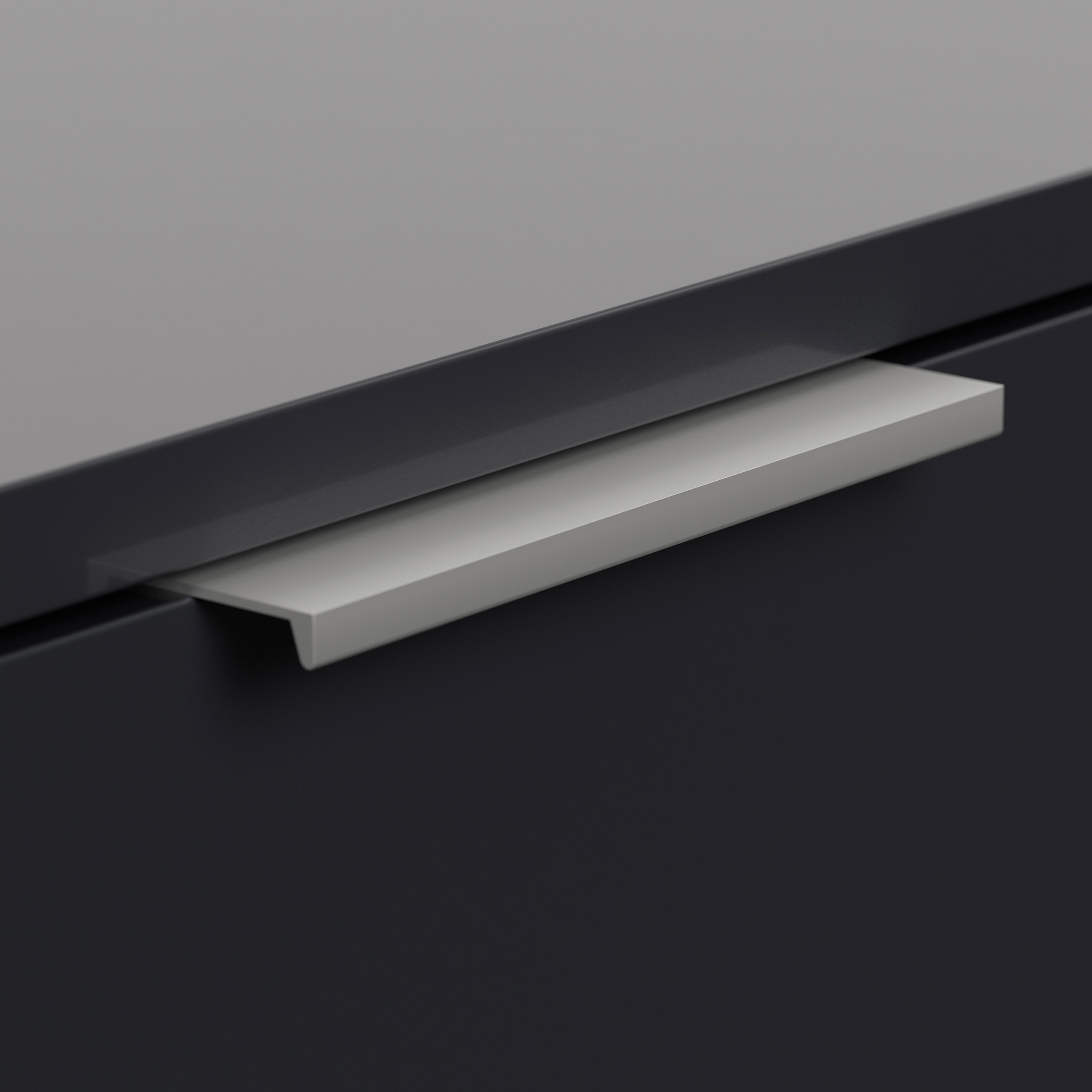 Die Griffe sind flach und schmal. Sie werden auf die Schubladenkante montiert und rücken auf diese Weise optisch diskret in den Hintergrund. Die dezente Optik wirkt sehr modern und dennoch zeitlos.