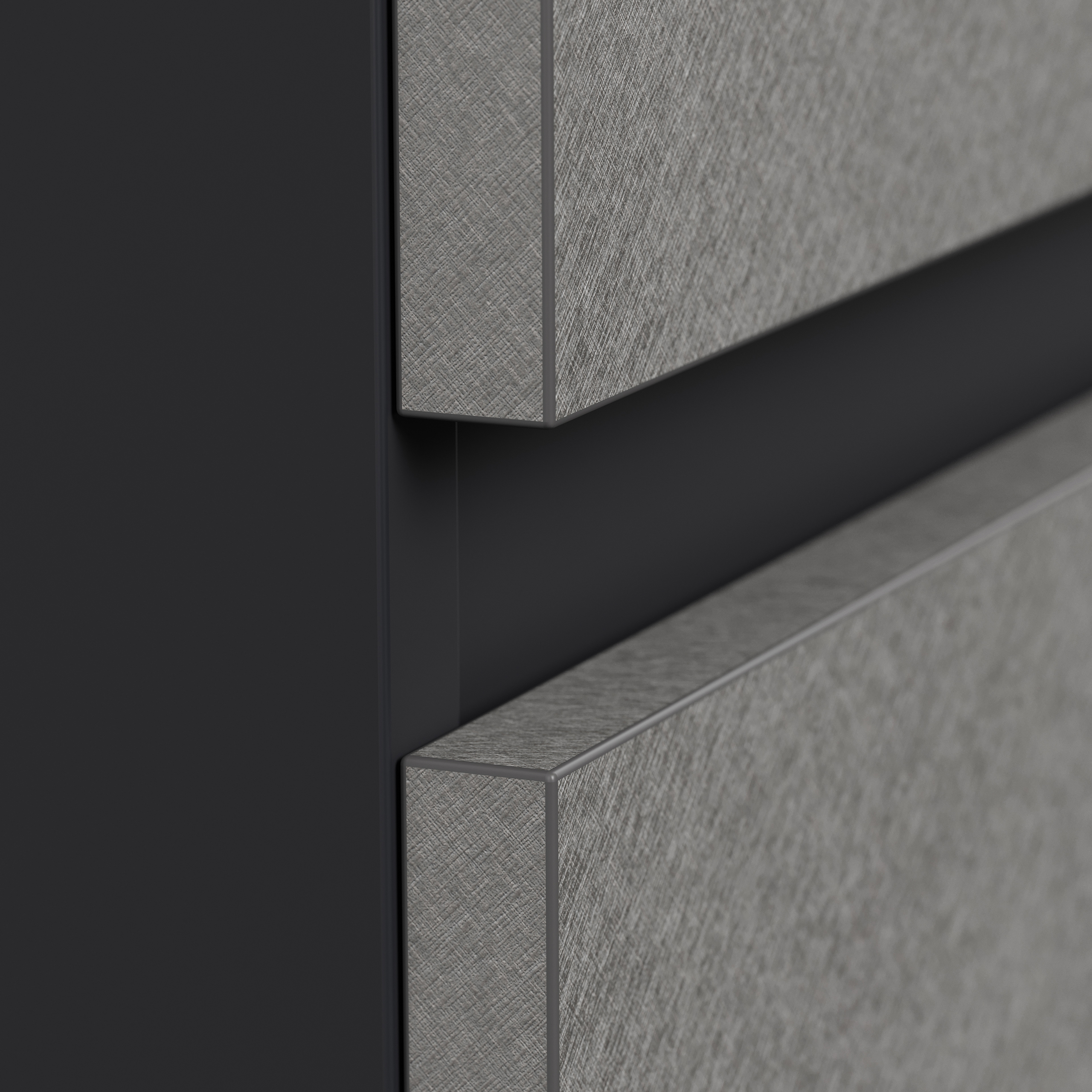 Wie gebürsteter Stahl! Charakterstisch für Idea ist die ungleichmäßige subtile und lineare Linienführung, die der Oberfläche einen rauen, aufgebürsteten und metallisch glänzenden Look verpasst. Haptisch hingegen sind die Oberflächen ausgesprochen weich. Diese Mischung macht den ästhetischen Reiz des Dekors aus und unterstreicht das modernde Design unserer Möbel