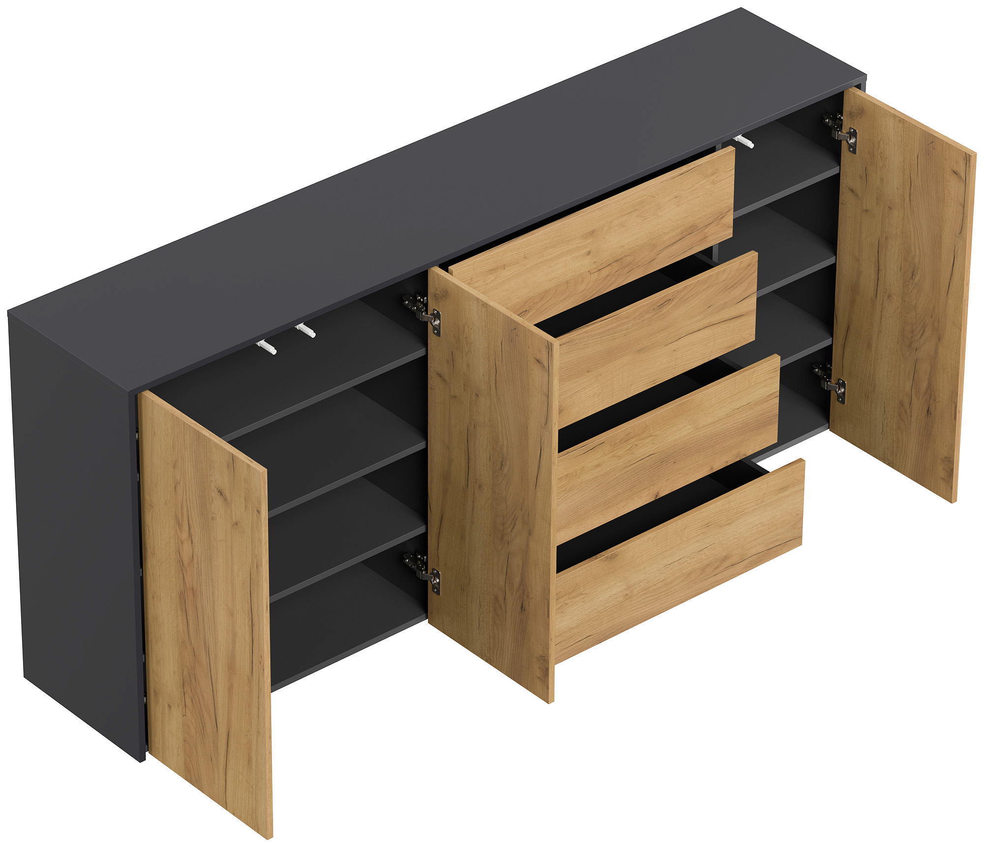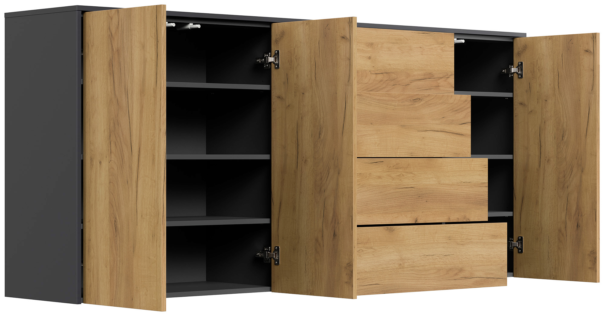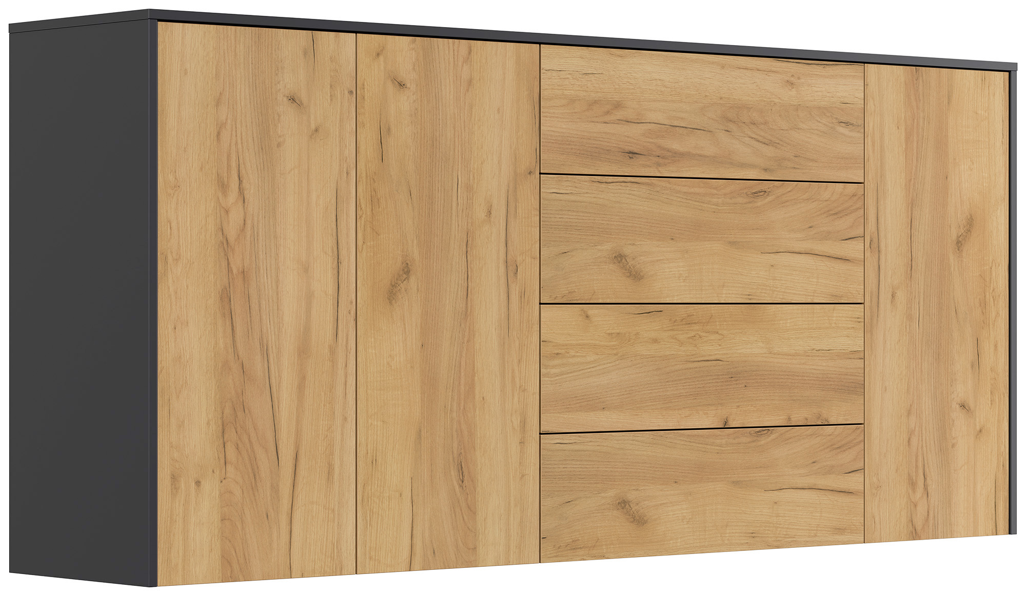 Sideboard Impulse 200cm 3 Türen 4 Pushauszüg Grafit Eiche