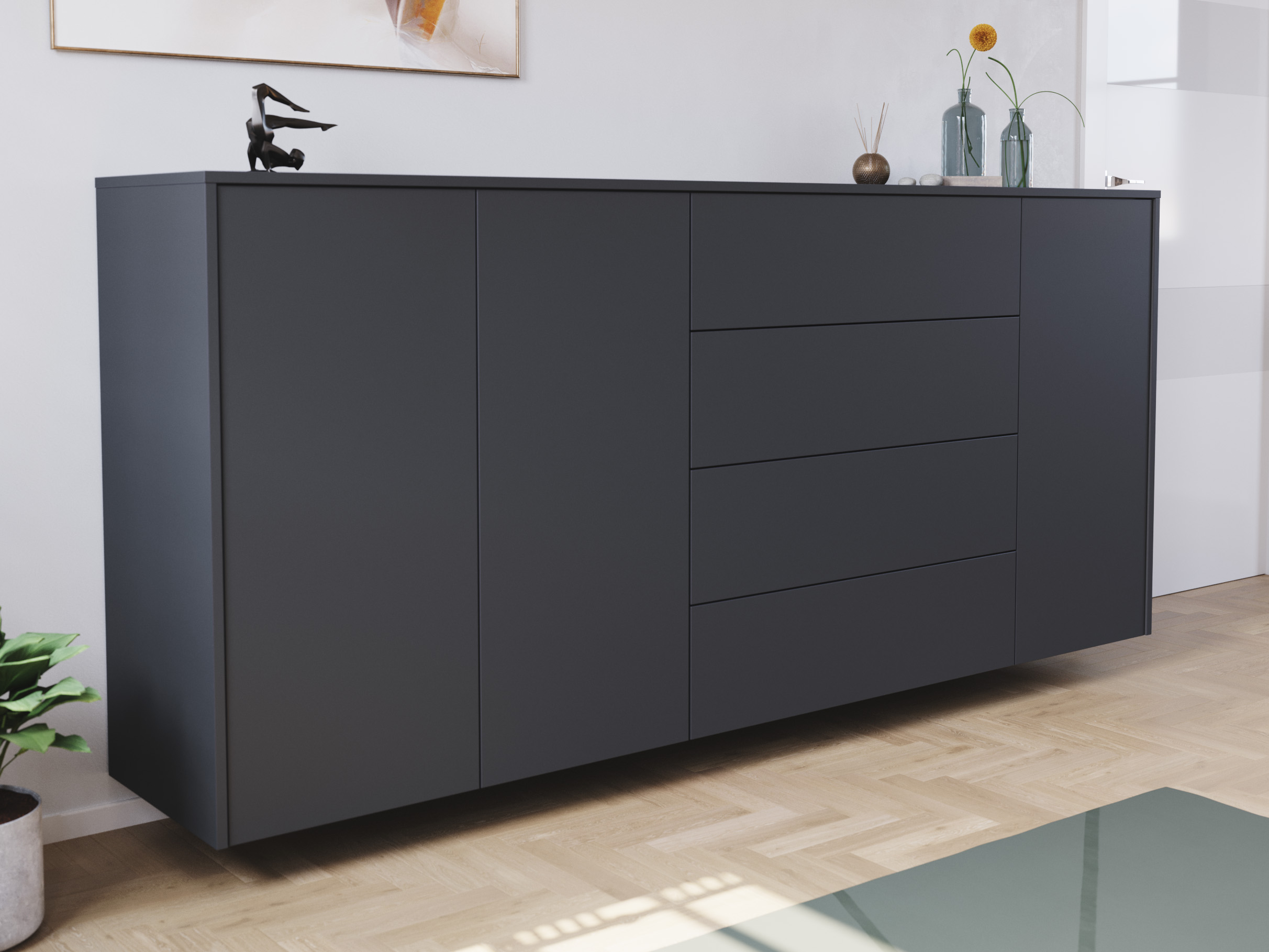 Sideboard Impulse 200cm 3 Türen 4 Pushauszüg Grafit