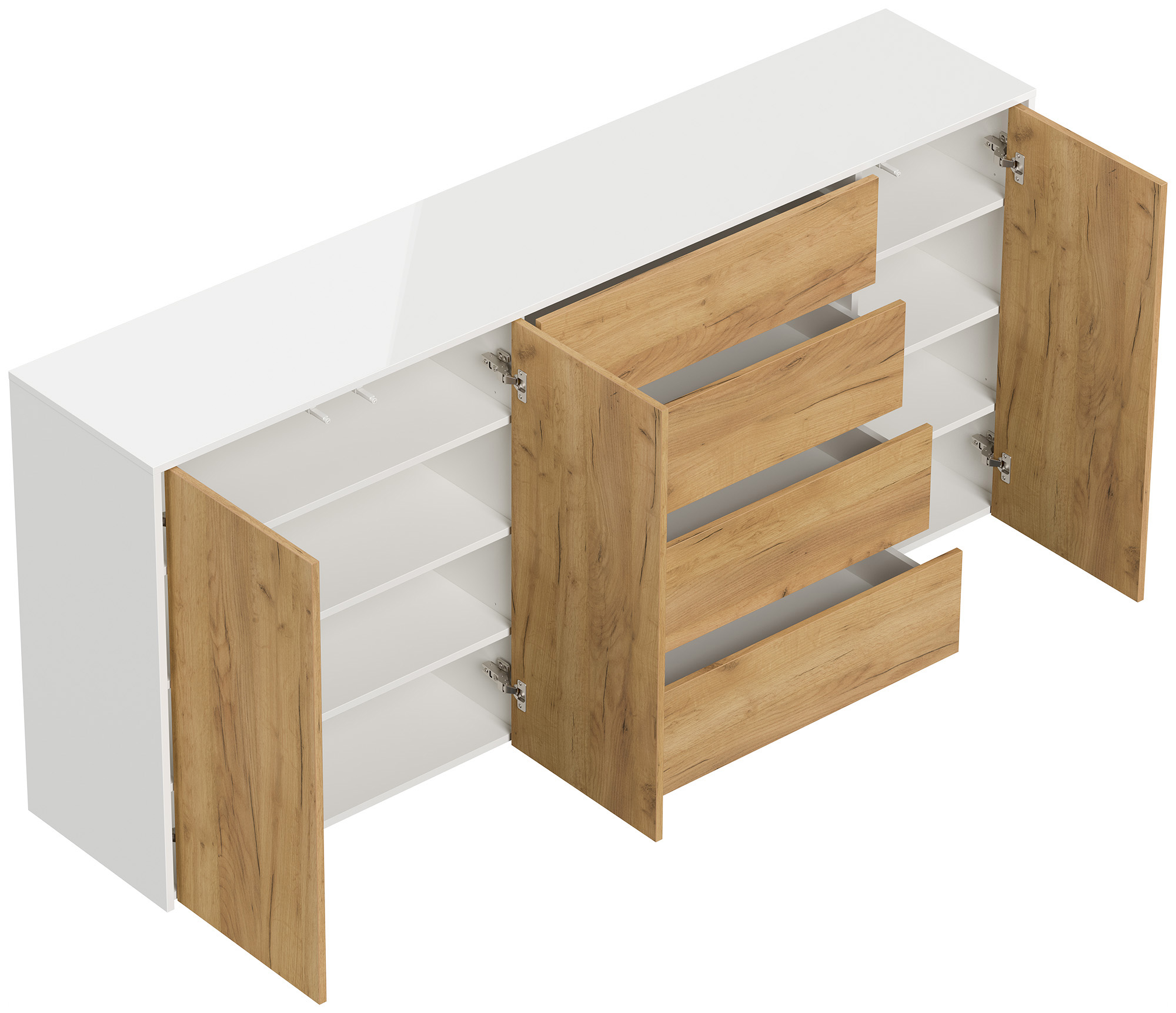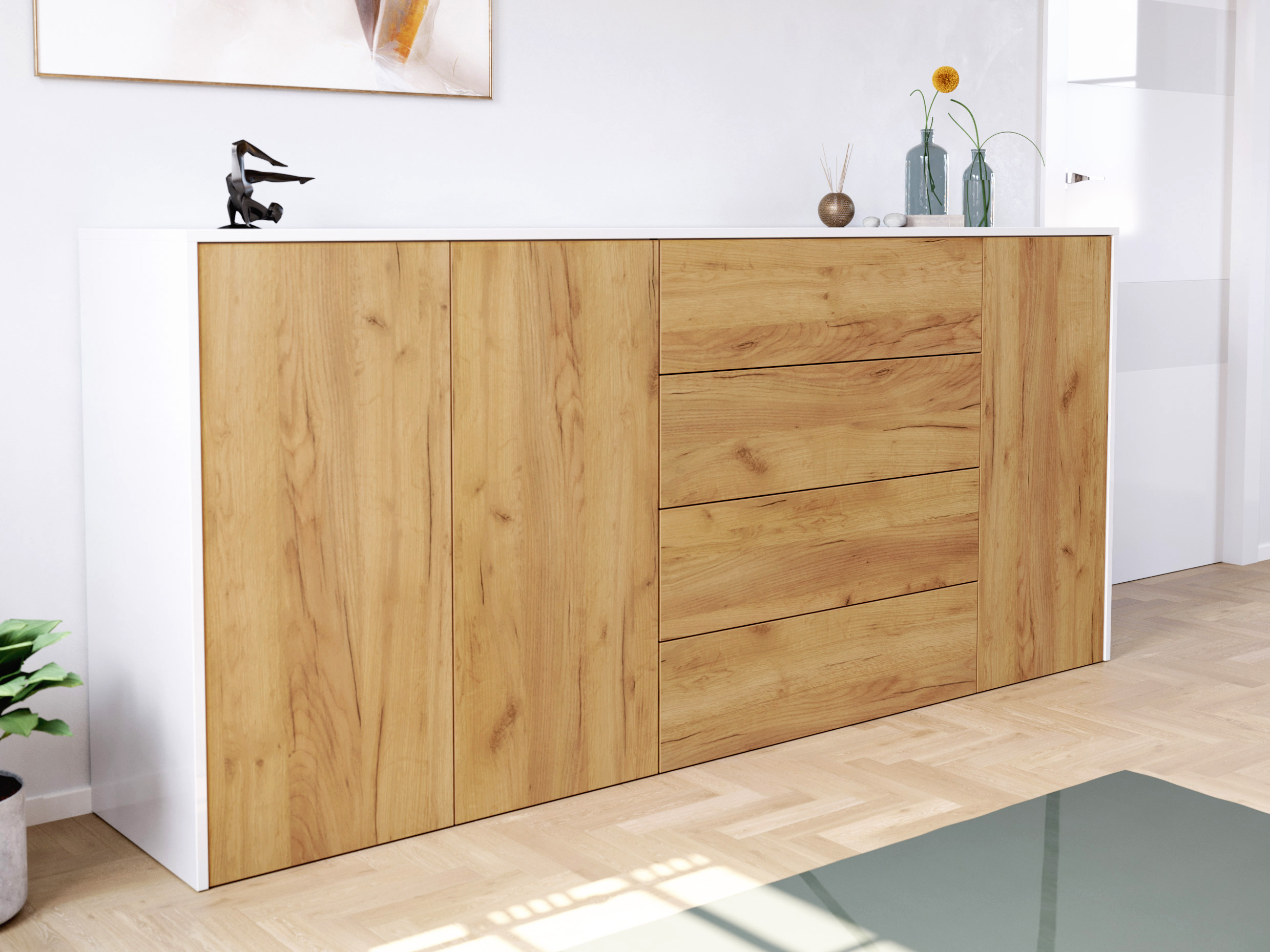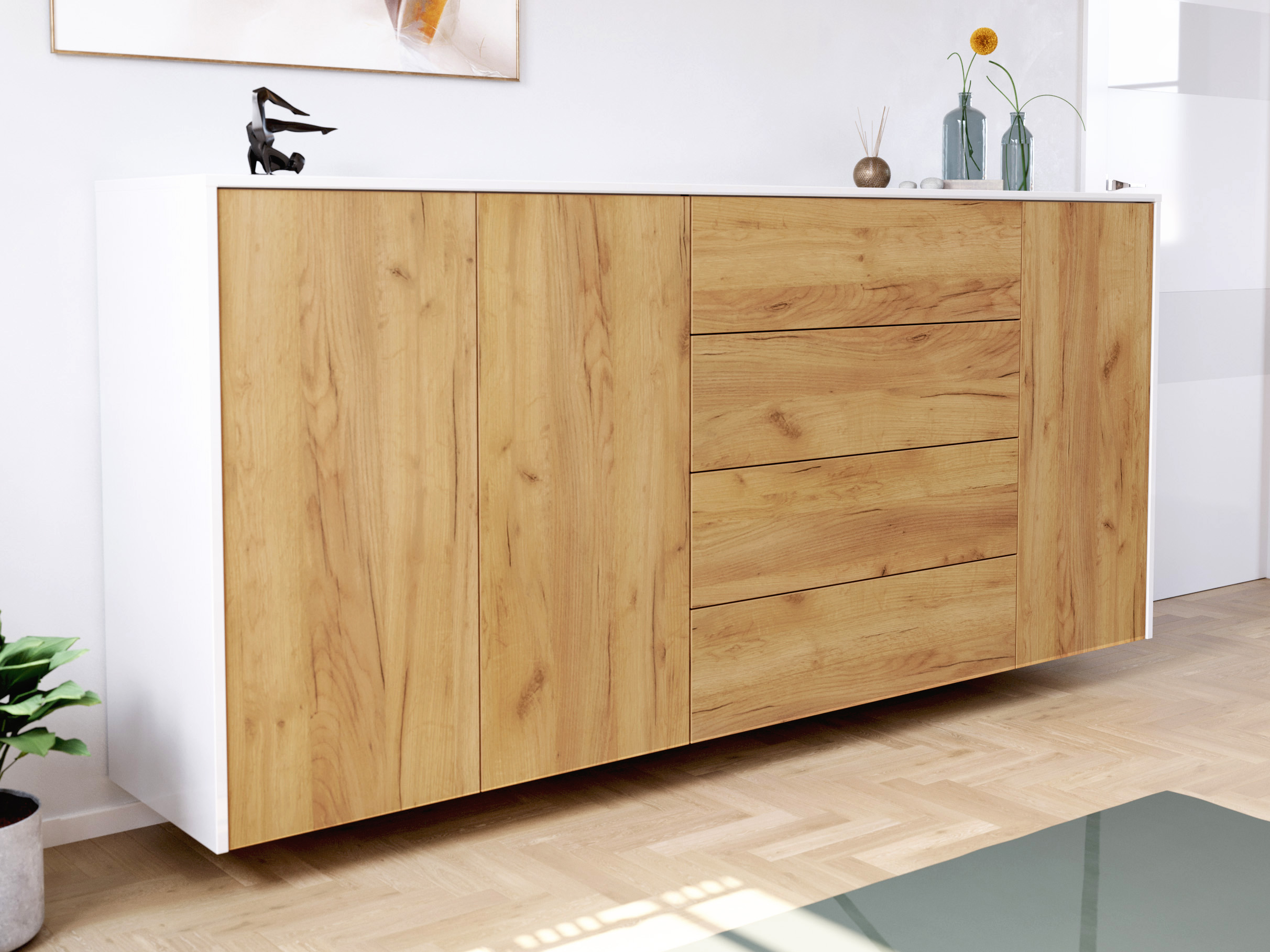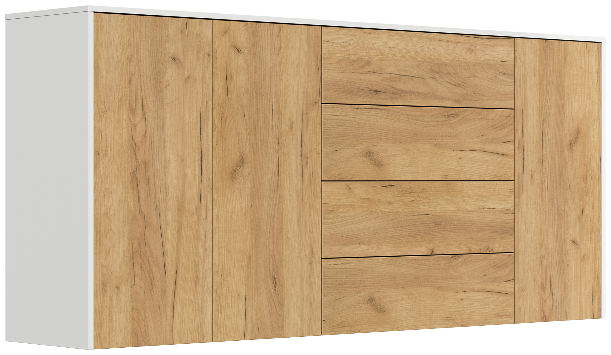 Sideboard Impulse 200cm 3 Türen 4 Pushauszüg Weiß Hgl Eiche