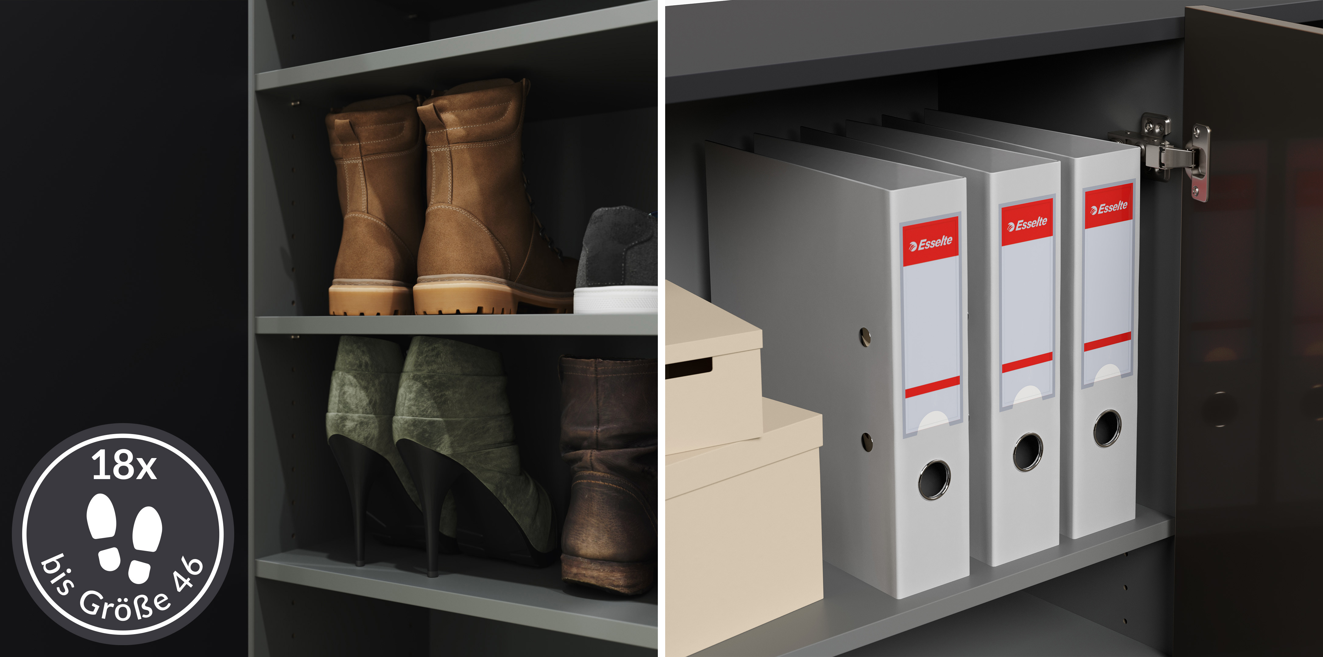 Raumwunder Schuhschrank Alius-L 3 Türen 24 Paar Grafit hochglanz