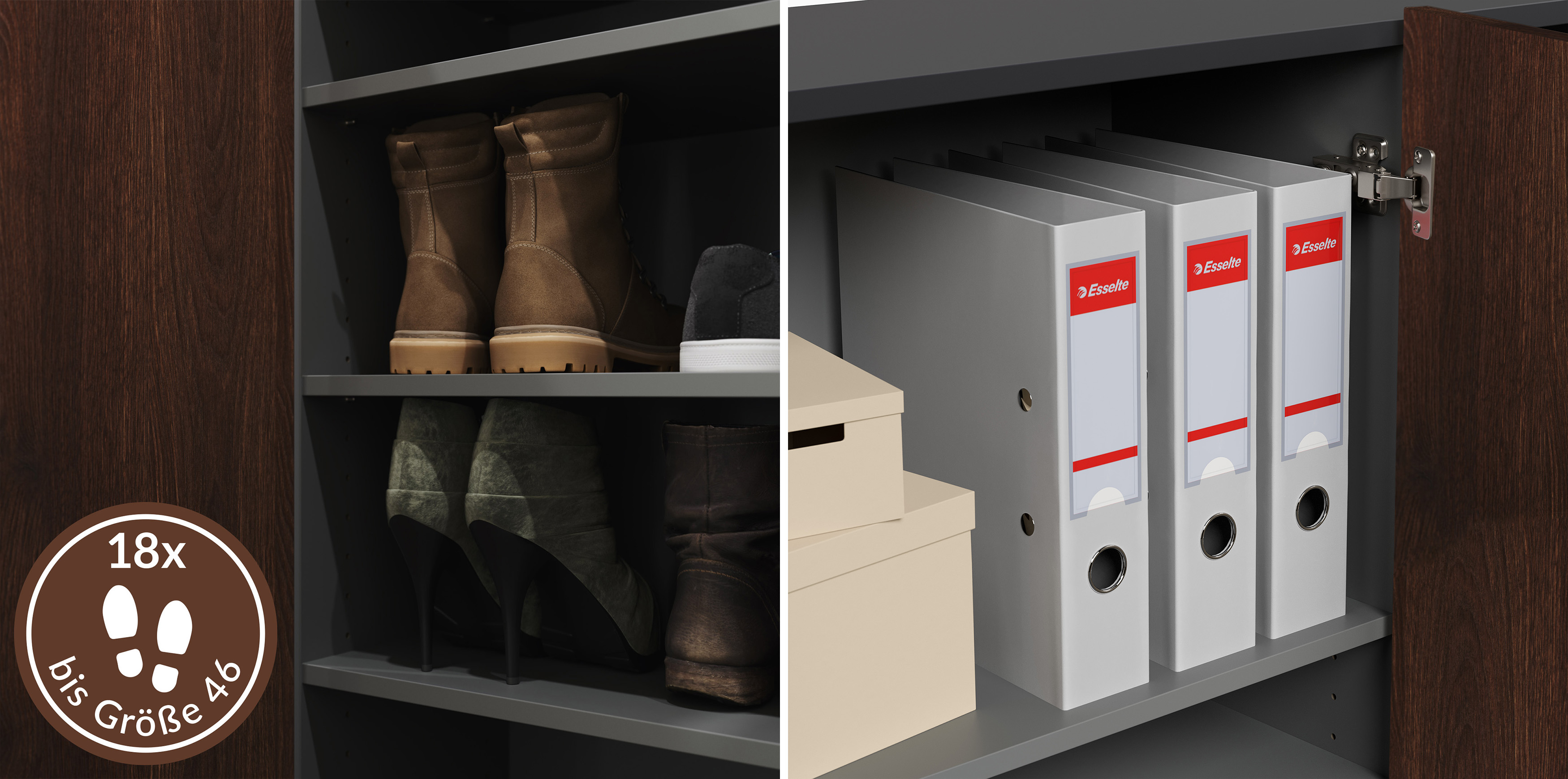 Zeitloses Design: Der Schuhschrank Alius-M in Redwood mit 2 Türen für 18 Paar