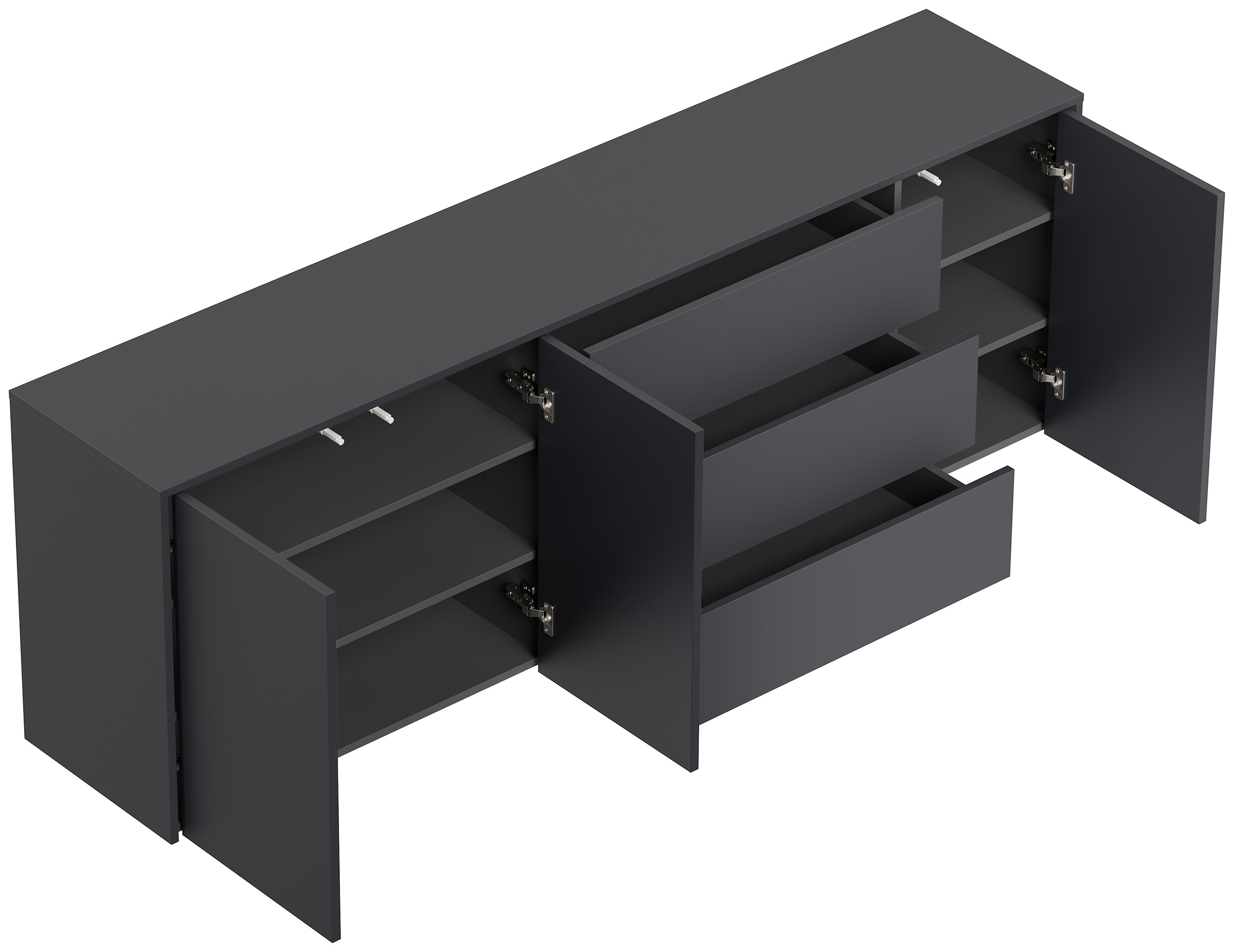 Sideboard Silia B hängend 200cm 3 Türen 3 Pushauszüge Grafit
