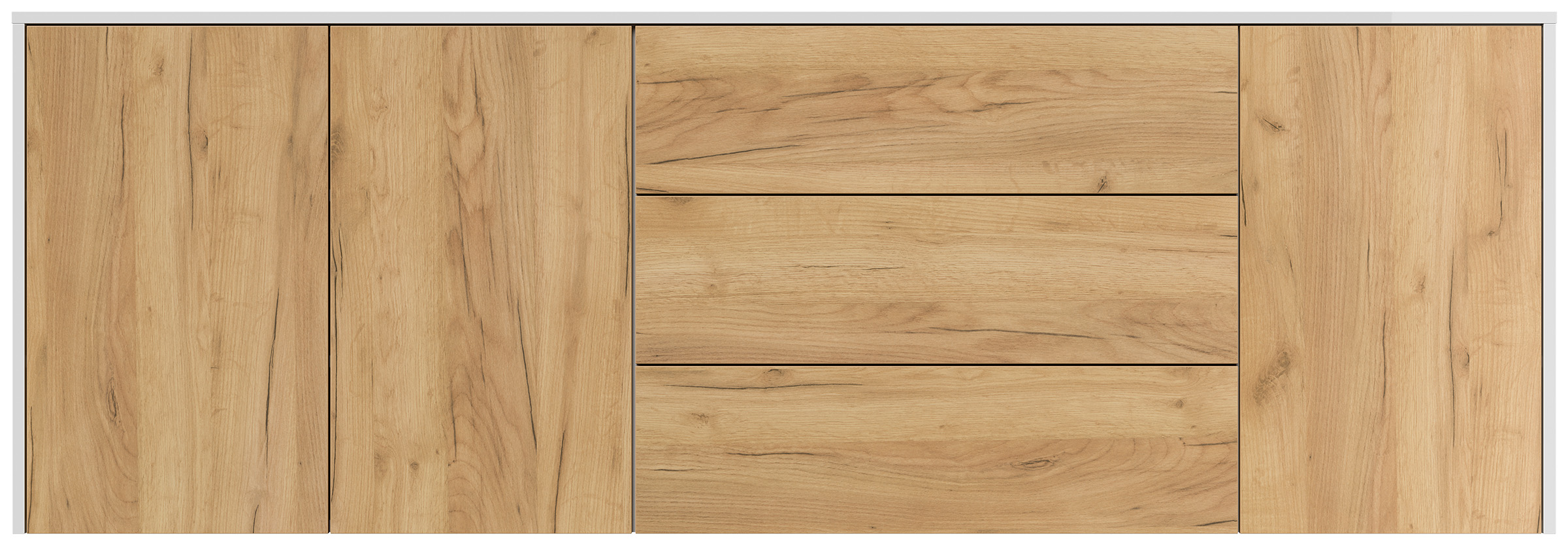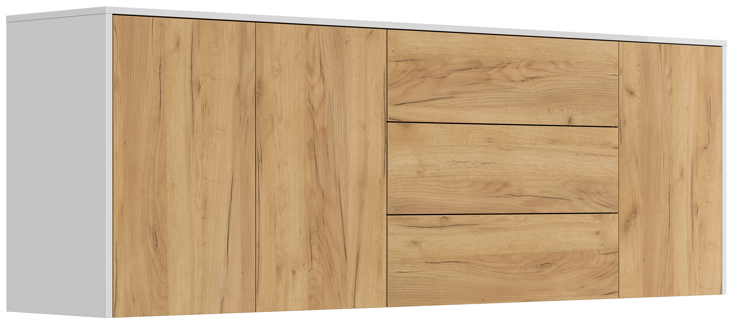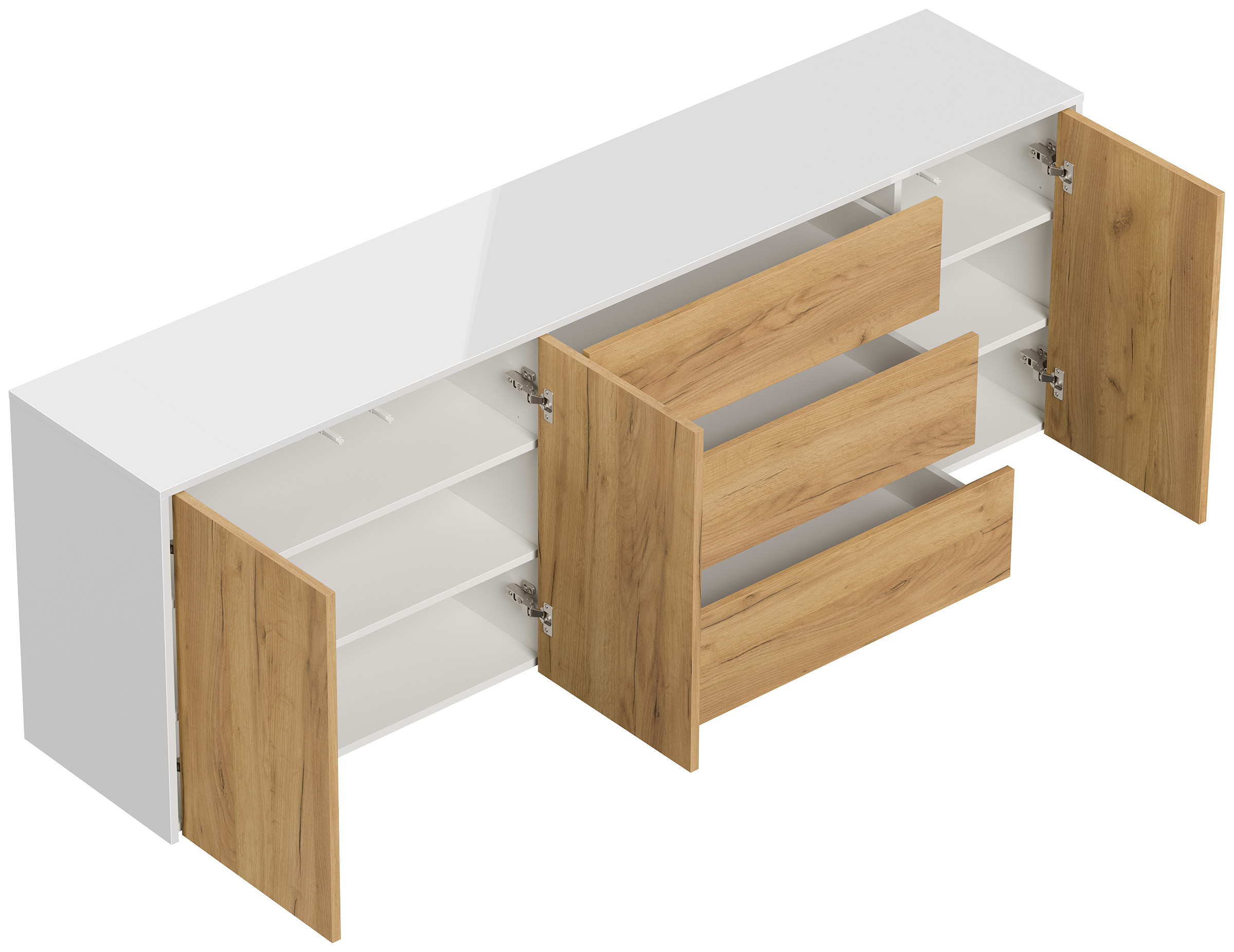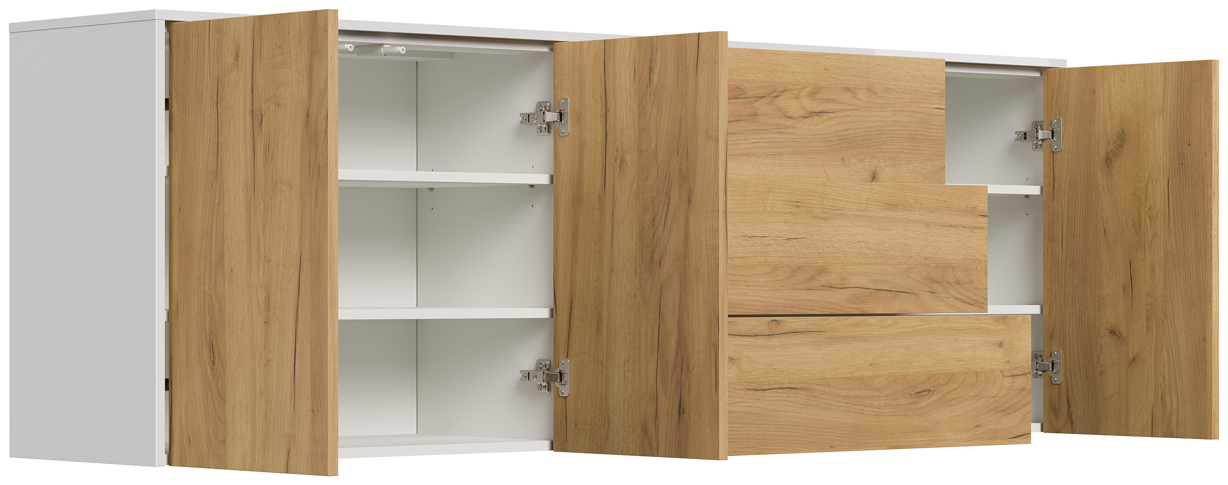 Sideboard Silia B hängend 200cm 3 Türen 3 Pushauszüge Weiß Hgl Eiche