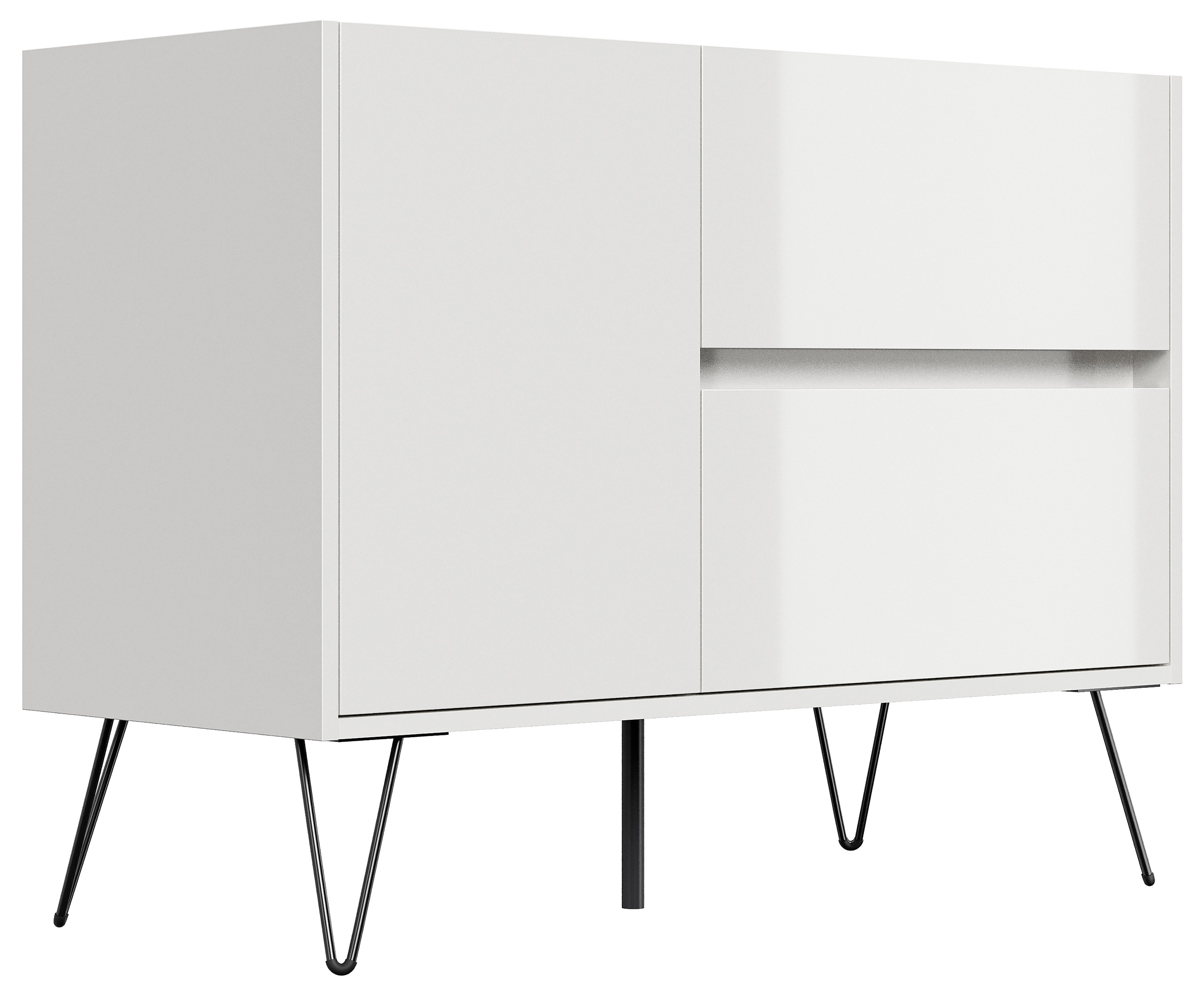 Sideboard Yako 100cm 2 SoftClose 1 Tür Weiß/Eiche Top