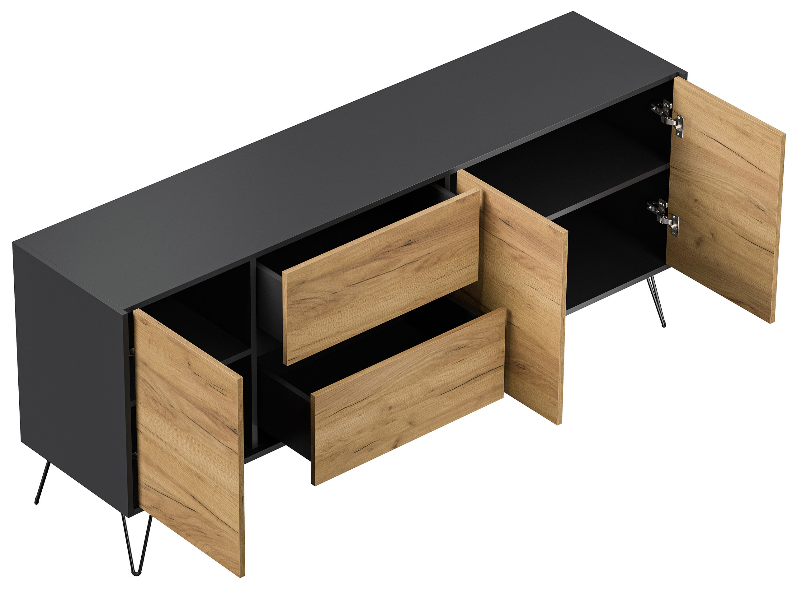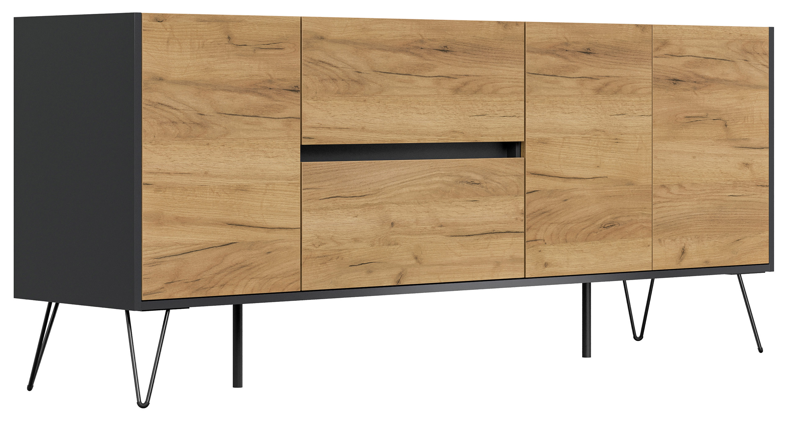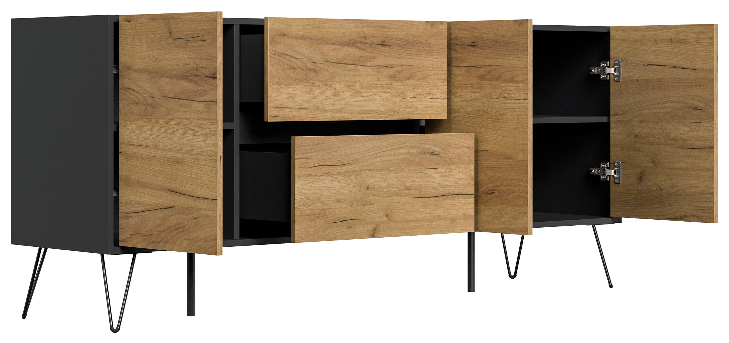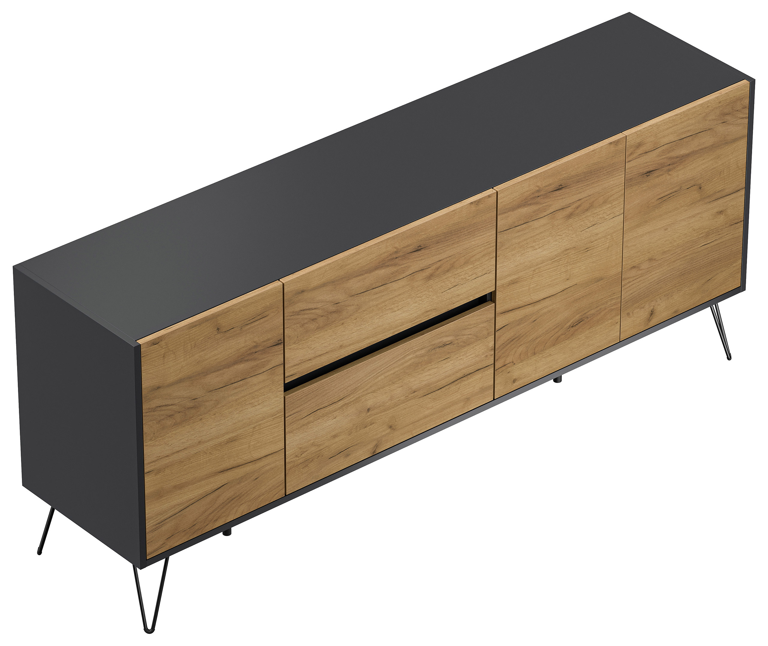 Sideboard Yako 180cm 2 SoftClose 3 Türen Grafit/Eiche Front