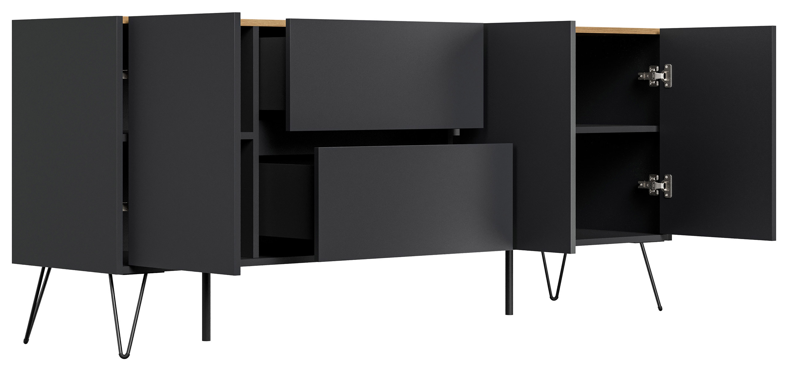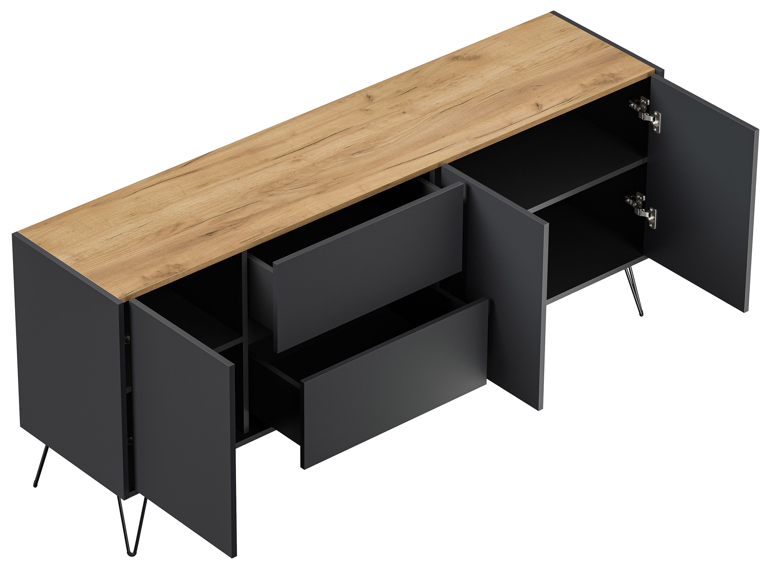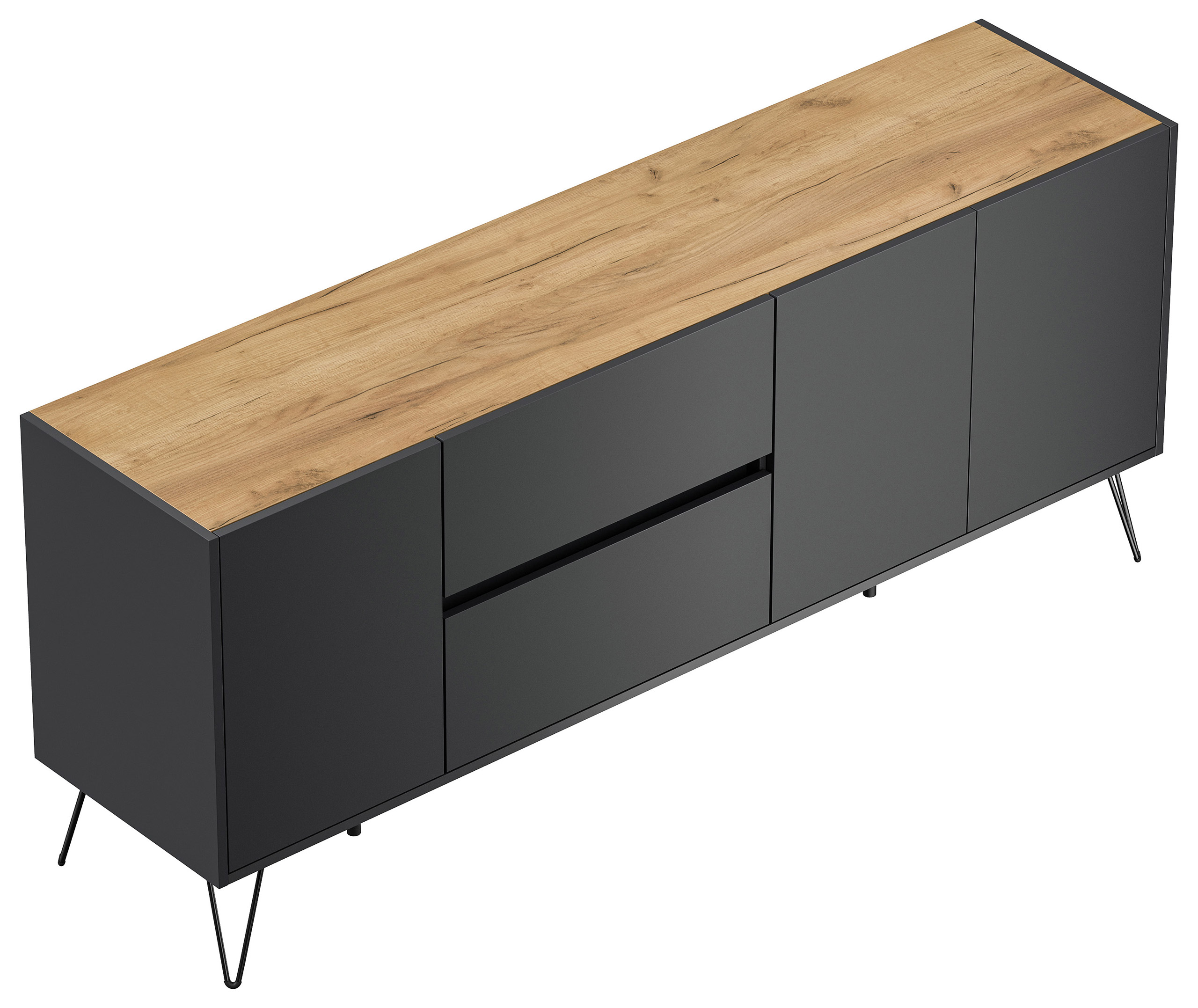 Sideboard Yako 180cm 2 SoftClose 3 Türen Grafit/Eiche Top