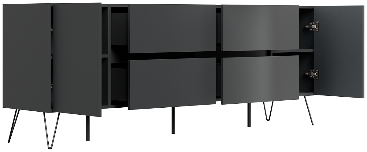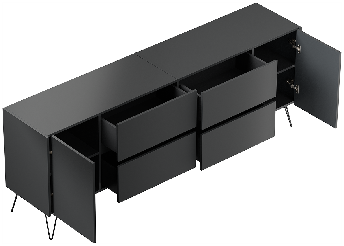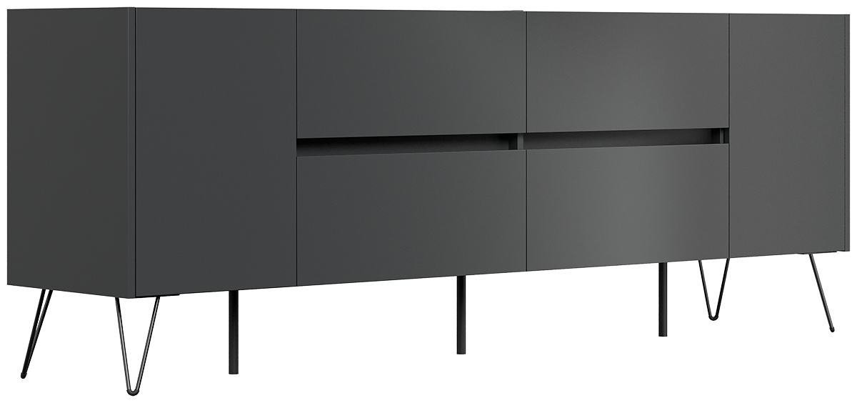Sideboard Yako 200cm 2 Türen 4 Schubladen Grafit