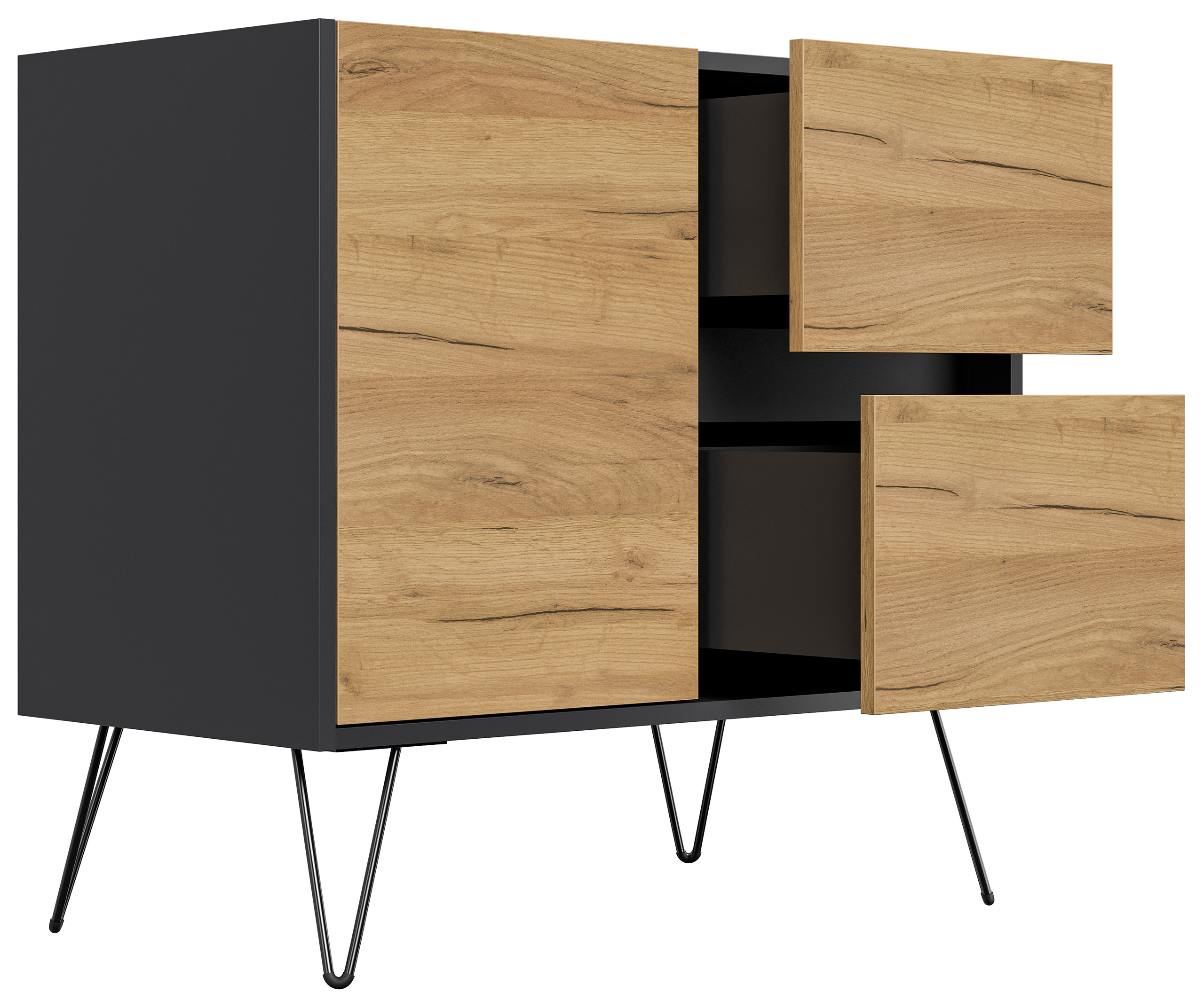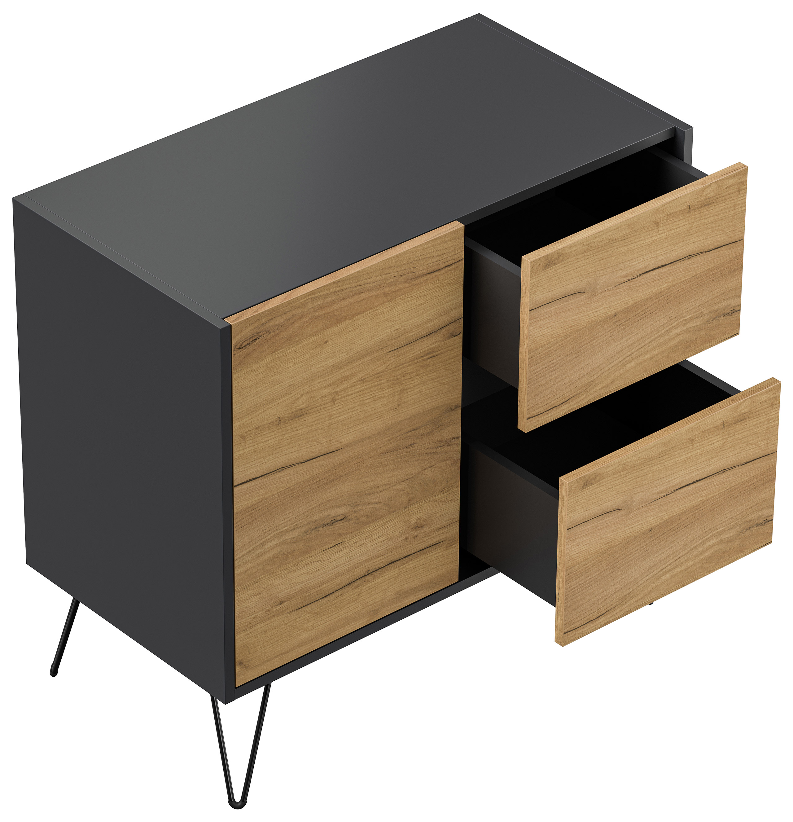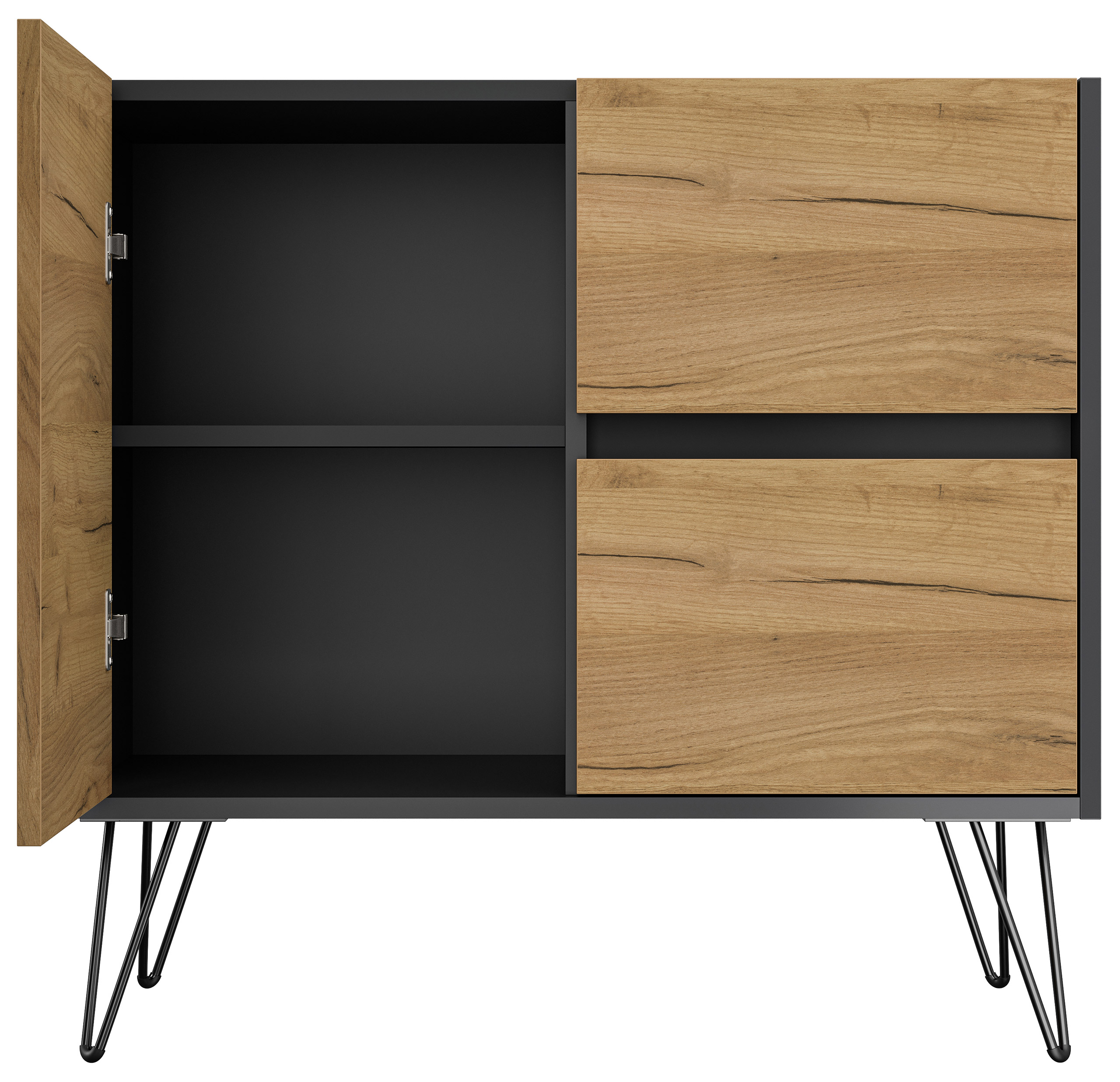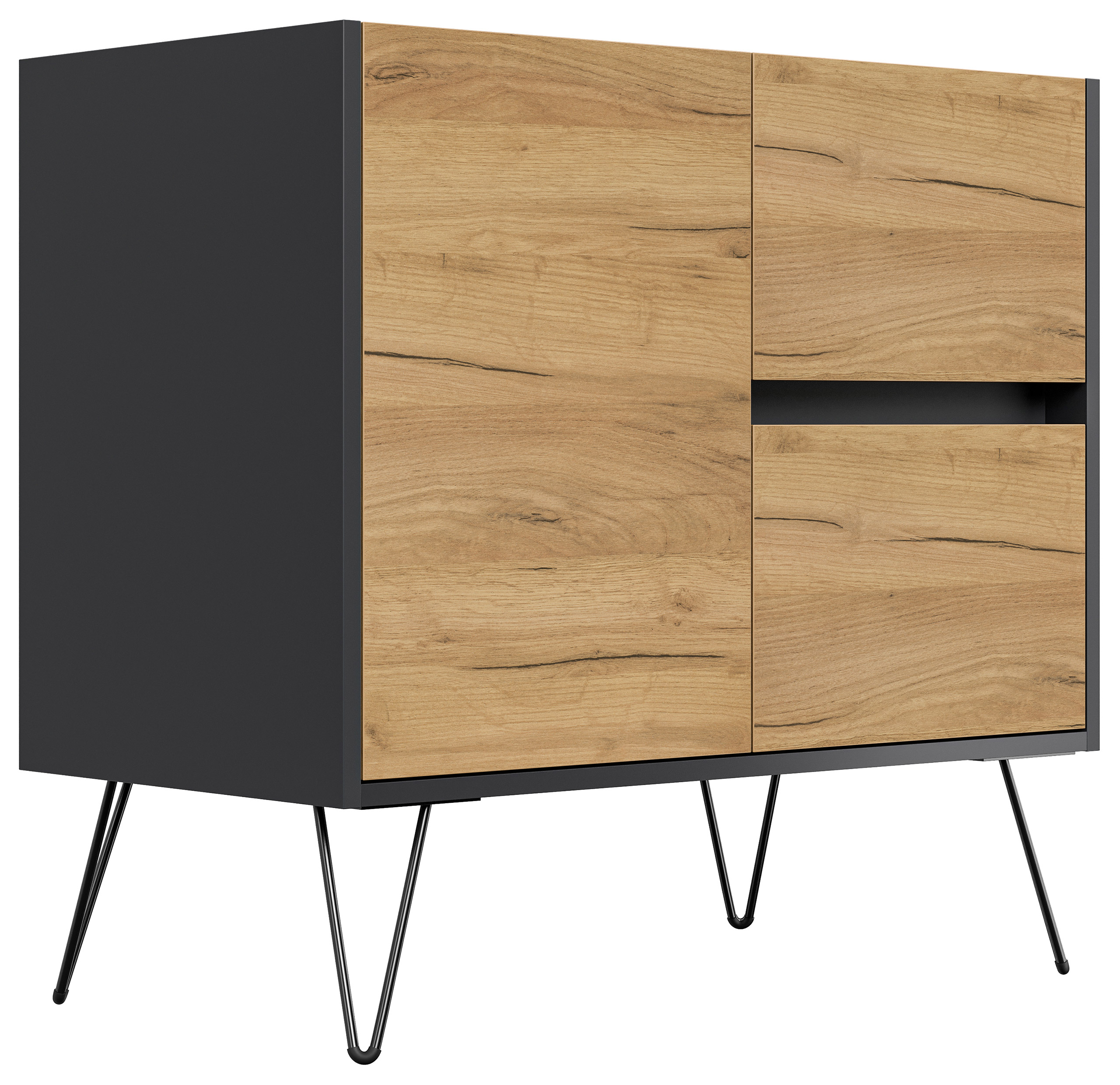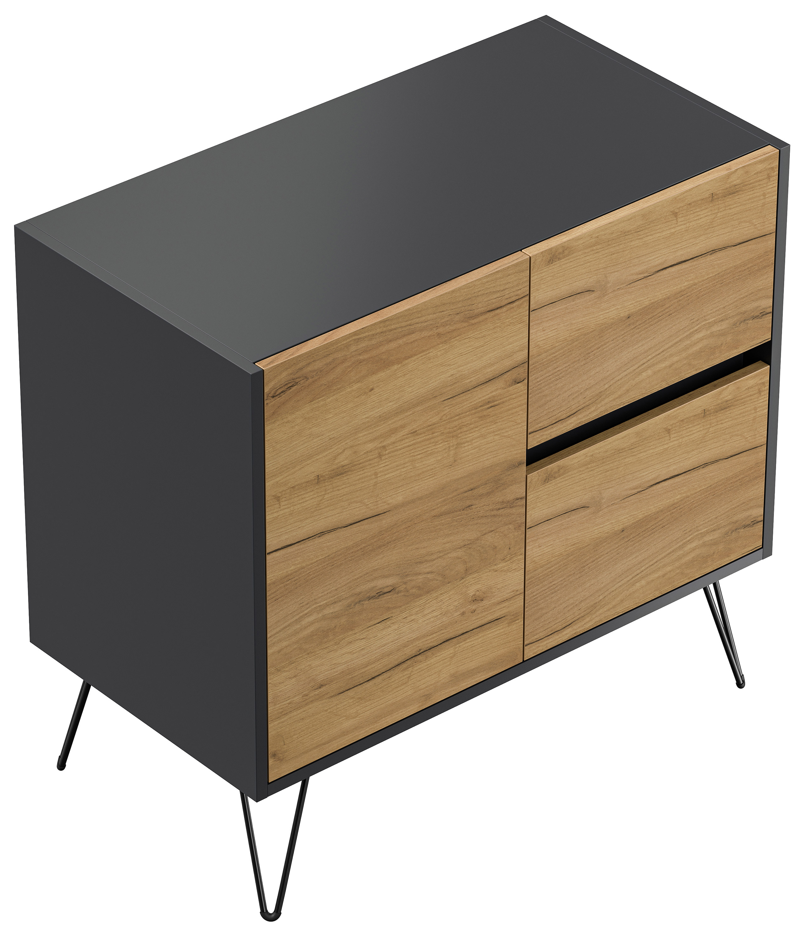 Sideboard Yako 80cm 2 SoftClose 1 Tür Grafit/Eiche Front