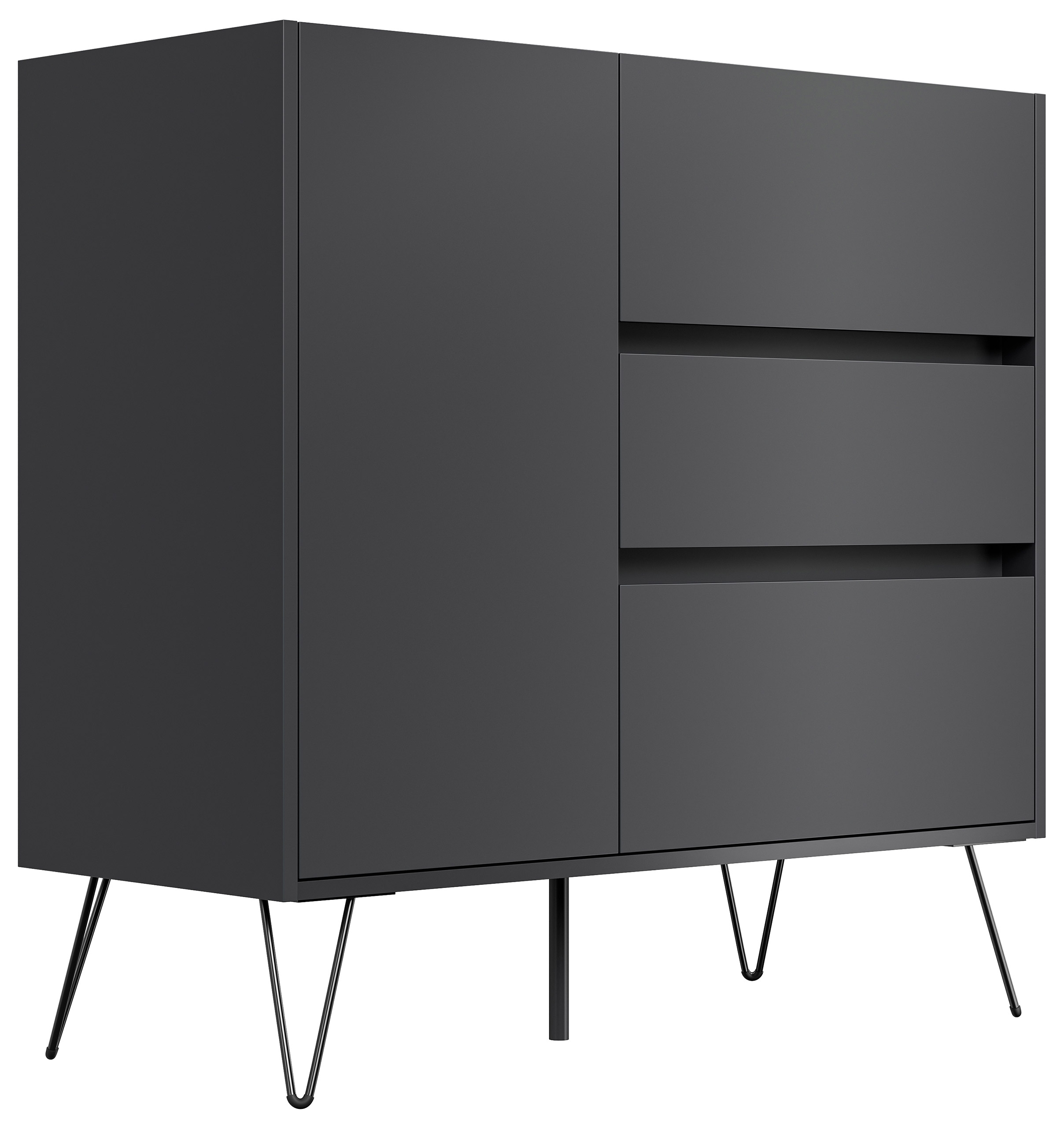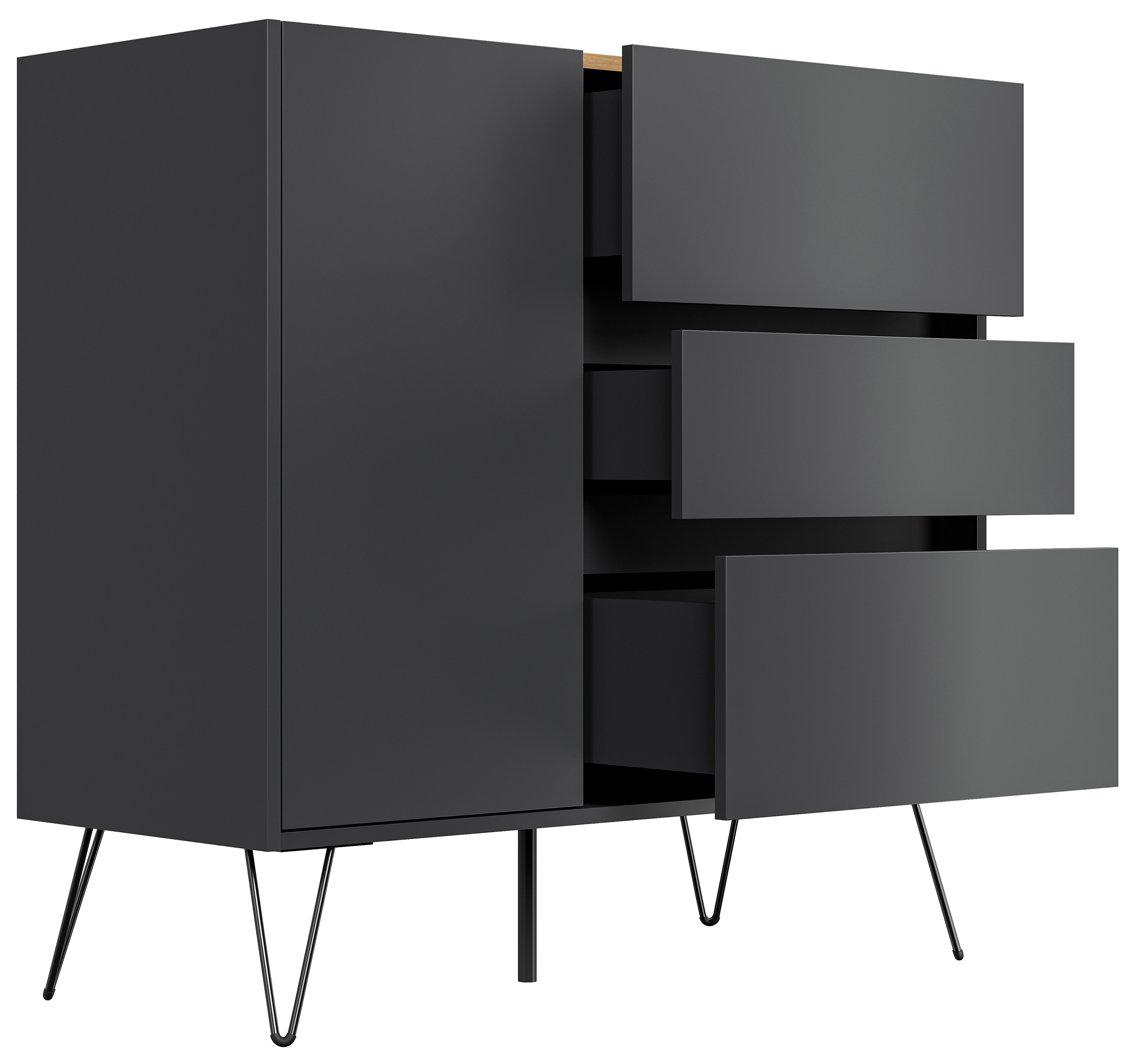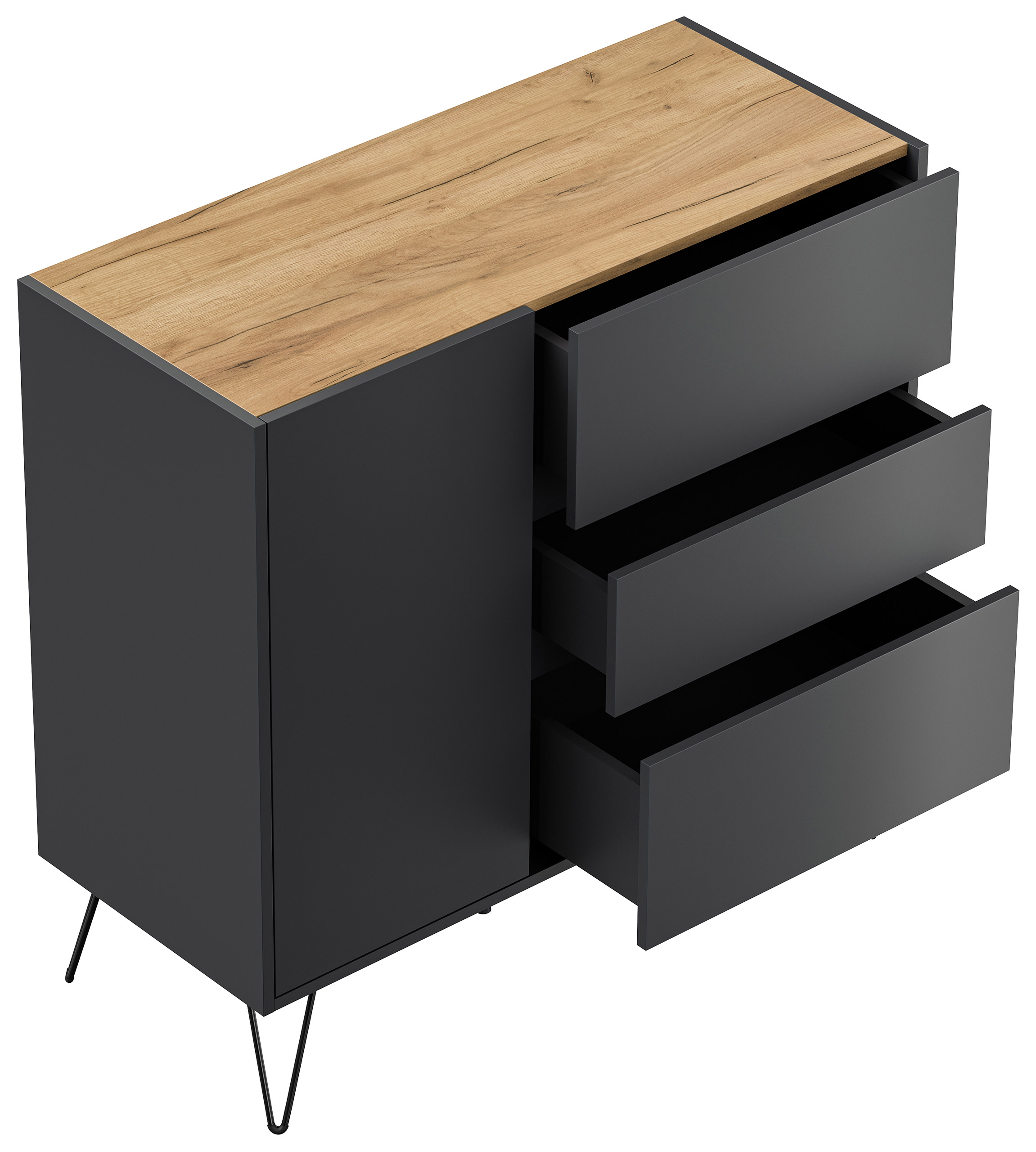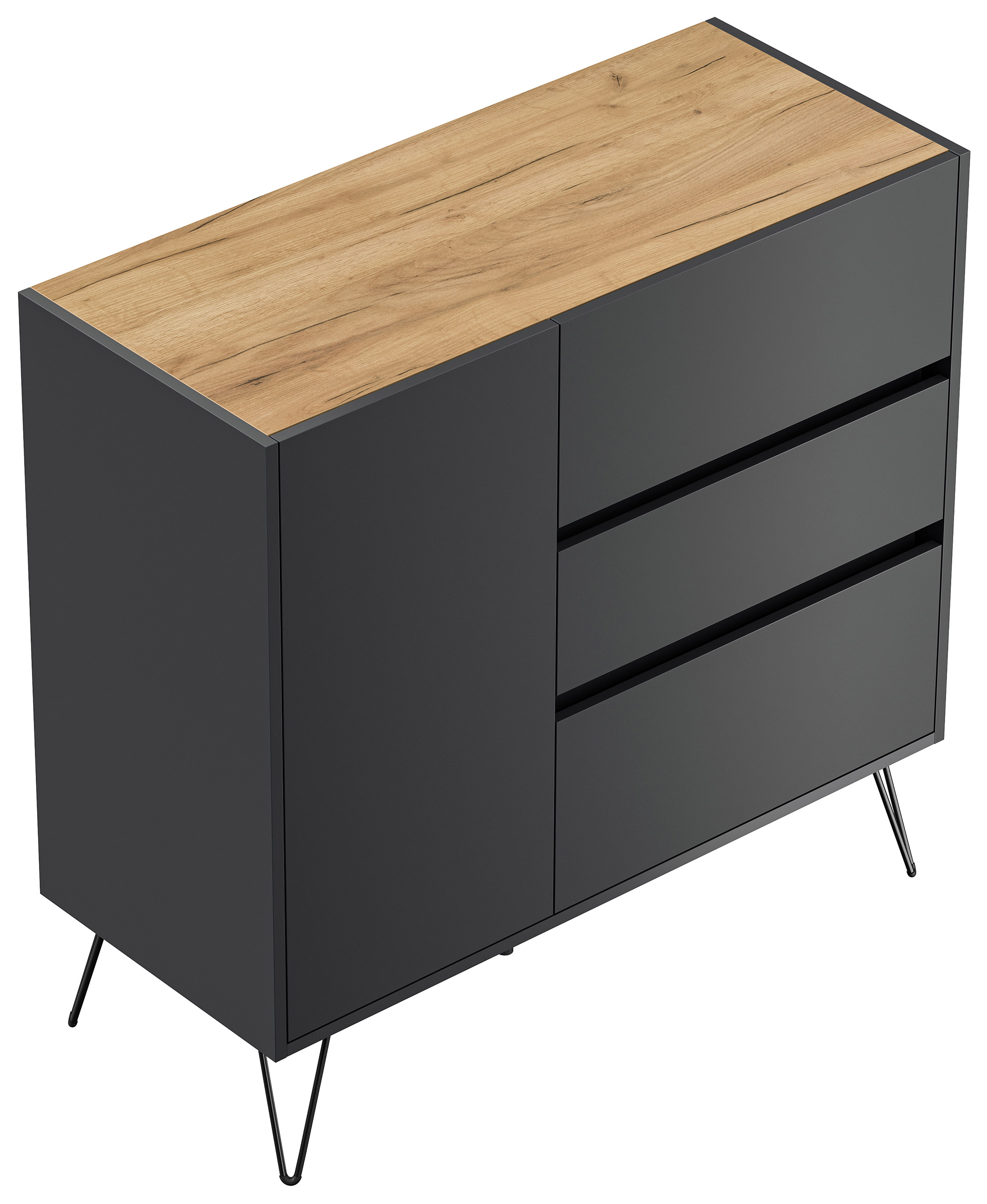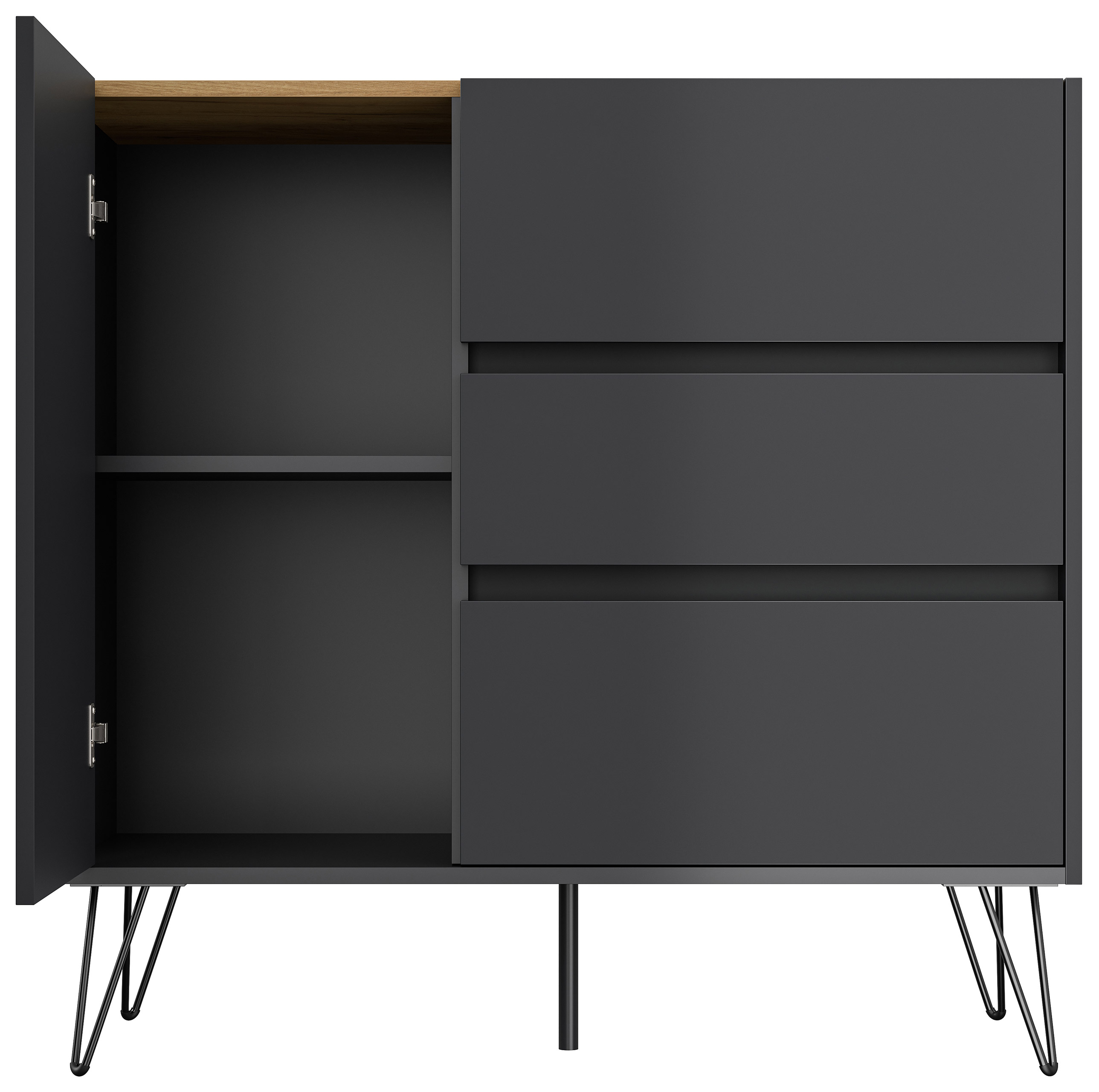 Sideboard Yako XL 100cm 3 SoftClose 1 Tür Grafit/Eiche Top