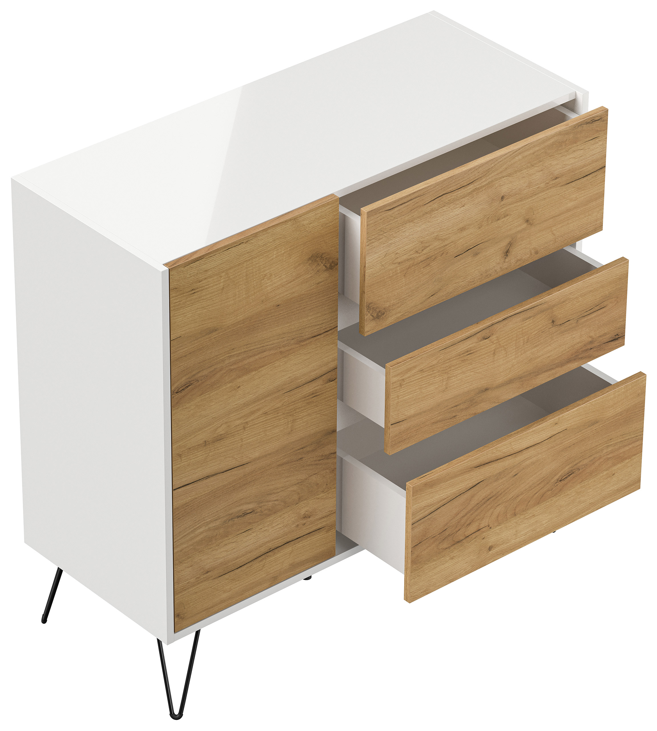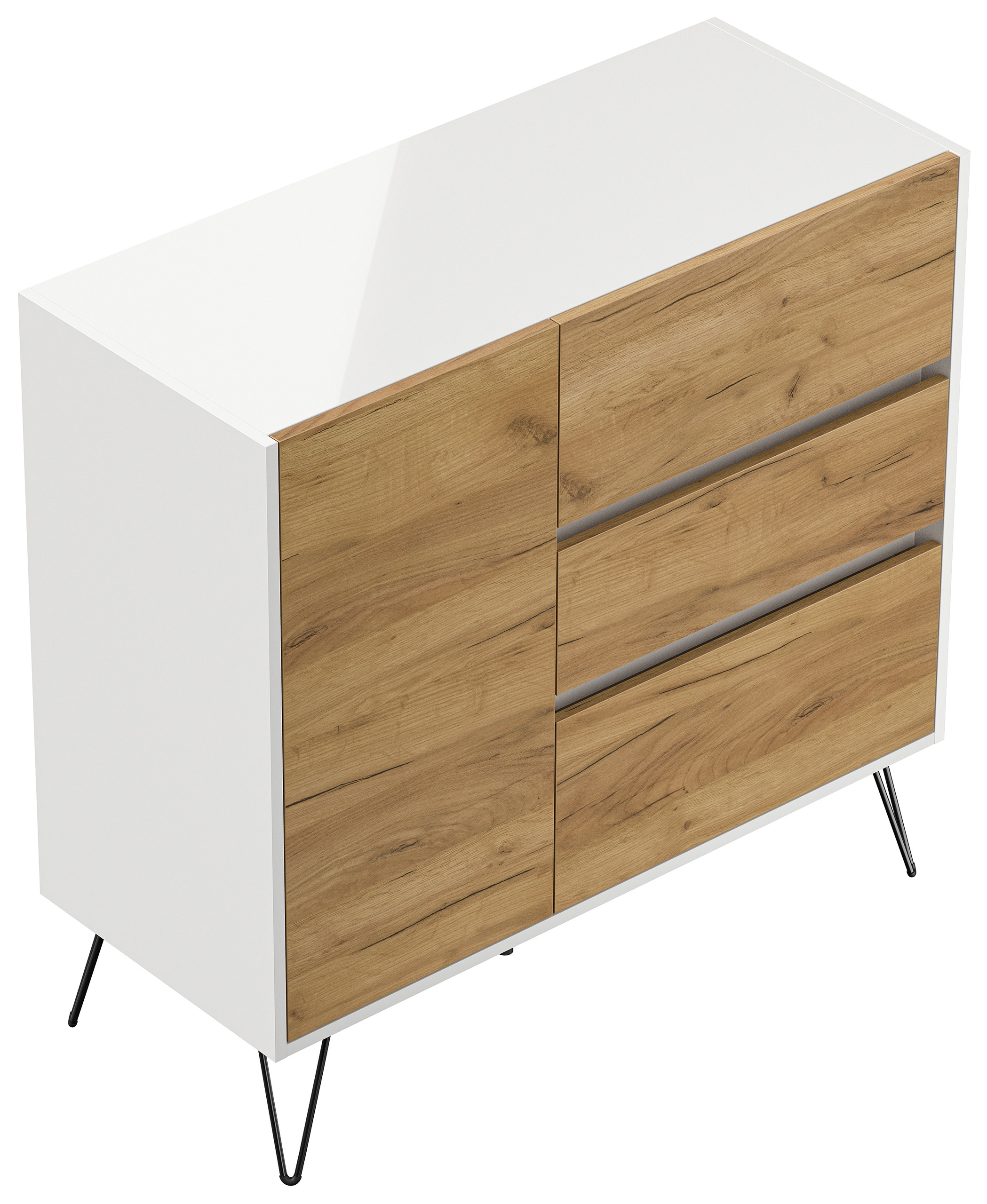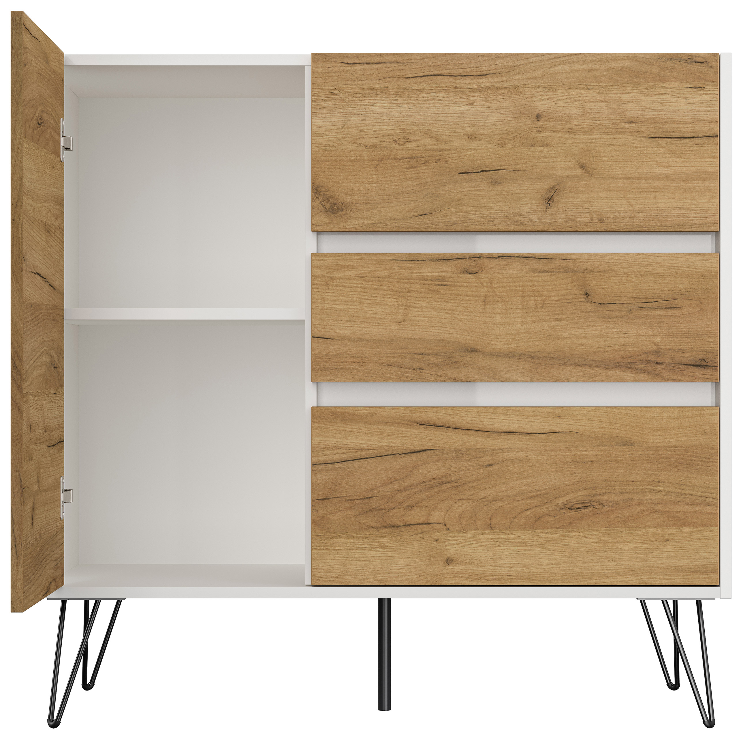 Sideboard Yako XL 100cm 3 SoftClose 1 Tür Weiß/Eiche Front