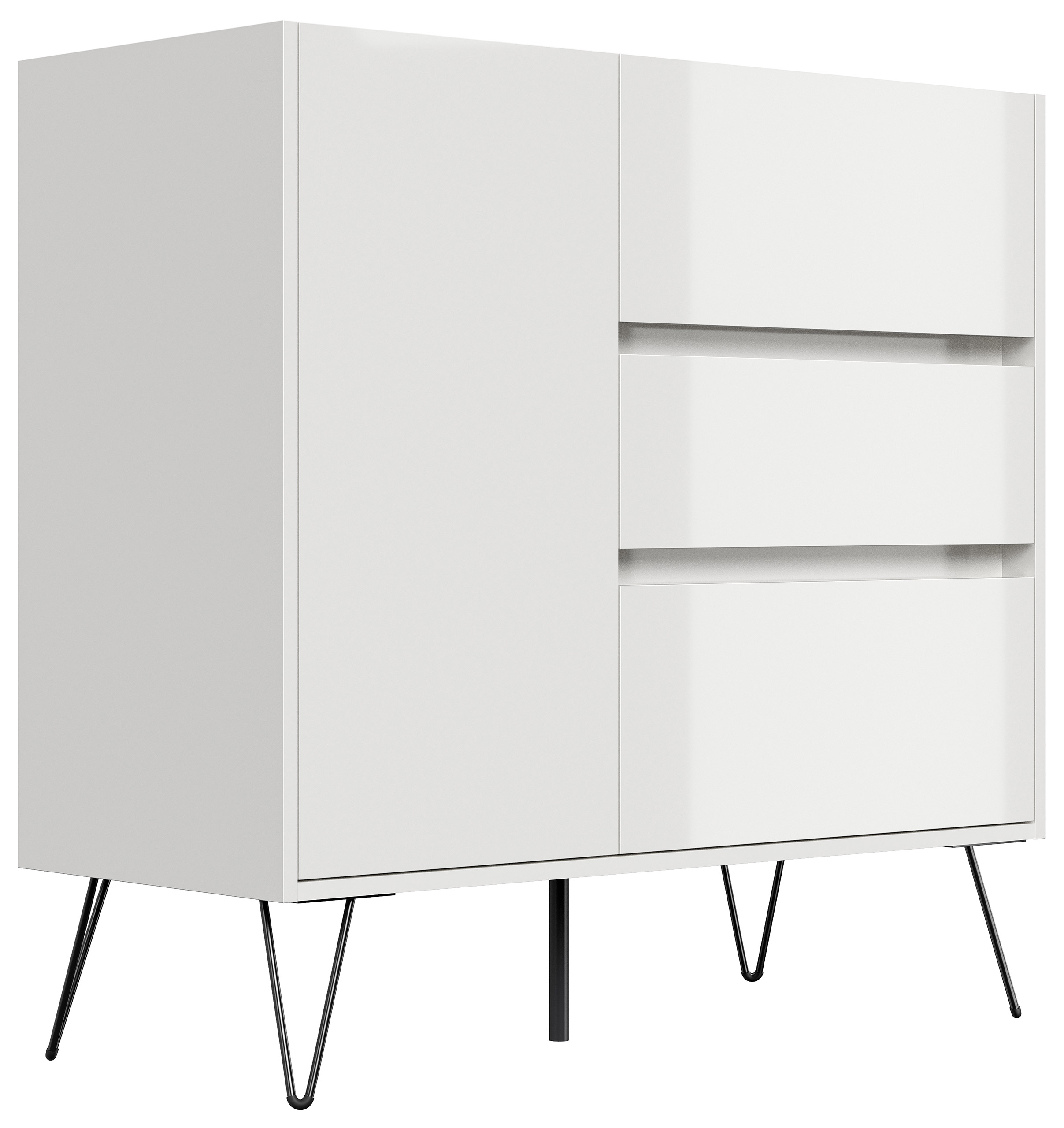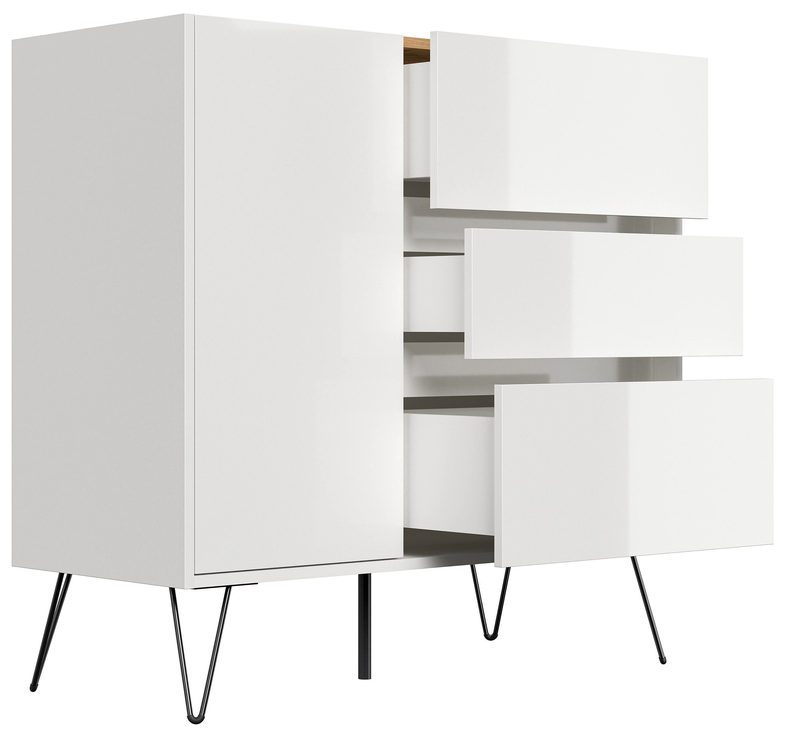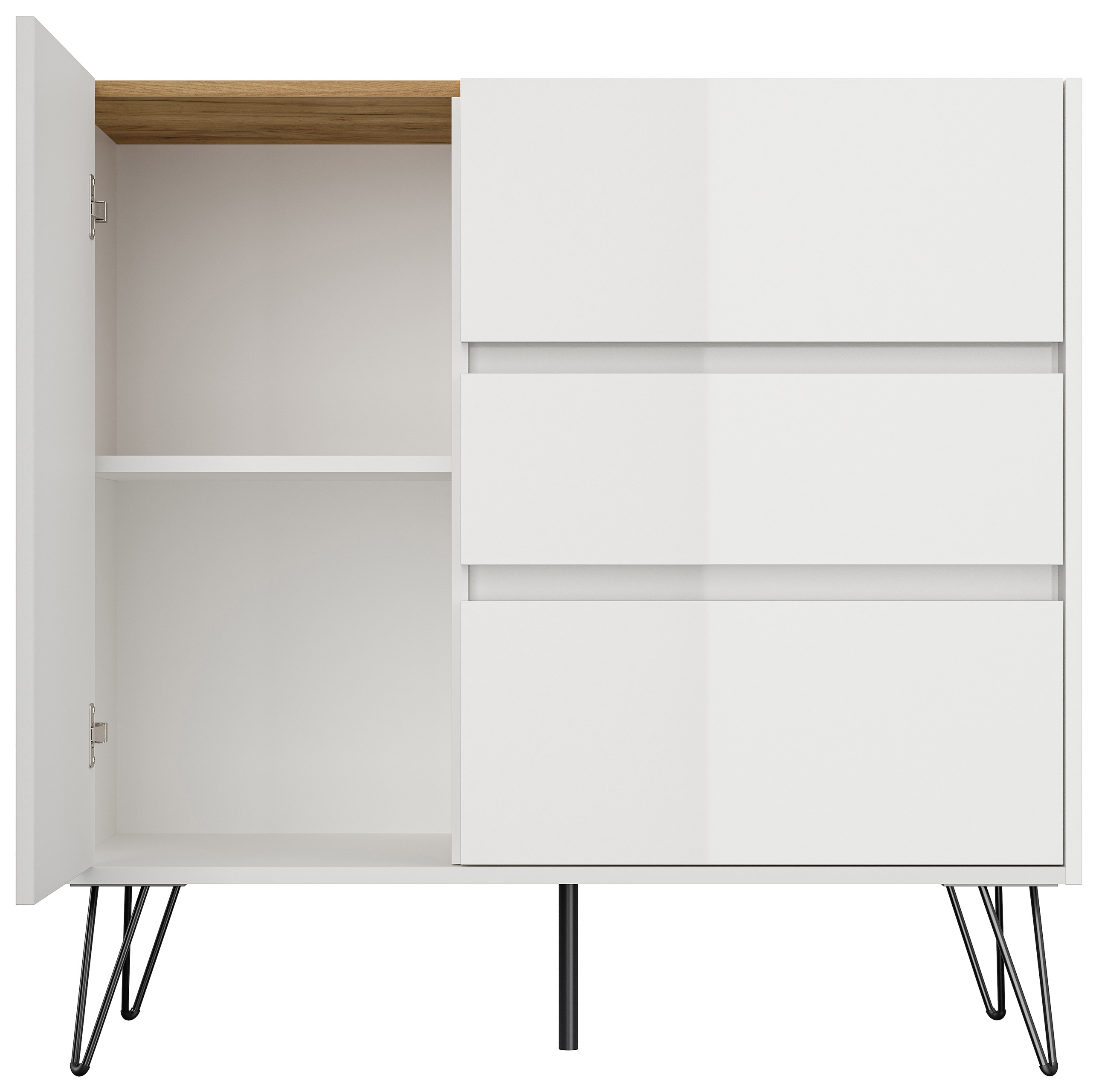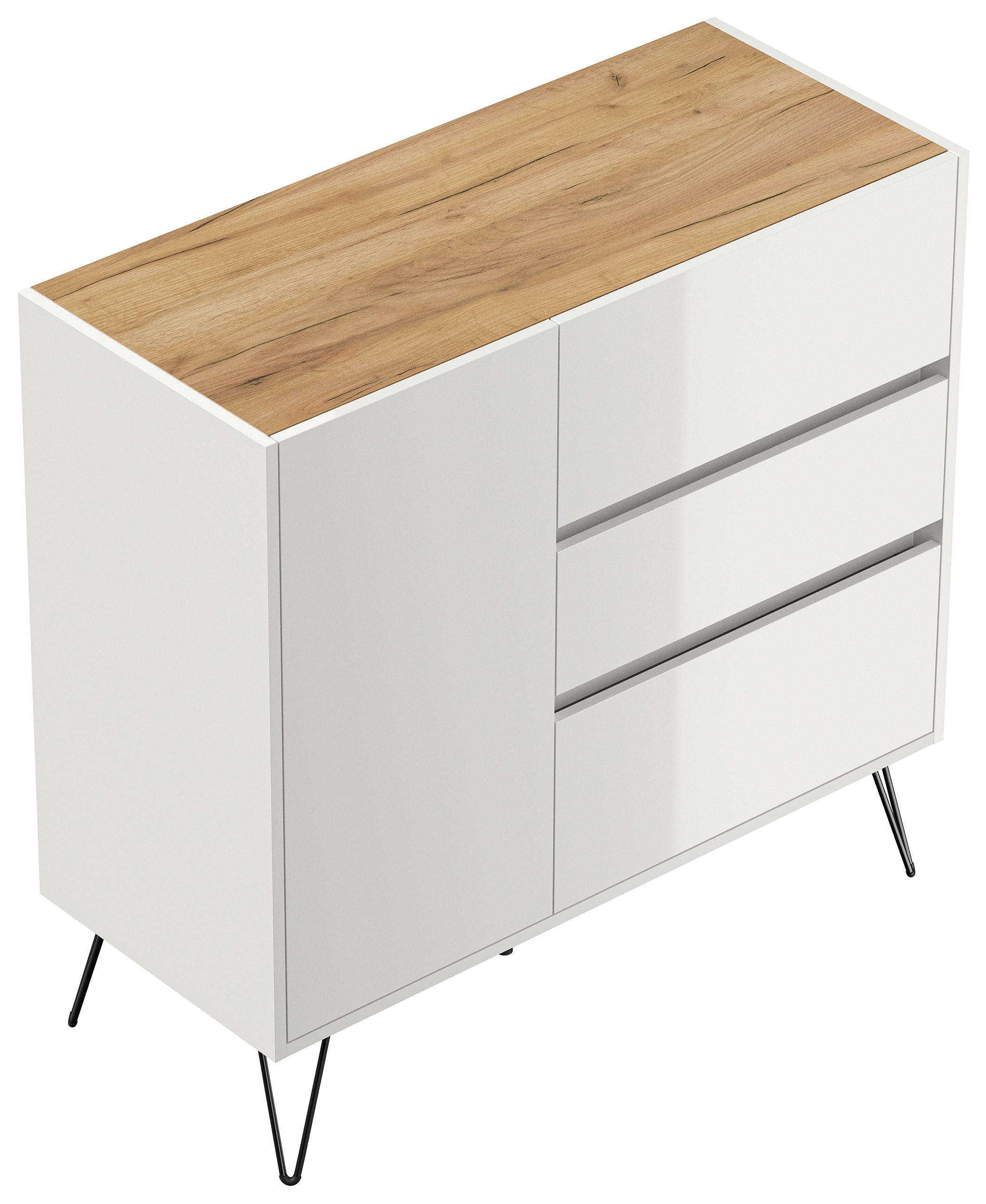 Sideboard Yako XL 100cm 3 SoftClose 1 Tür Weiß/Eiche Top