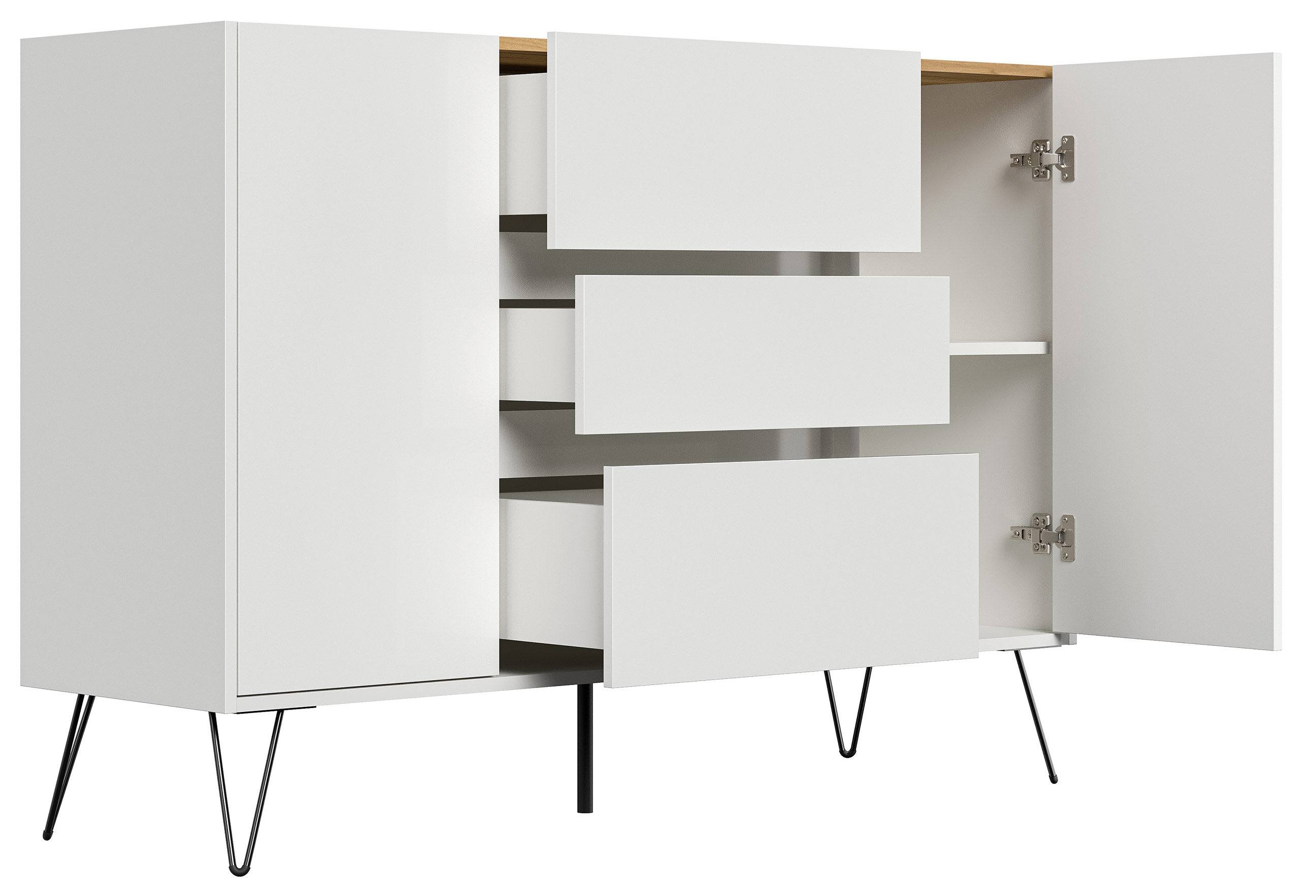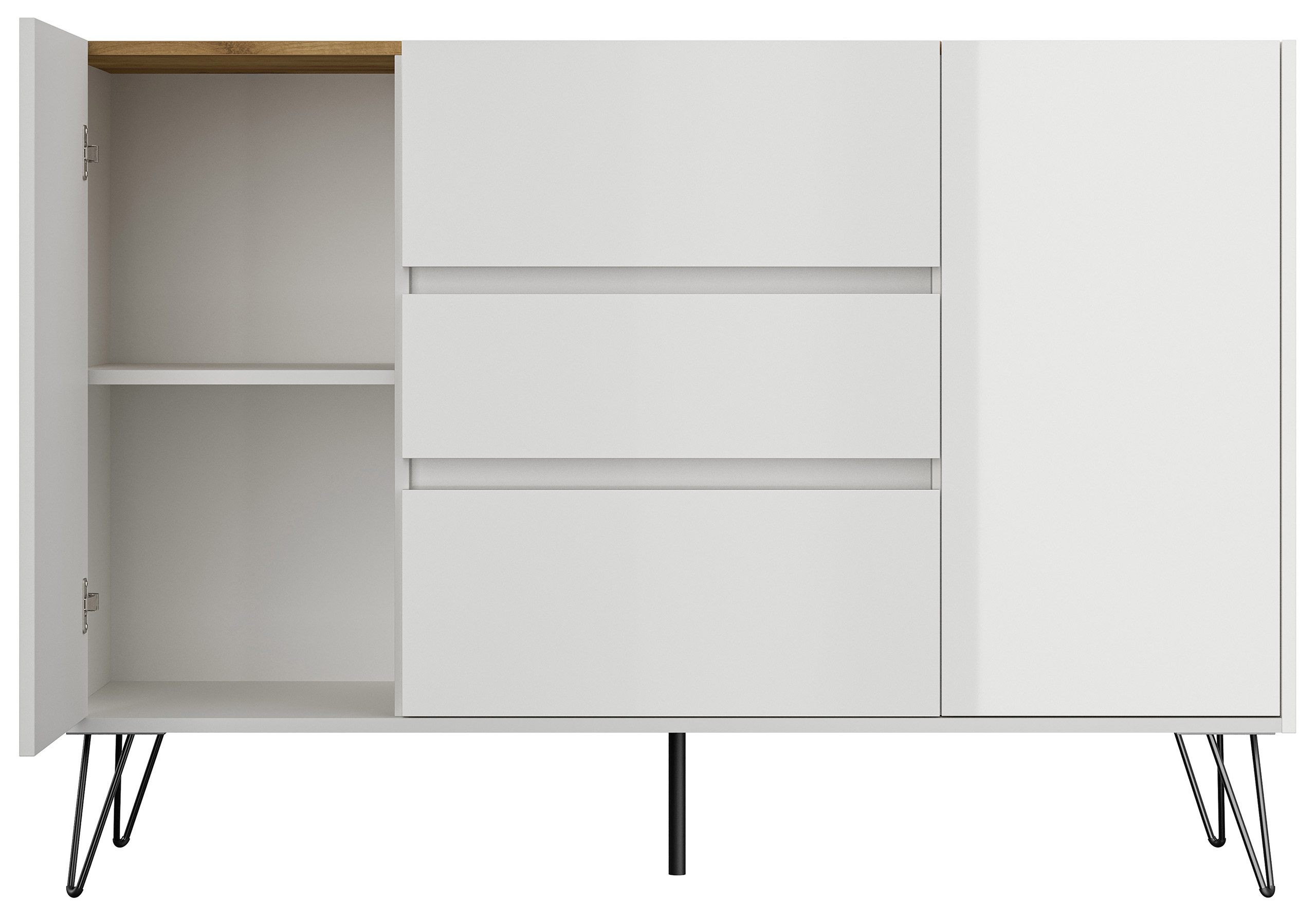 Sideboard Yako XL 140cm 3 SoftClose 2 Türen Weiß/Eiche Top