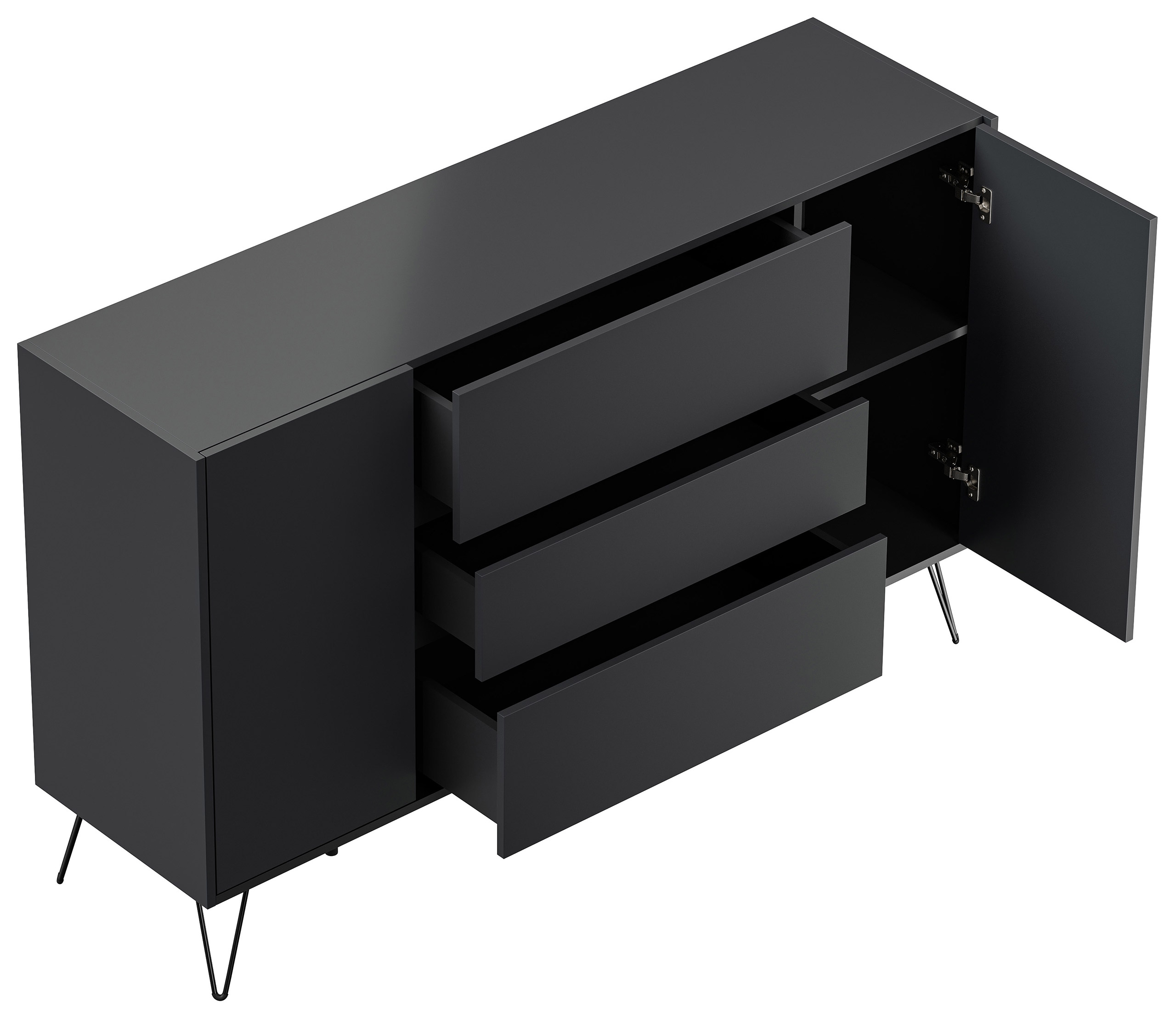 Sideboard Yako XL 155cm 3 SoftClose 2 Türen Grafit