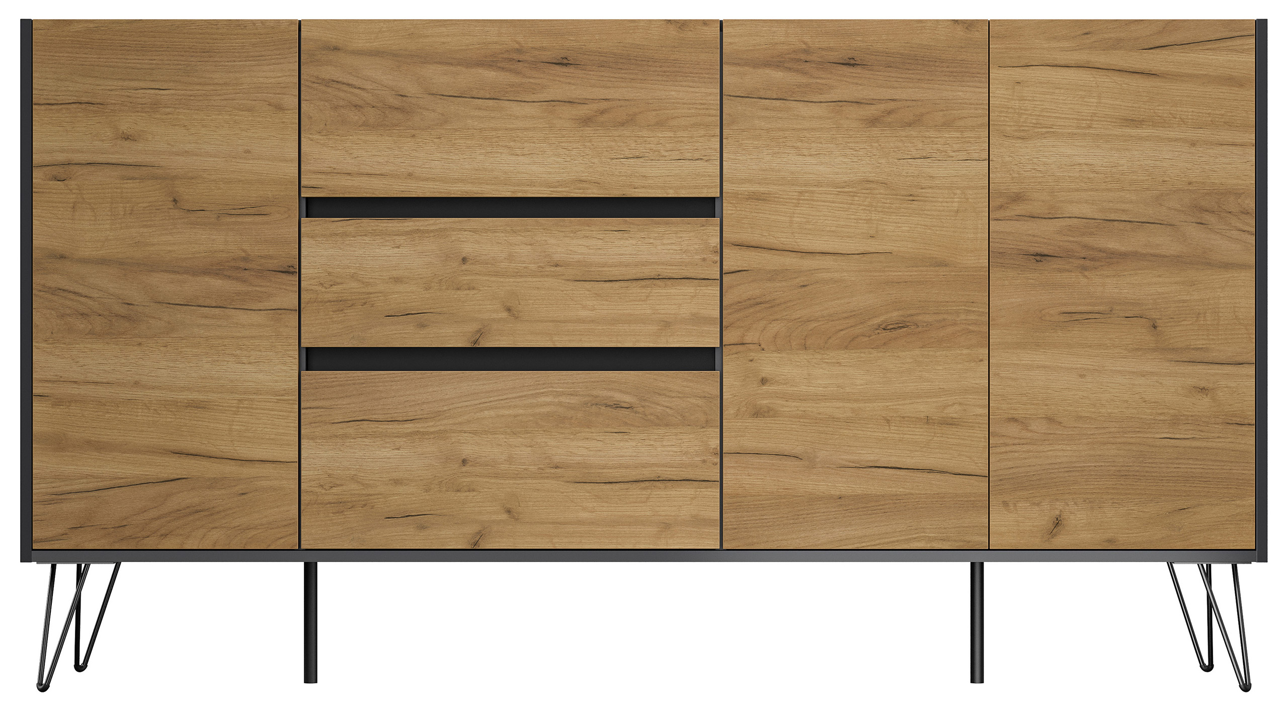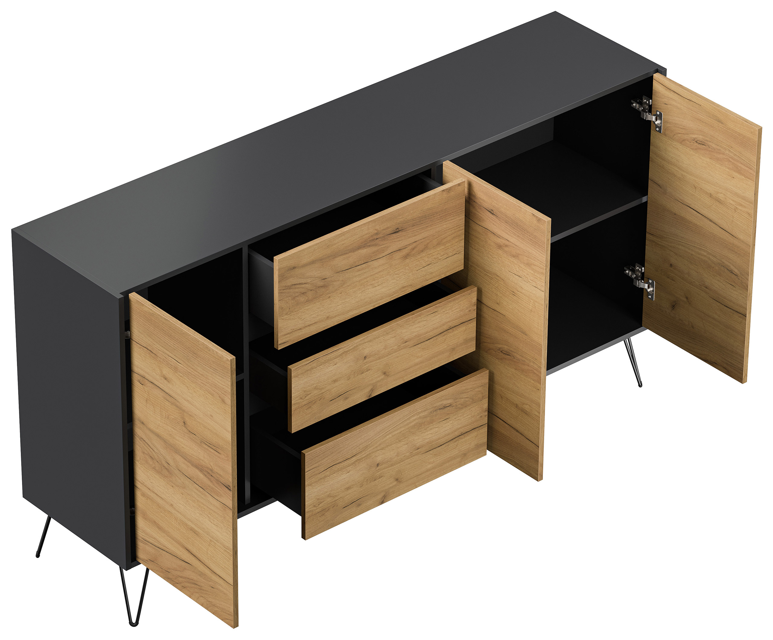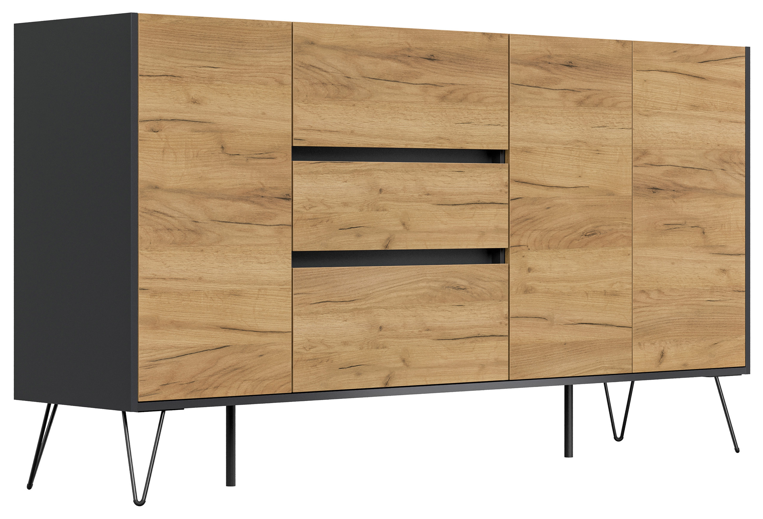 Sideboard Yako XL 180cm 3 SoftClose 3 Türen Grafit/Eiche Front
