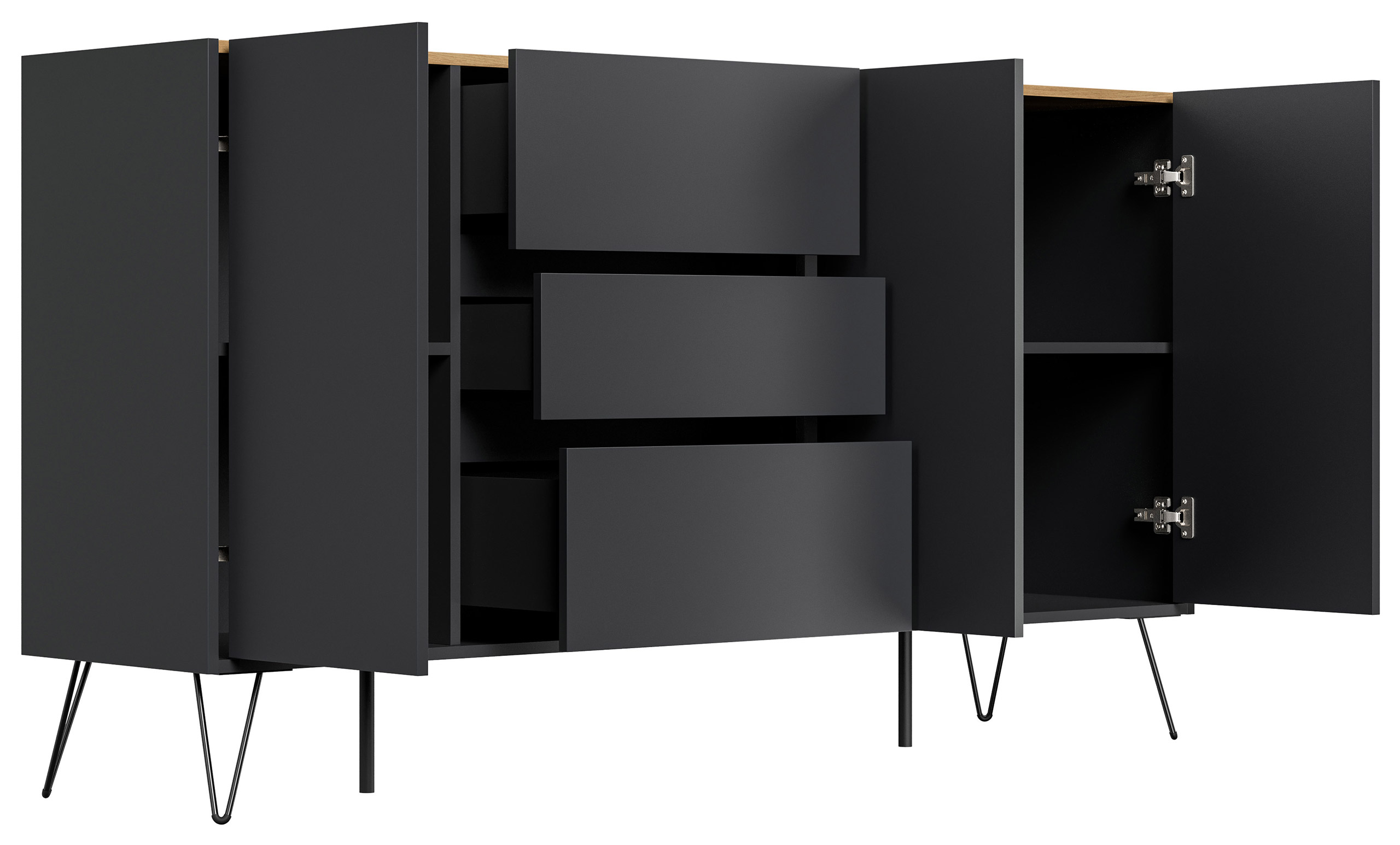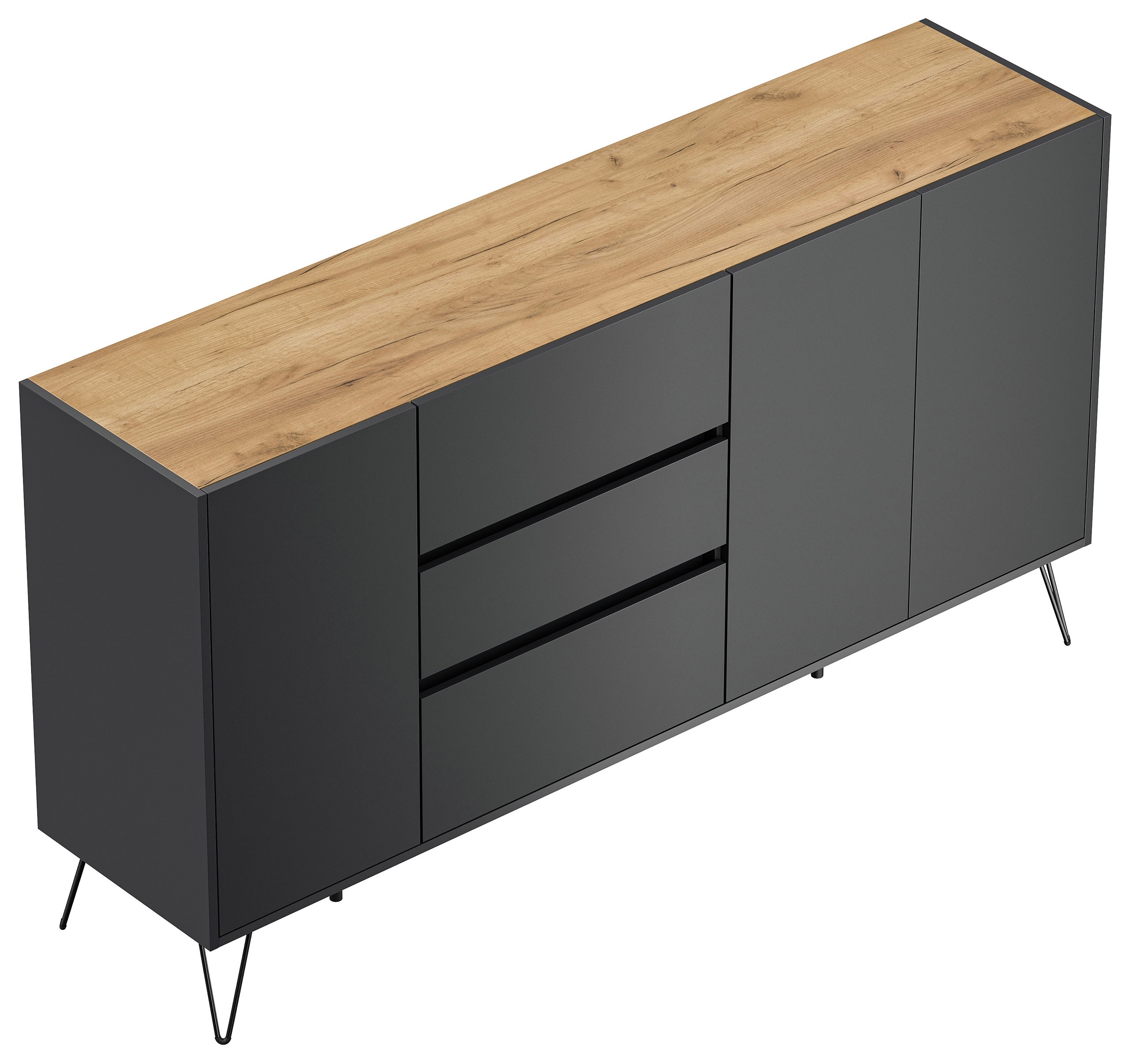 Sideboard Yako XL 180cm 3 SoftClose 3 Türen Grafit/Eiche Top