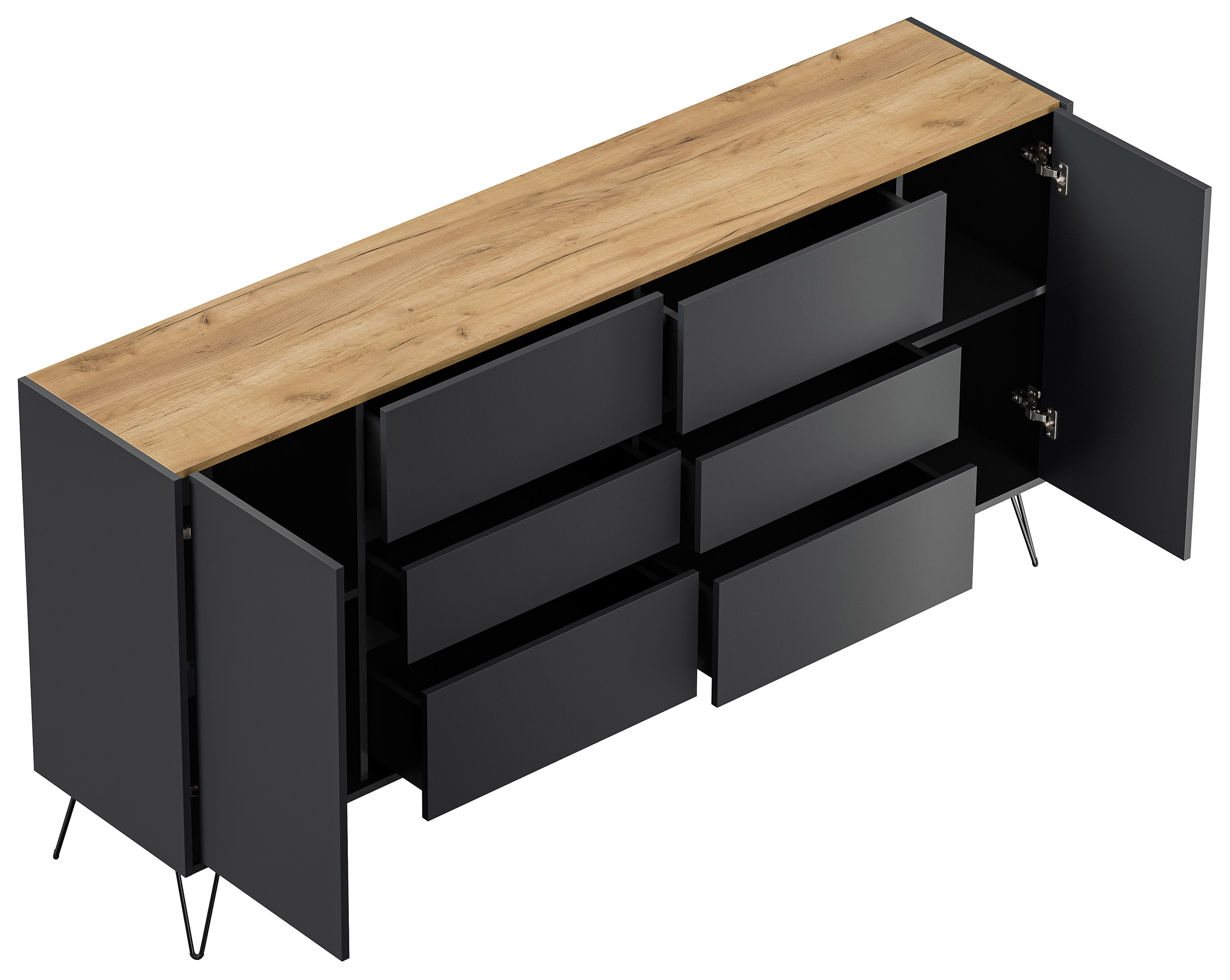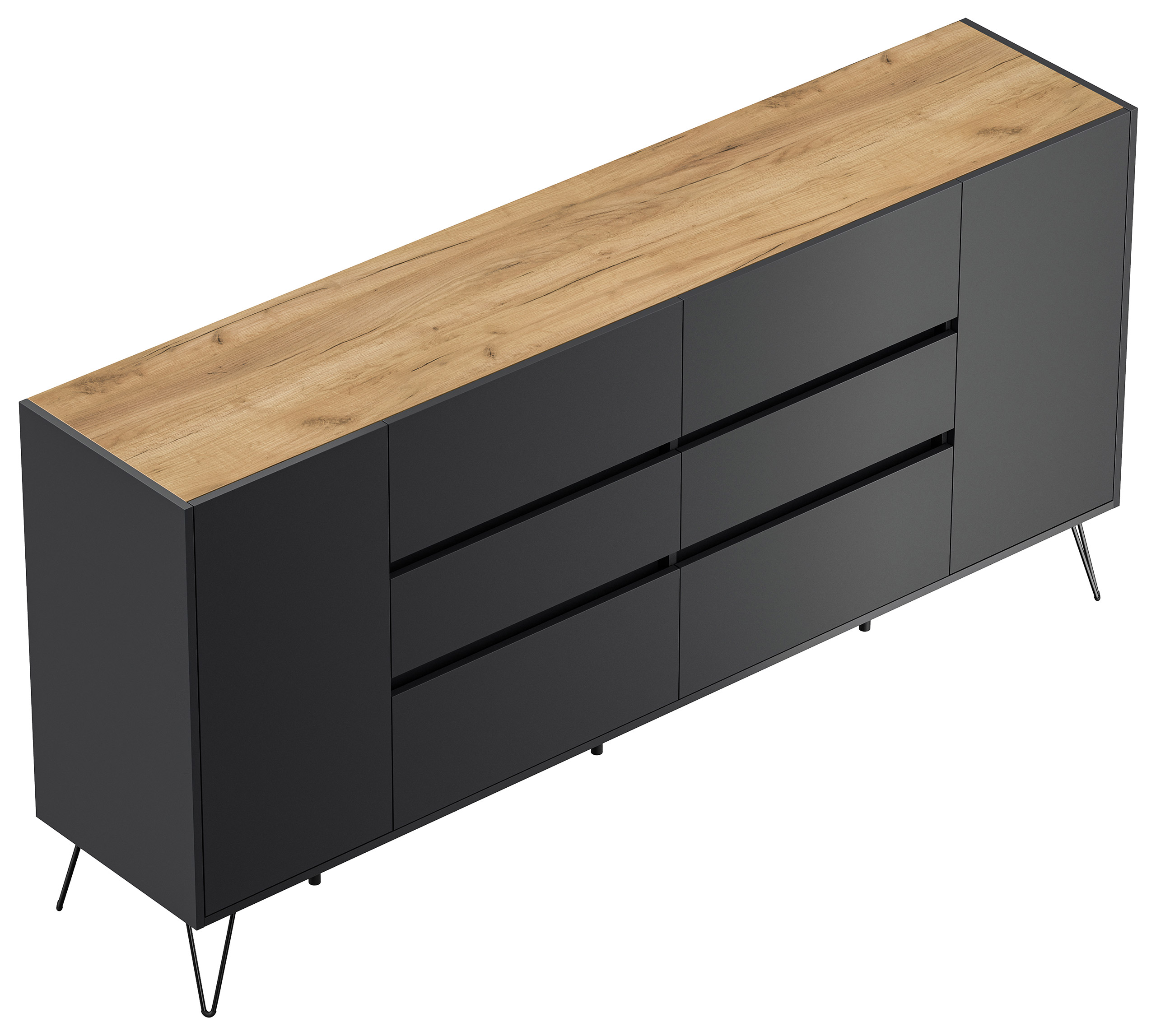 Sideboard Yako XL 200cm 6 SoftClose 2 Türen Grafit/Eiche Top