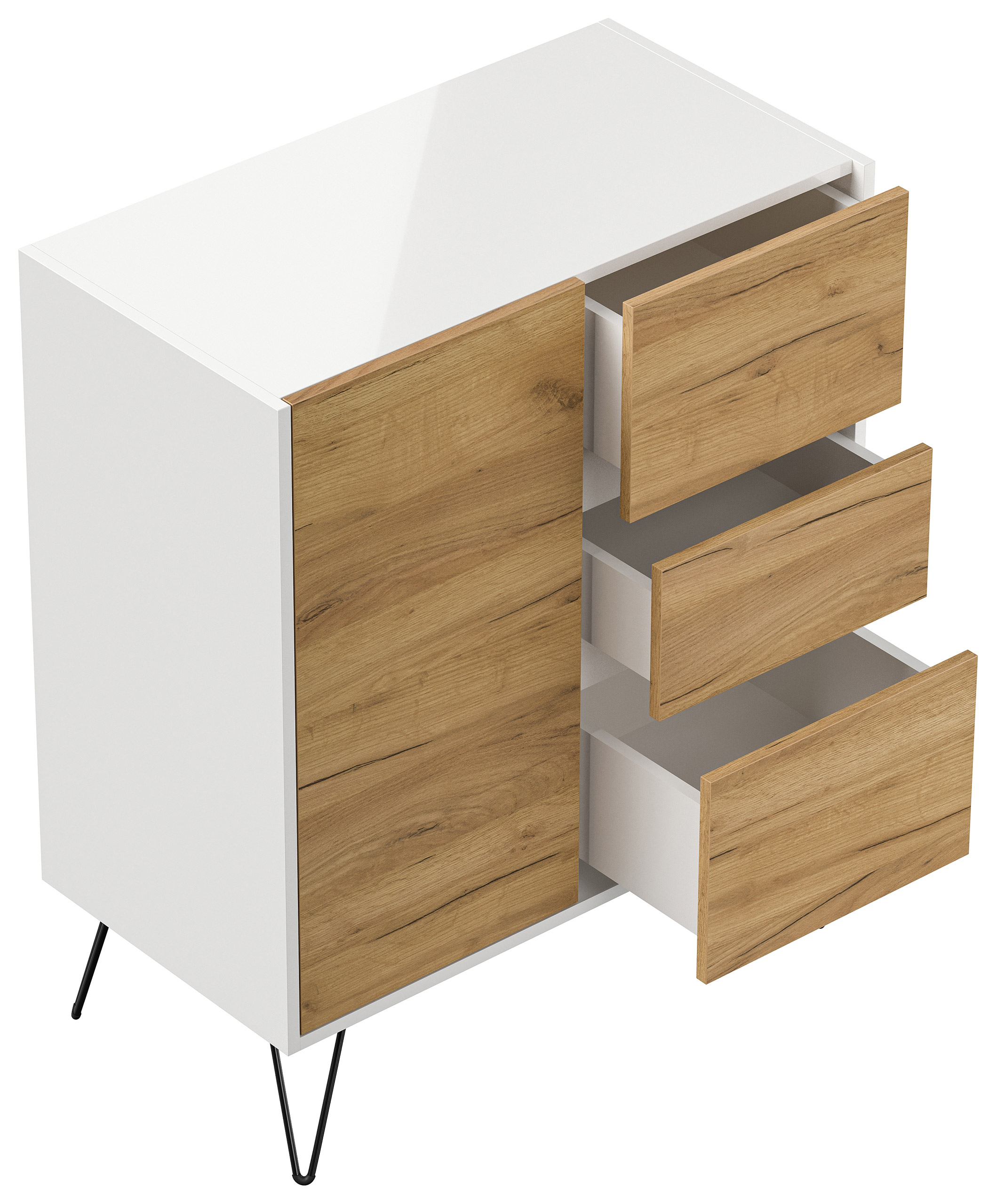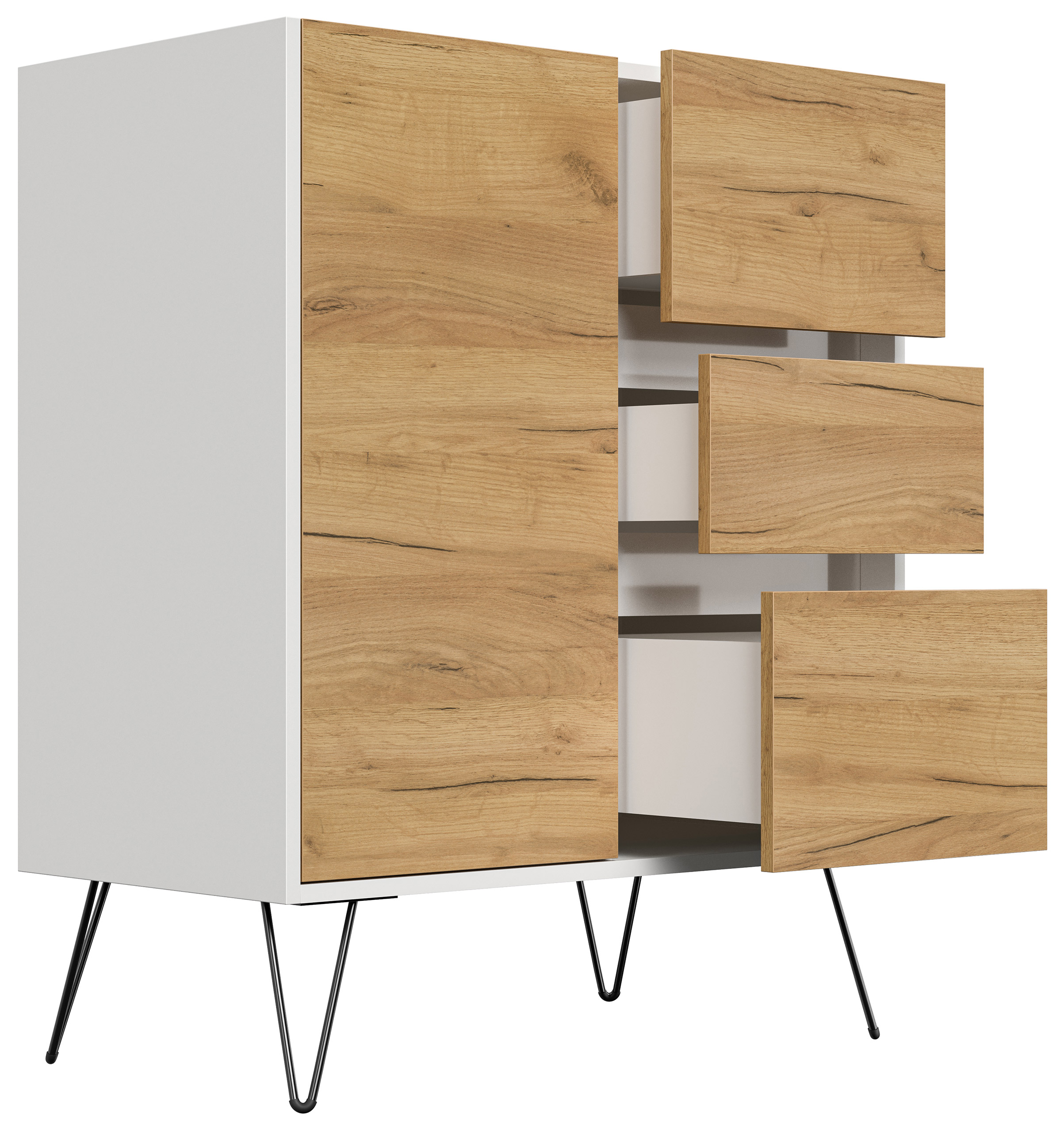 Sideboard Yako XL 80cm 3 SoftClose 1 Tür Weiß/Eiche Front