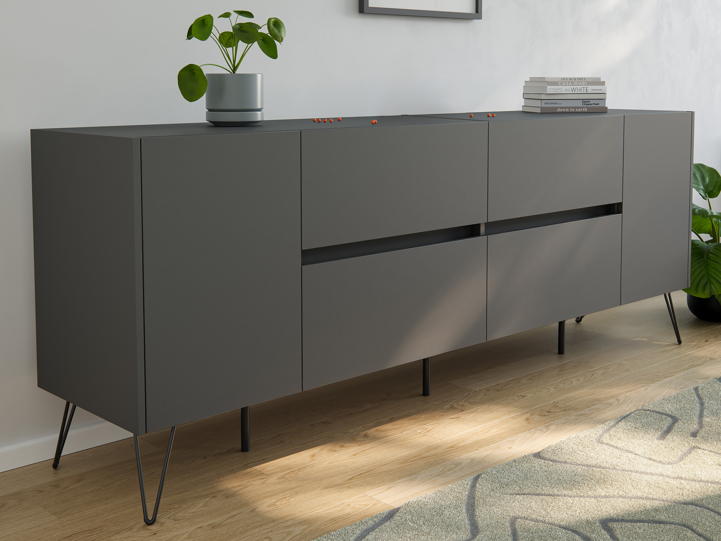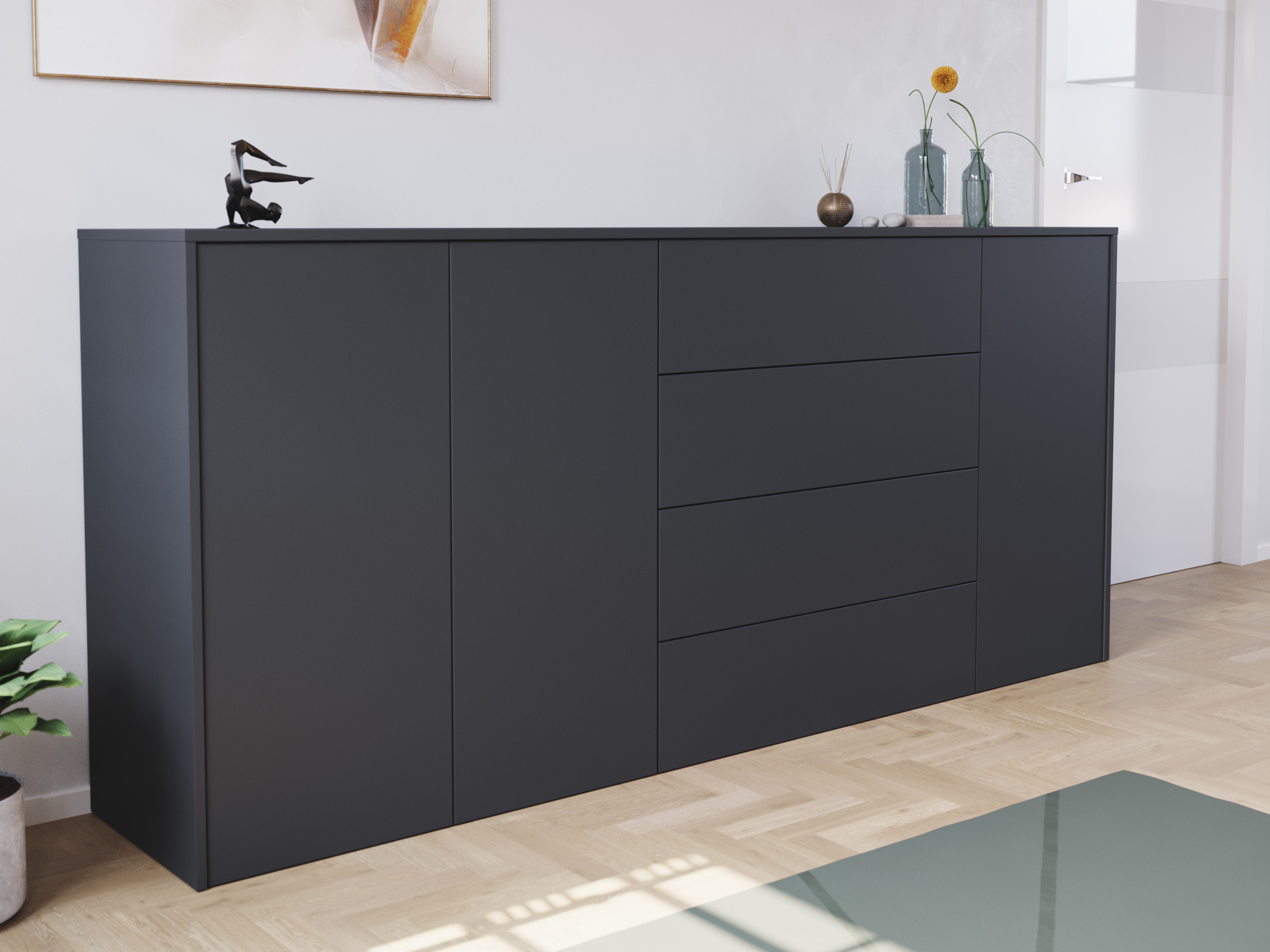 Sideboard Impulse 200cm 3 Türen 4 Pushauszüg Grafit