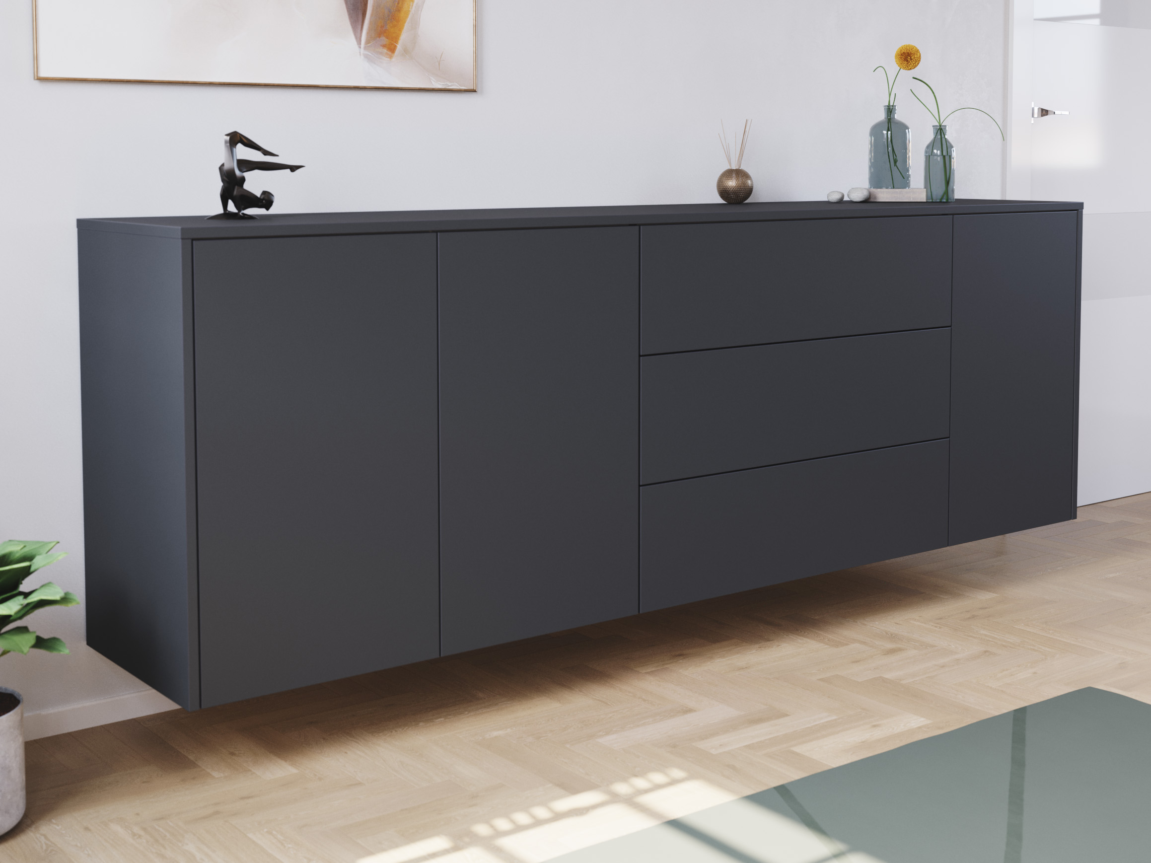 Sideboard Silia B hängend 200cm 3 Türen 3 Pushauszüge Grafit