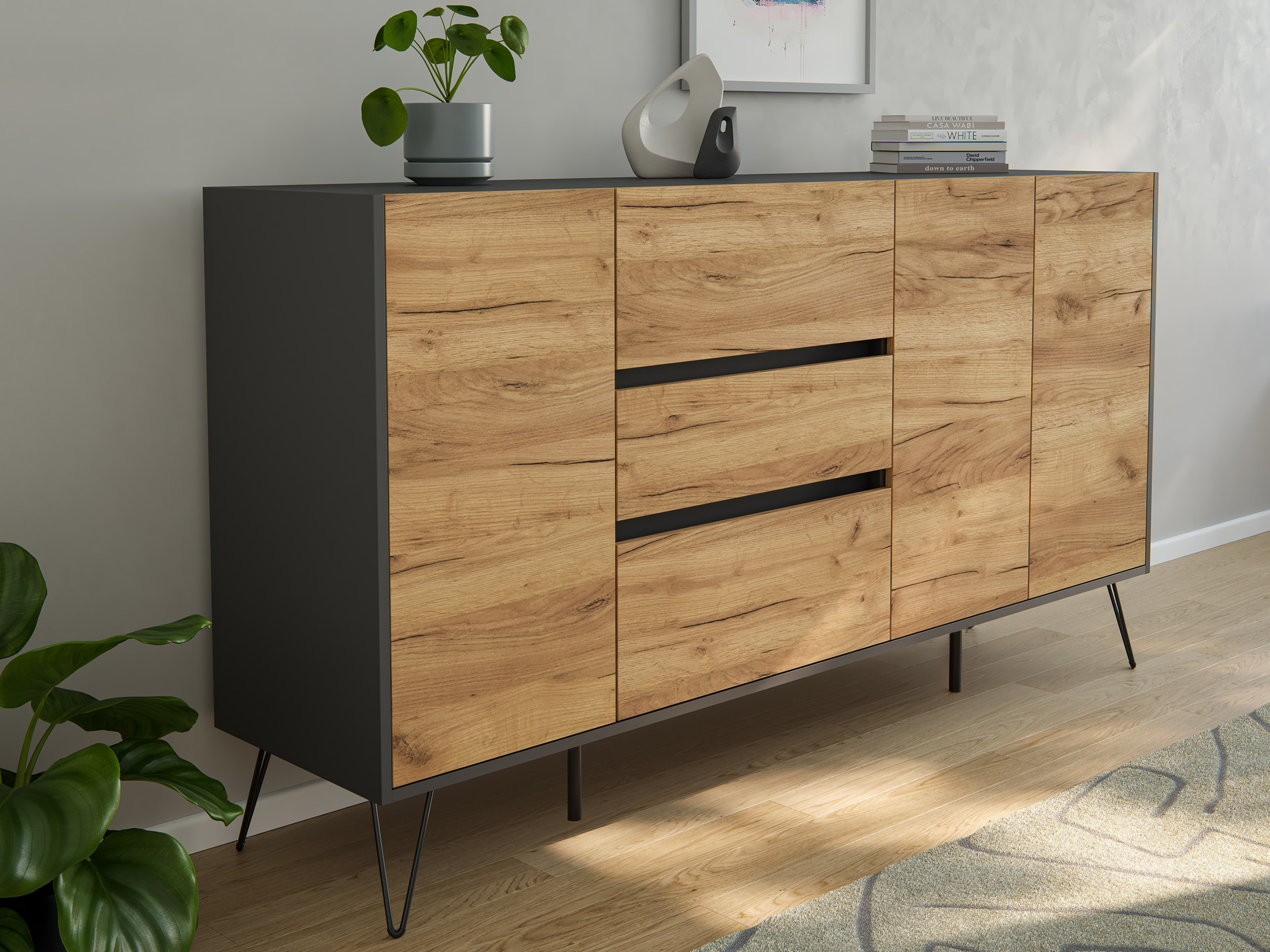 Sideboard Silia B stehend 200cm 3 Türen 3 Pushauszüge Grafit
