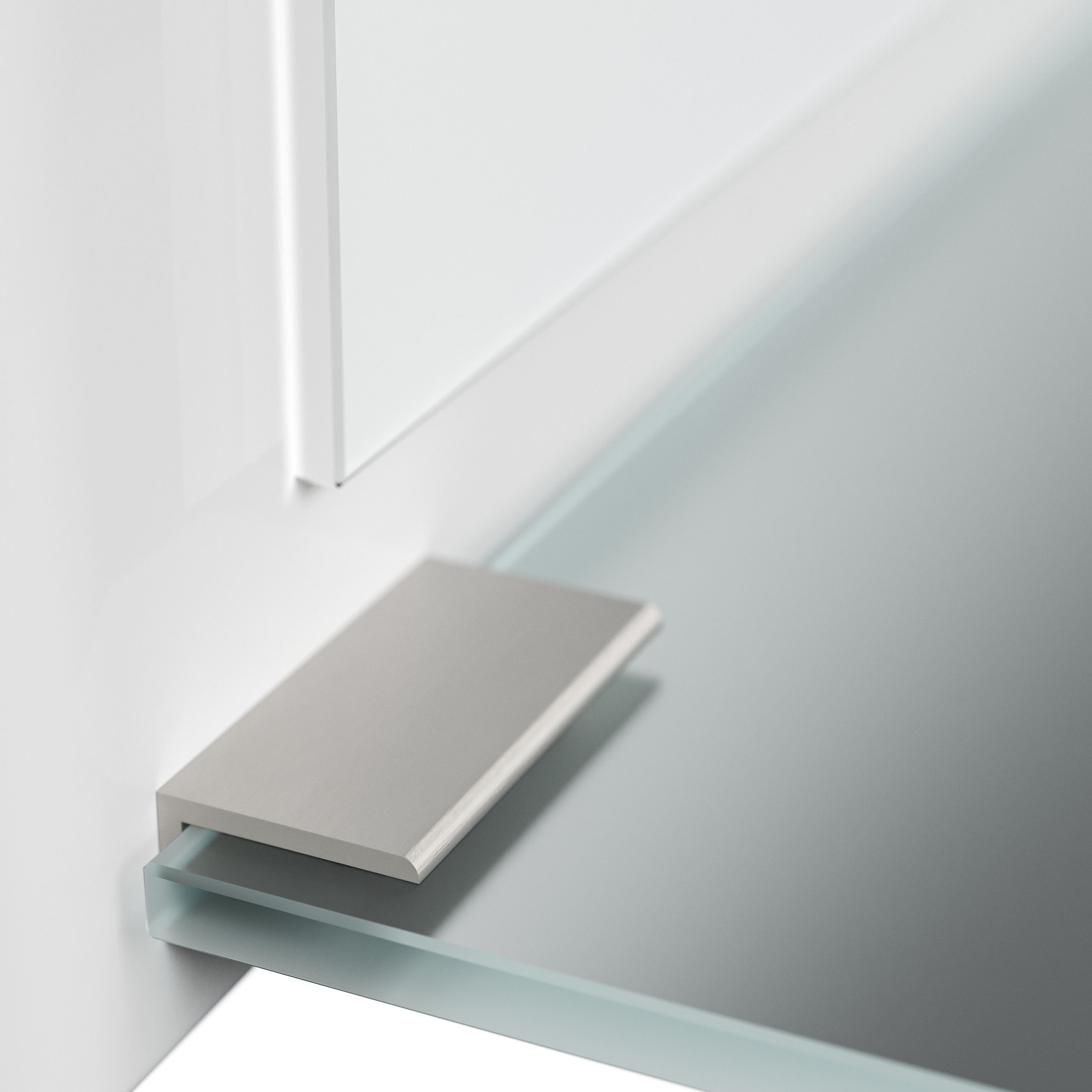 Die Glasablage unter dem Spiegel ist praktisch und schick zugleich!