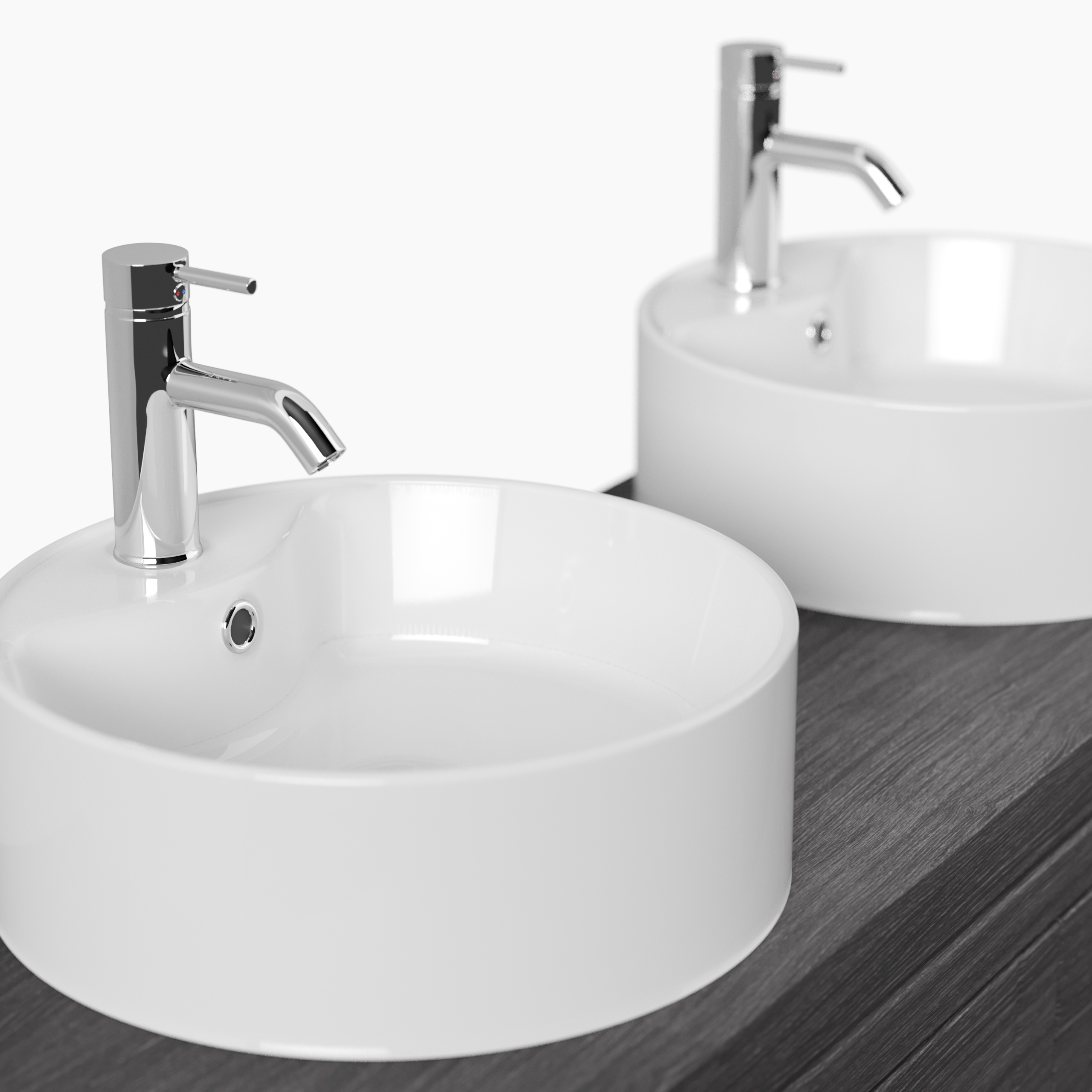 - 2 runde Keramik-Waschbecken.