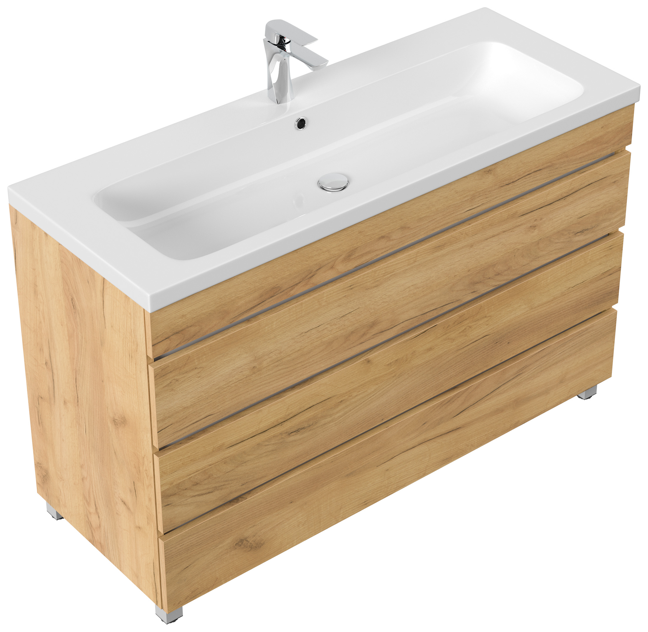 Stand Badmöbel Via 120 SoftClose eiche gold mit 3 grifflosen Schubladen