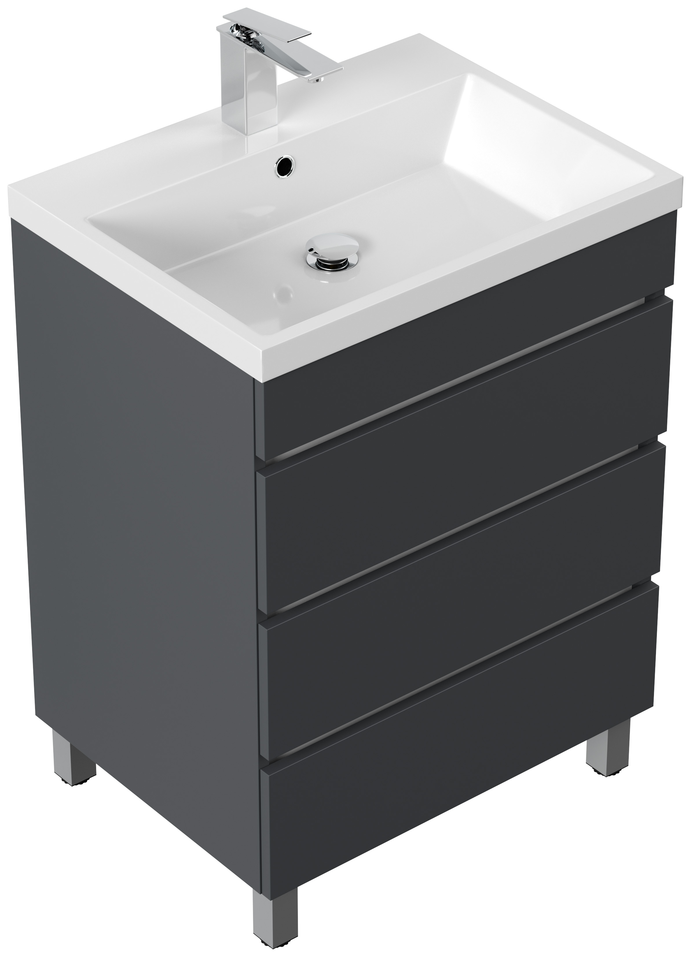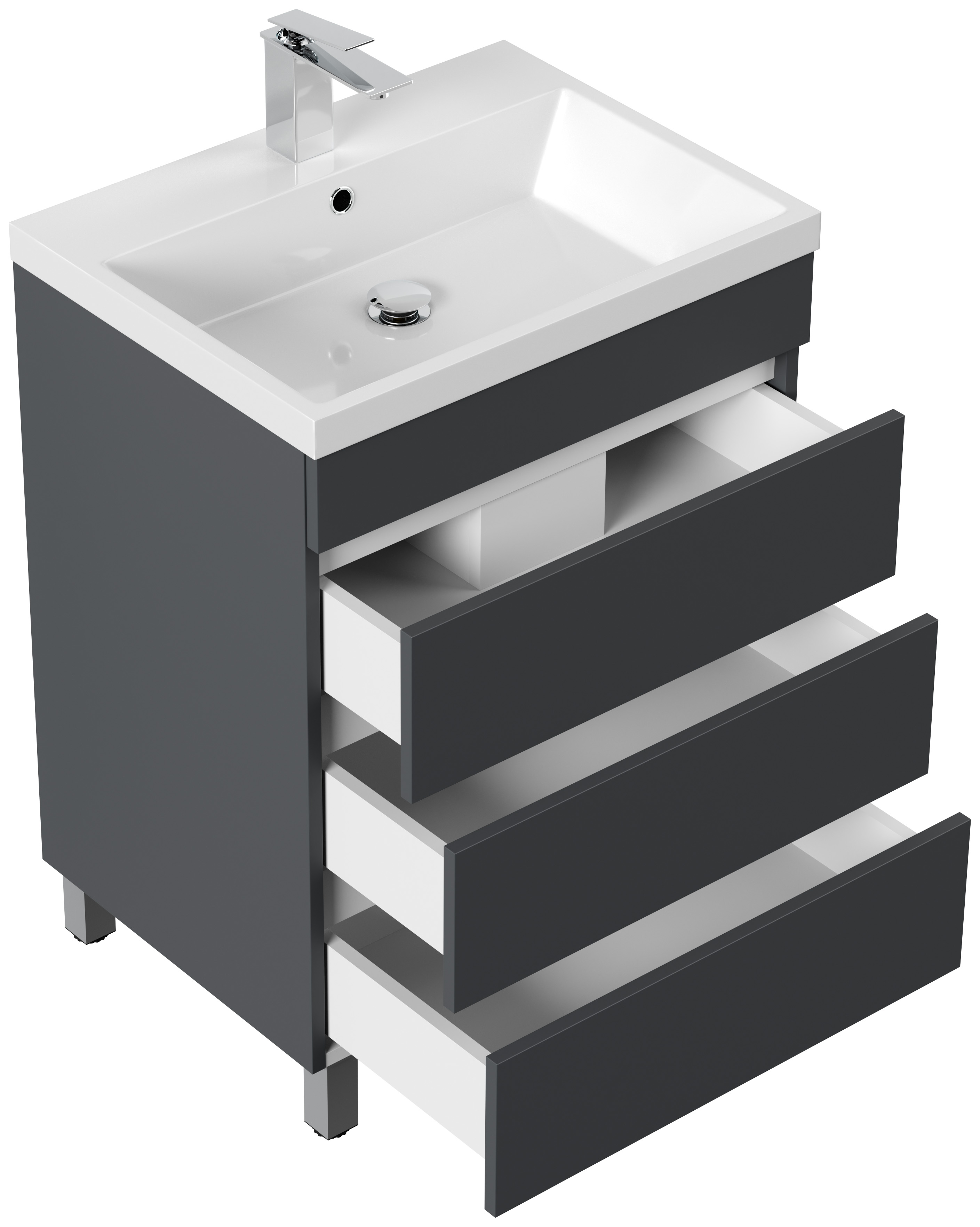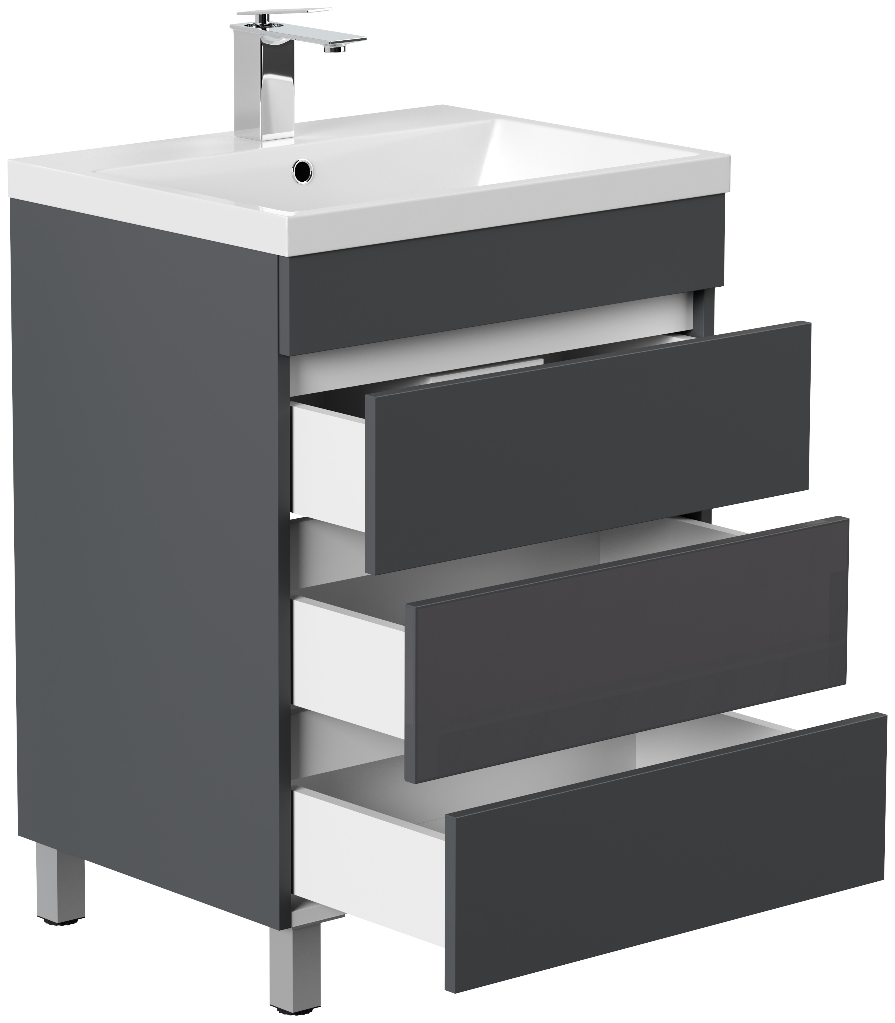Stand Badmöbel Via 70 grafit mit drei grifflosen Schubladen