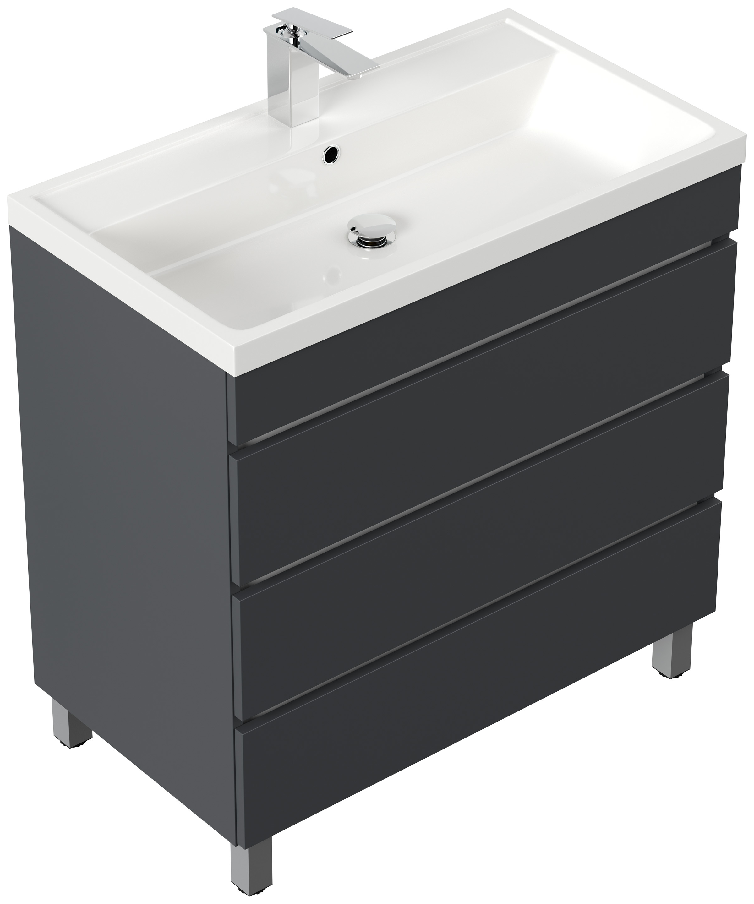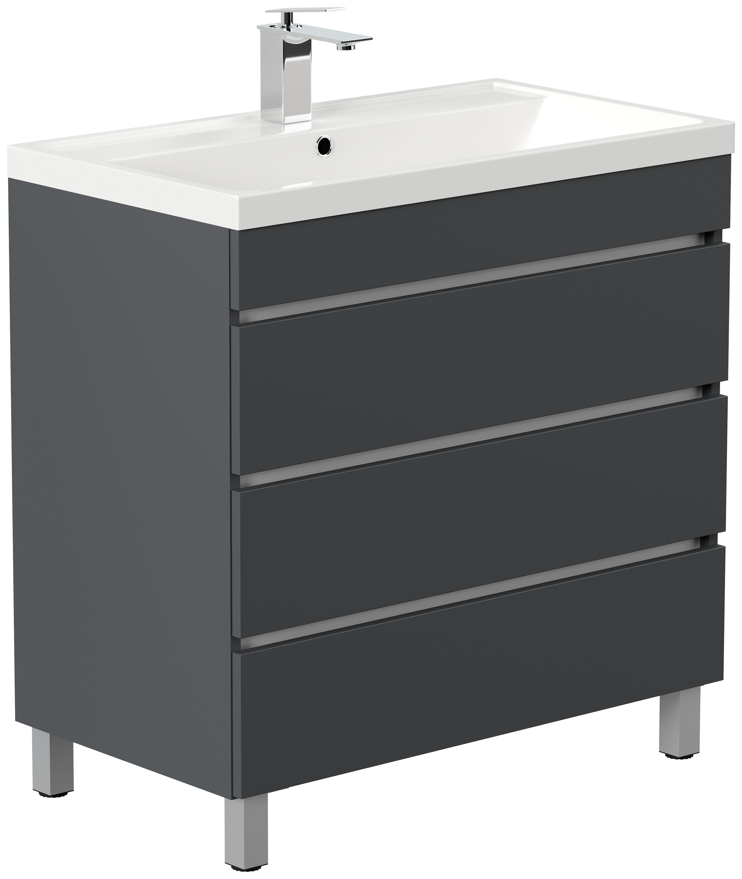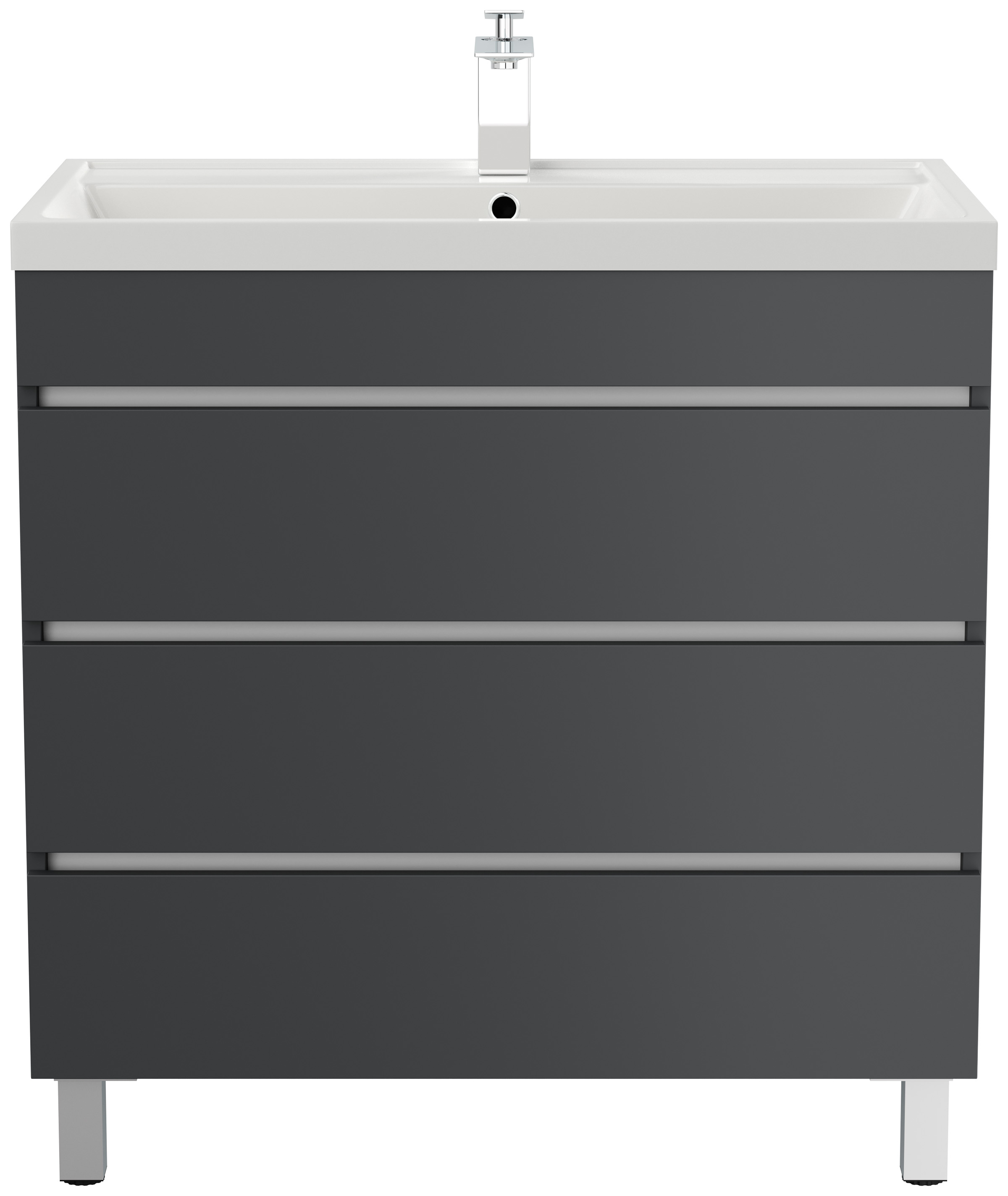 Stand Badmöbel Via 80 grafit mit drei grifflosen Schubladen
