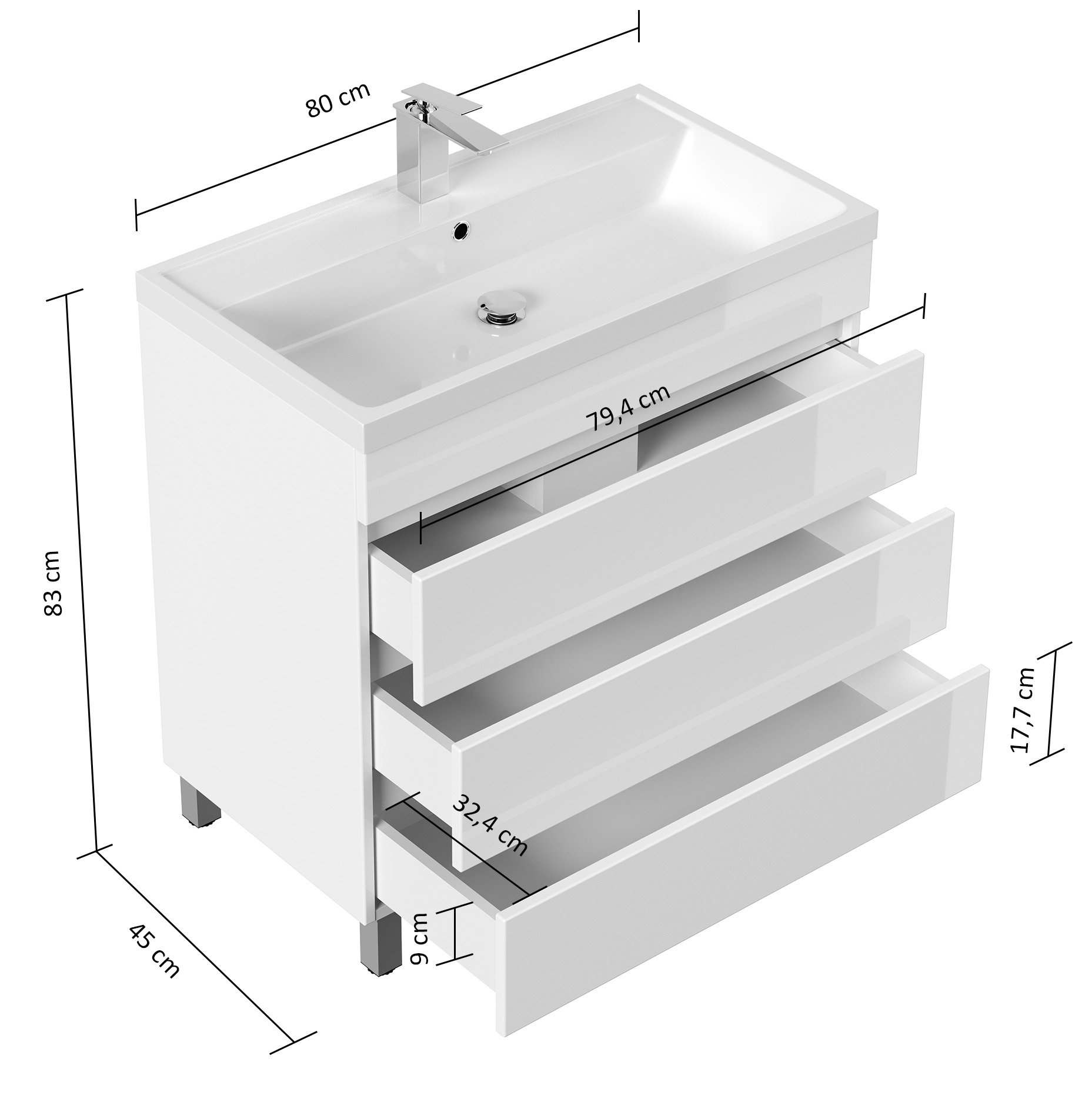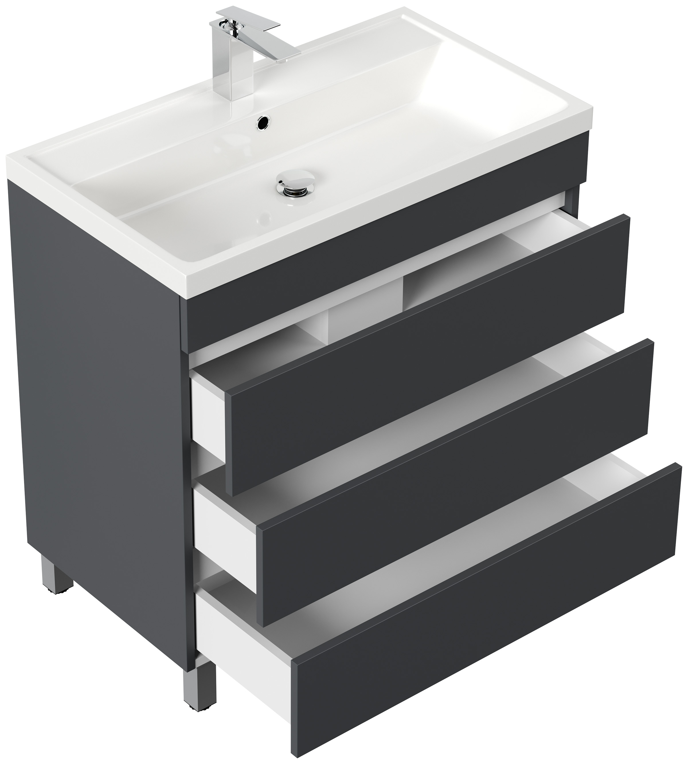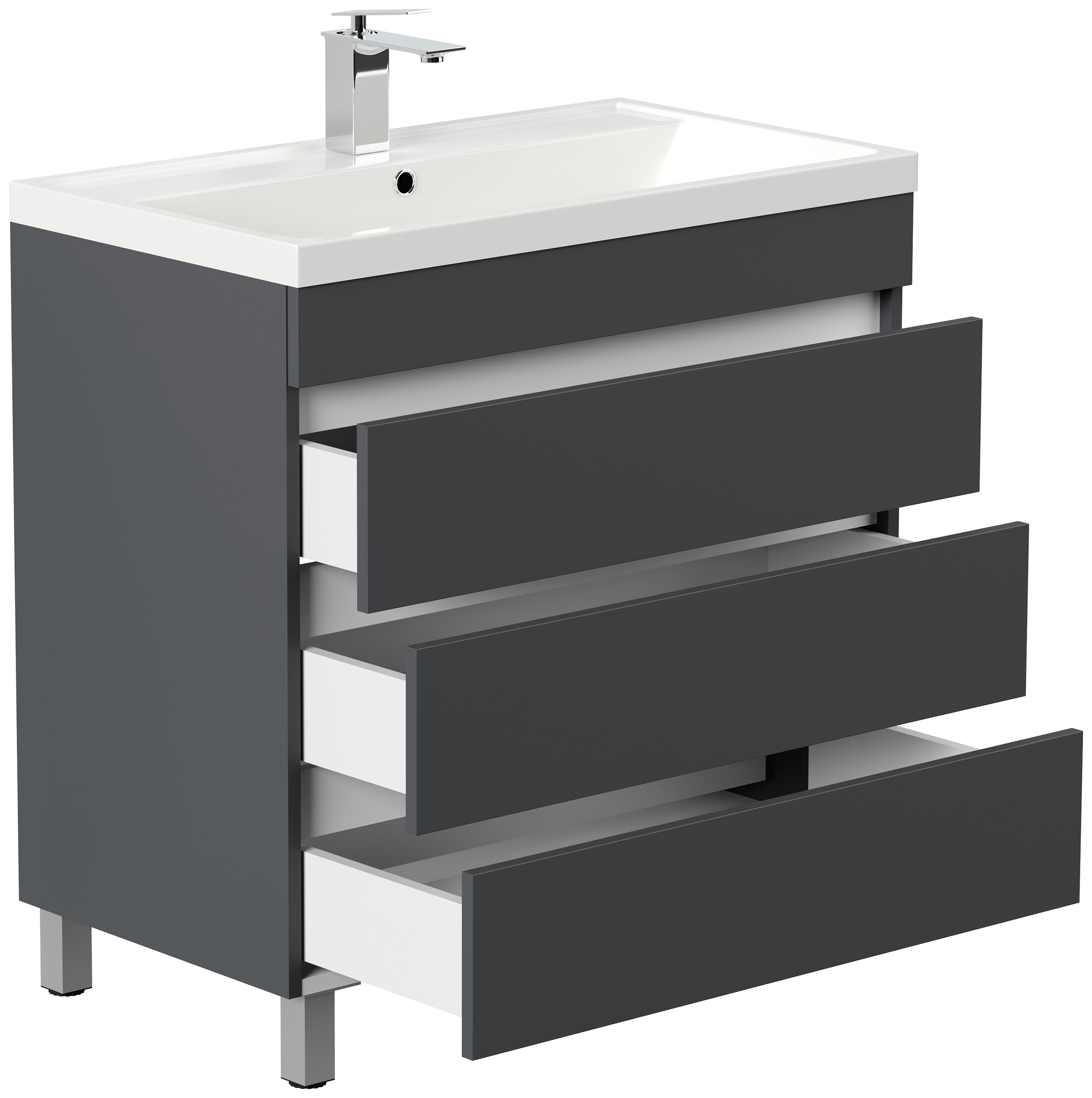 Stand Badmöbel Via 80 grafit mit drei grifflosen Schubladen