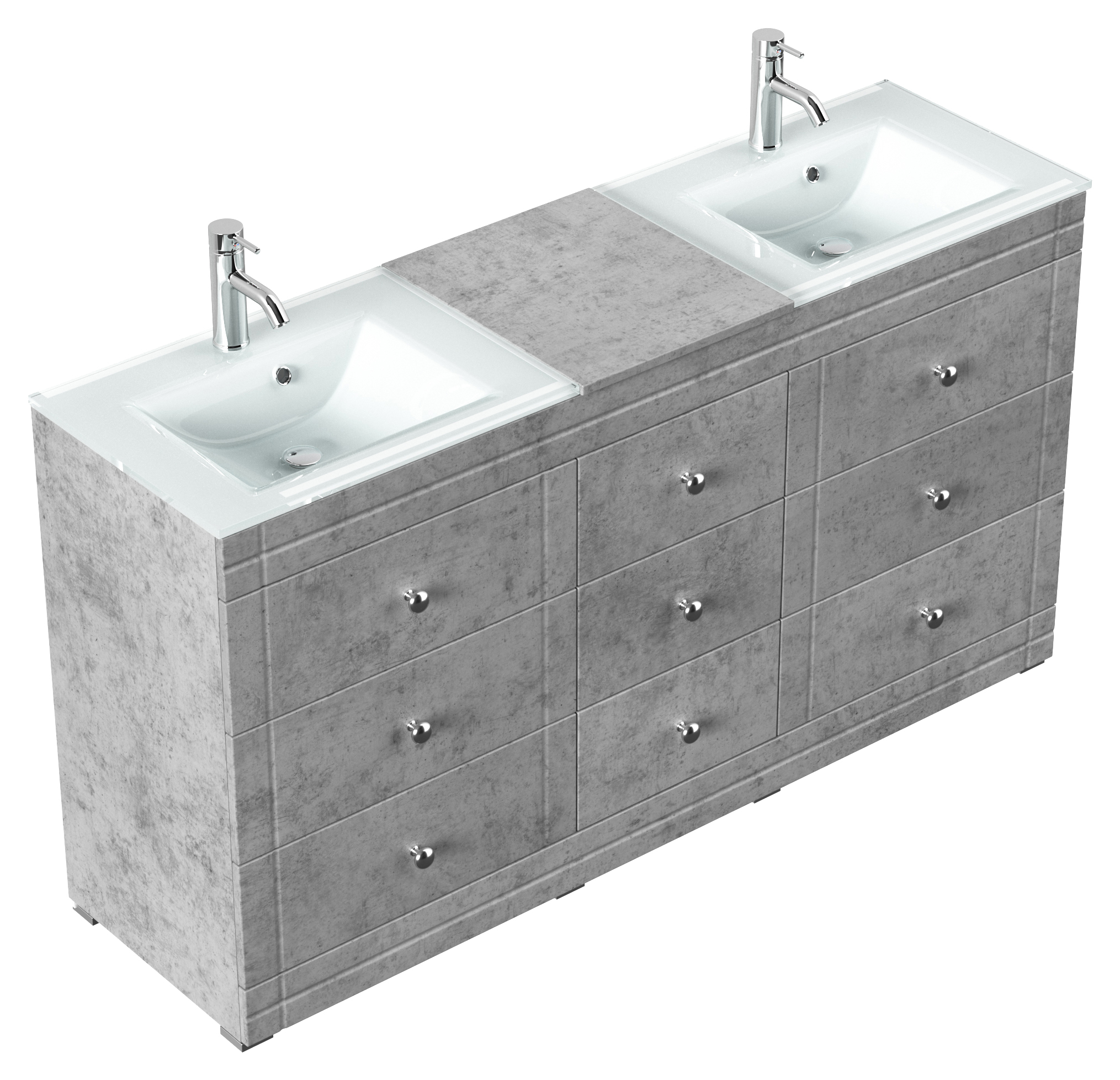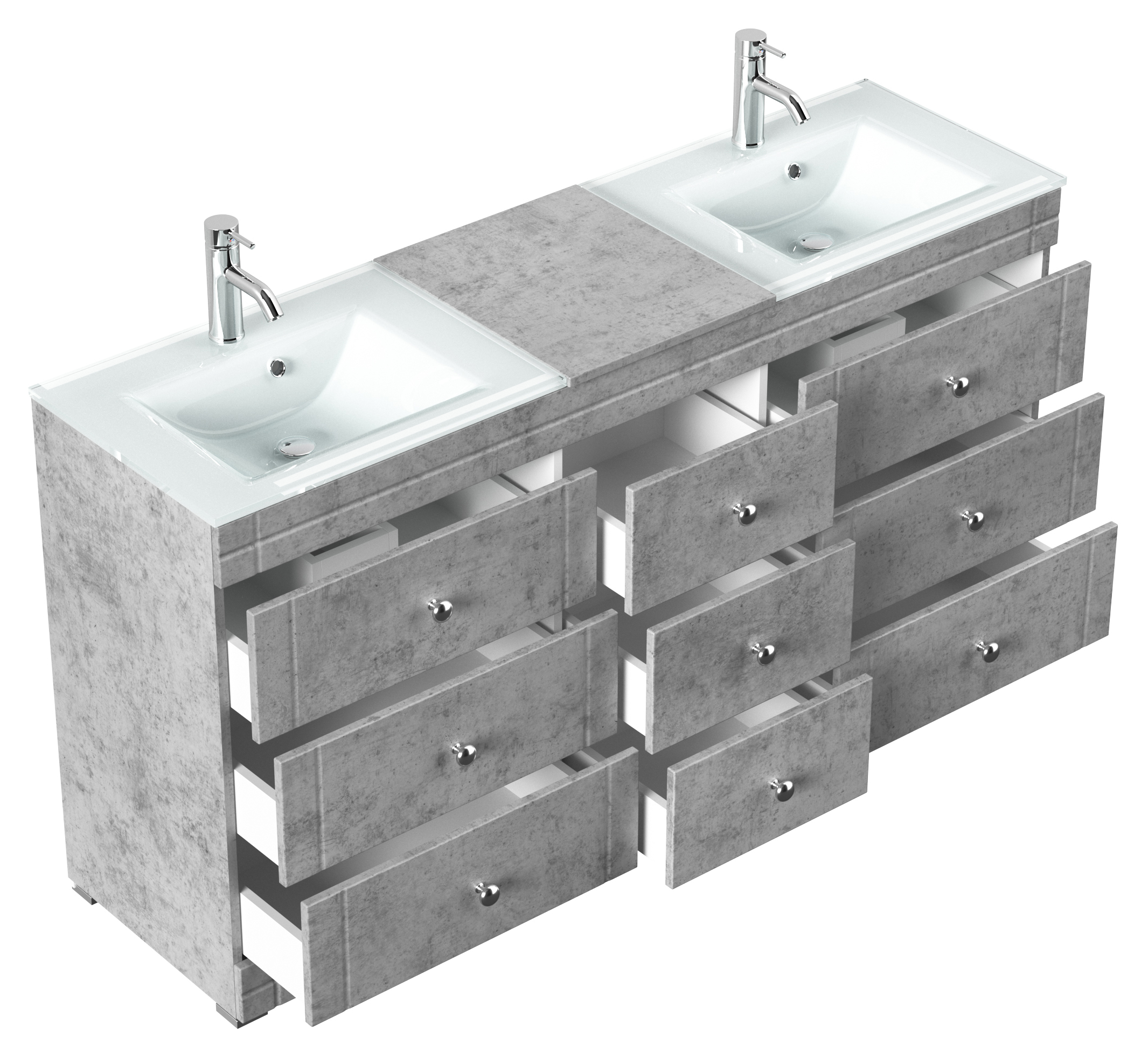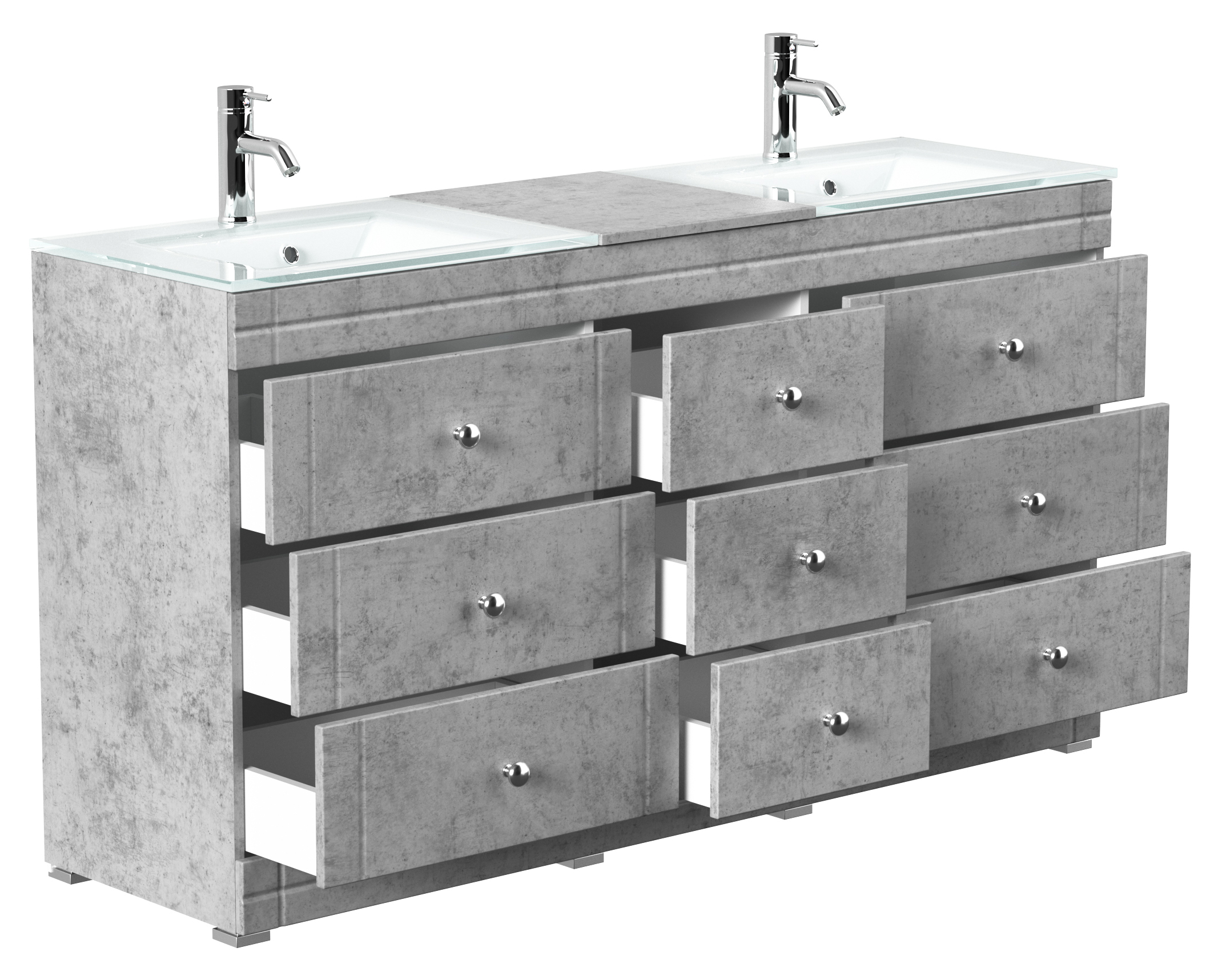 Stand Doppel Badmöbel Vitro Klassik inkl. Glasbecken SoftClose beton