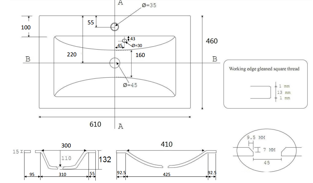 Waschbecken (B/T) 61,5/46,5cm.