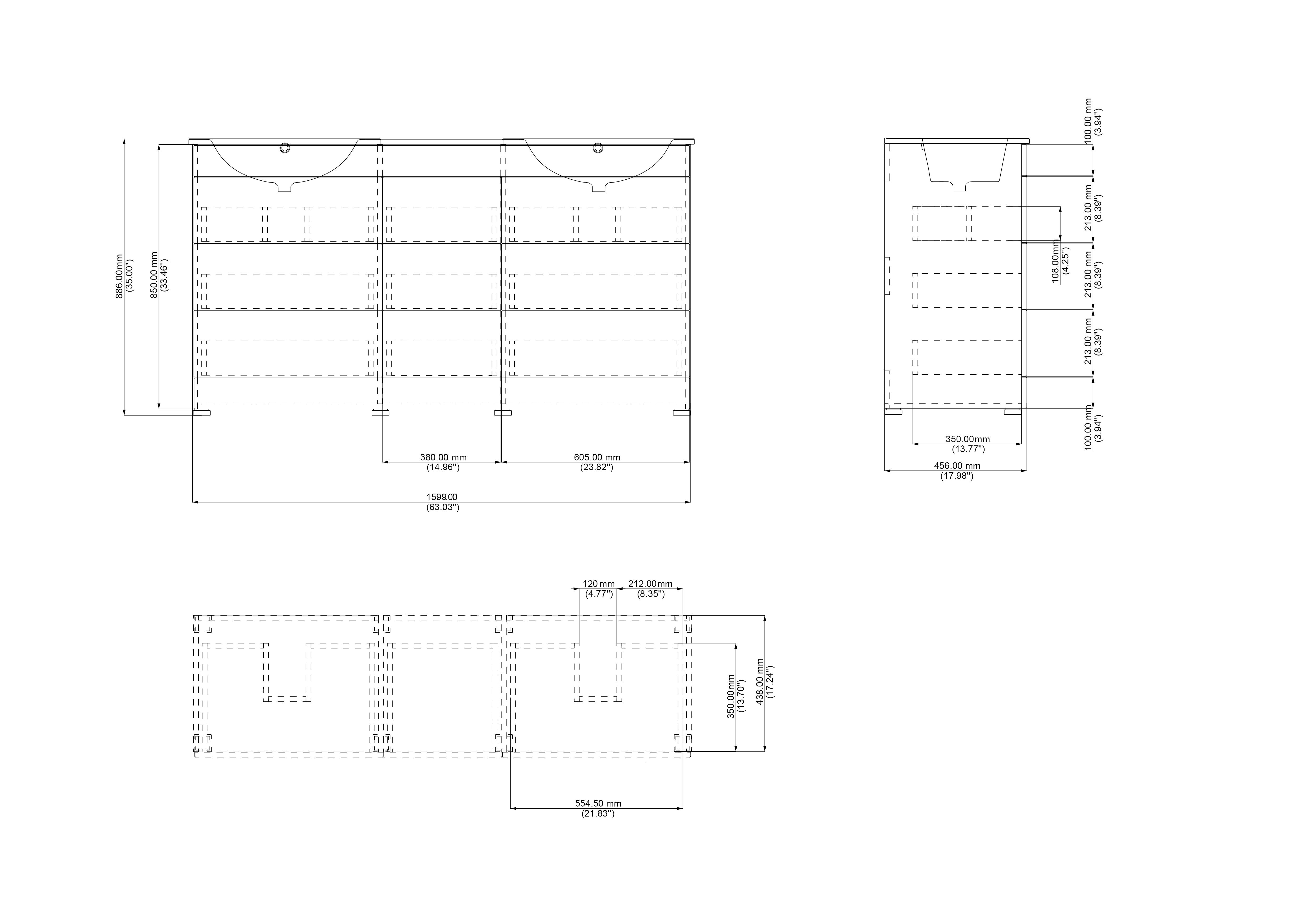 Badmöbel inkl. Waschbecken und Füßen (B/H/T) 160,9/88,6/46,9 cm,Waschtischunterschrank ohne Becken/Füße (B/H/T) 159,9/85/45,6 cm,