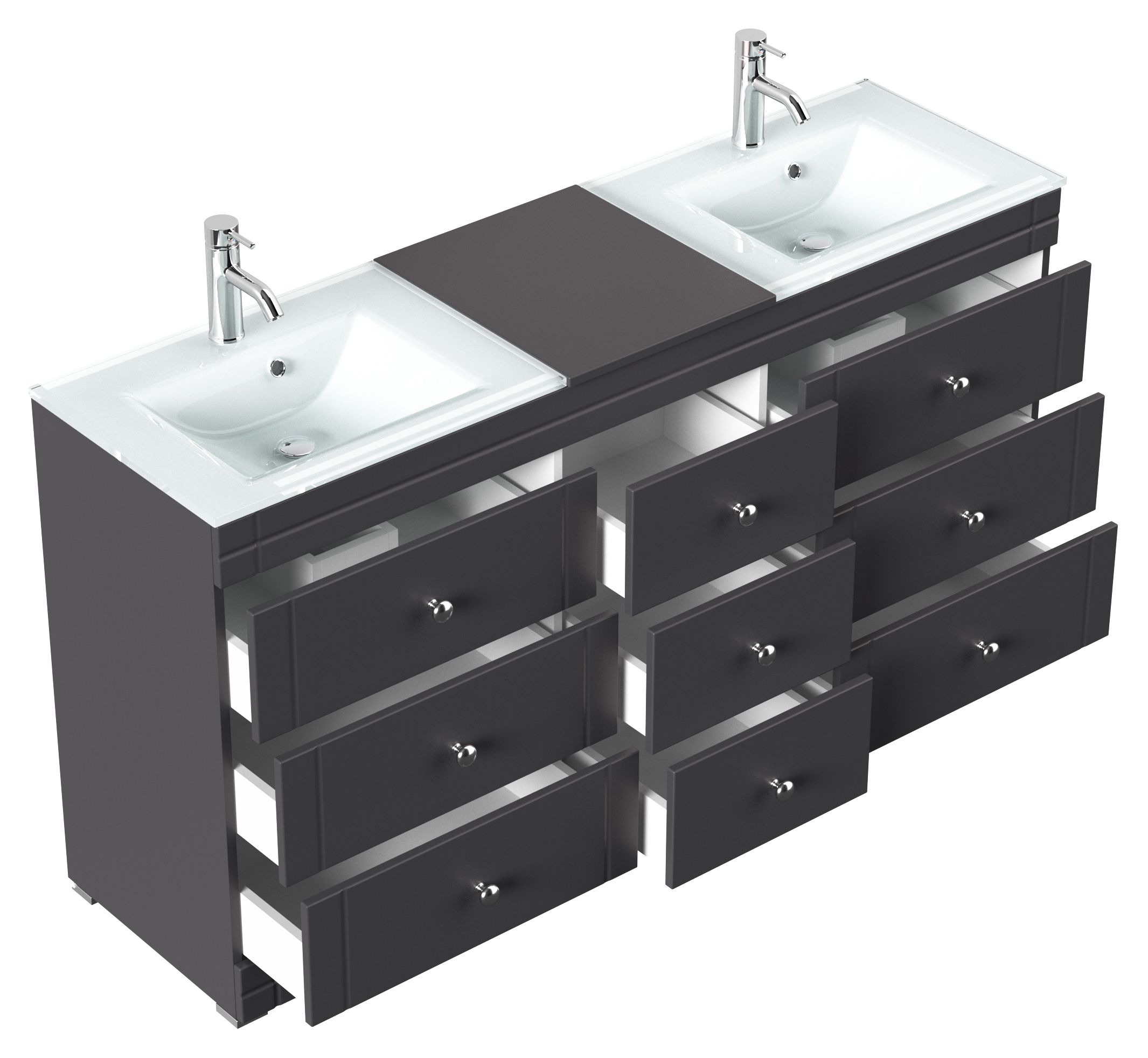 Stand Doppel Badmöbel Vitro Klassik inkl. Glasbecken schwarz