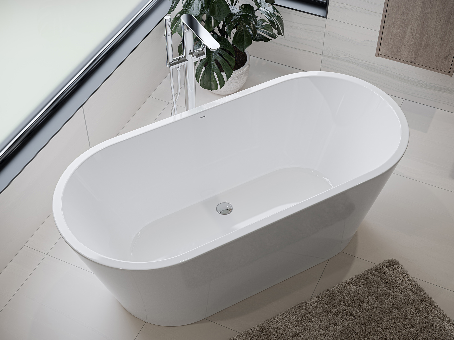 Mit einer Tiefe von 45 cm bietet die CREA 160 optimalen Badekomfort und ausreichend Raum für ein wohltuendes, tiefes Eintauchen.