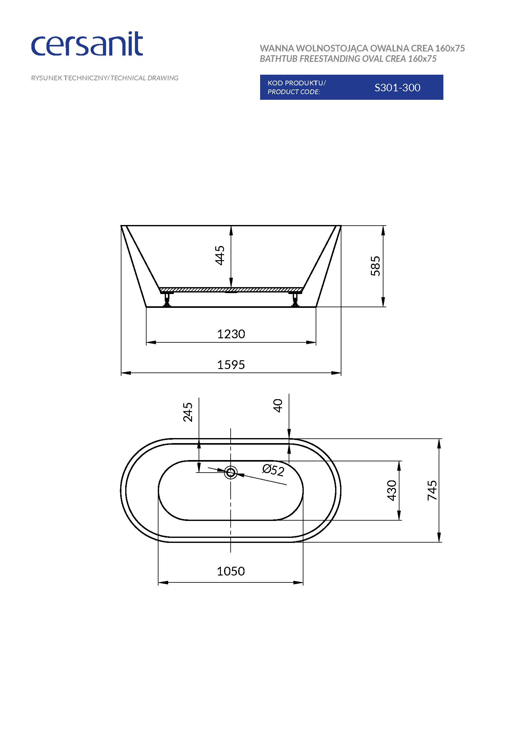 Details zur Badewanne Crea 160- Form: Oval
