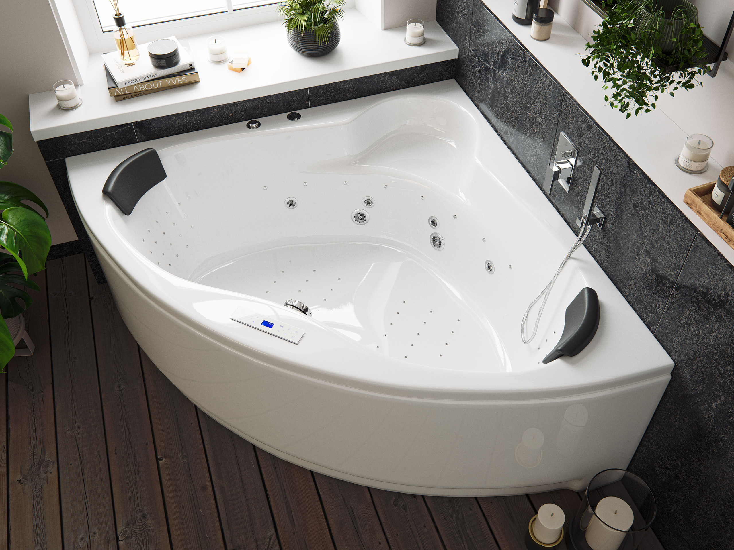 Whirlwanne mit Whirlpoolfunktion: Eine Wellnessoase in Eckform groß genug für zwei Personen